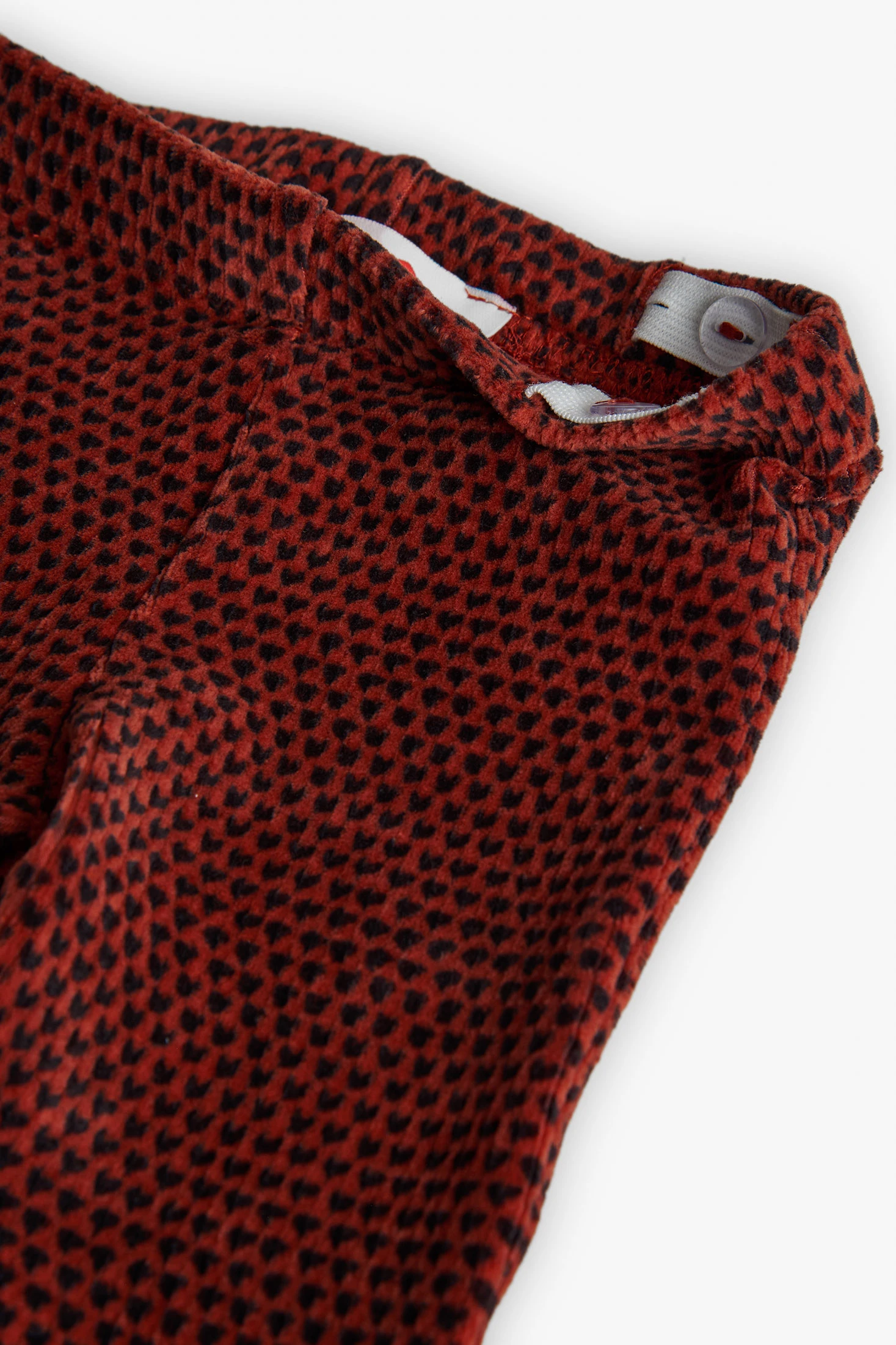 Legging in maglia per bambina, ideale per le stagioni autunnali e invernali, presenta un incantevole motivo a cuori in tonalità calde su una vivace base arancione. Progettato con una cintura elastica per una vestibilità comoda, questo leggings offre calore ed è disponibile in taglie da 12 mesi a 10 anni. Il suo tessuto morbido ed elastico assicura libertà di movimento, rendendolo una scelta versatile per diverse occasioni. Design allegro e colorato, perfetto da abbinare a magliette o maglioni basici del guardaroba infantile.