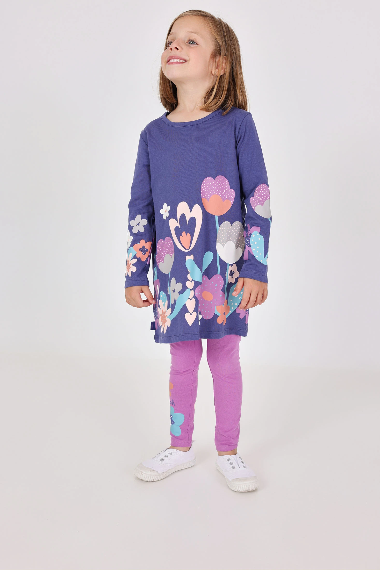 Completo bambina in maglia lilla fiori