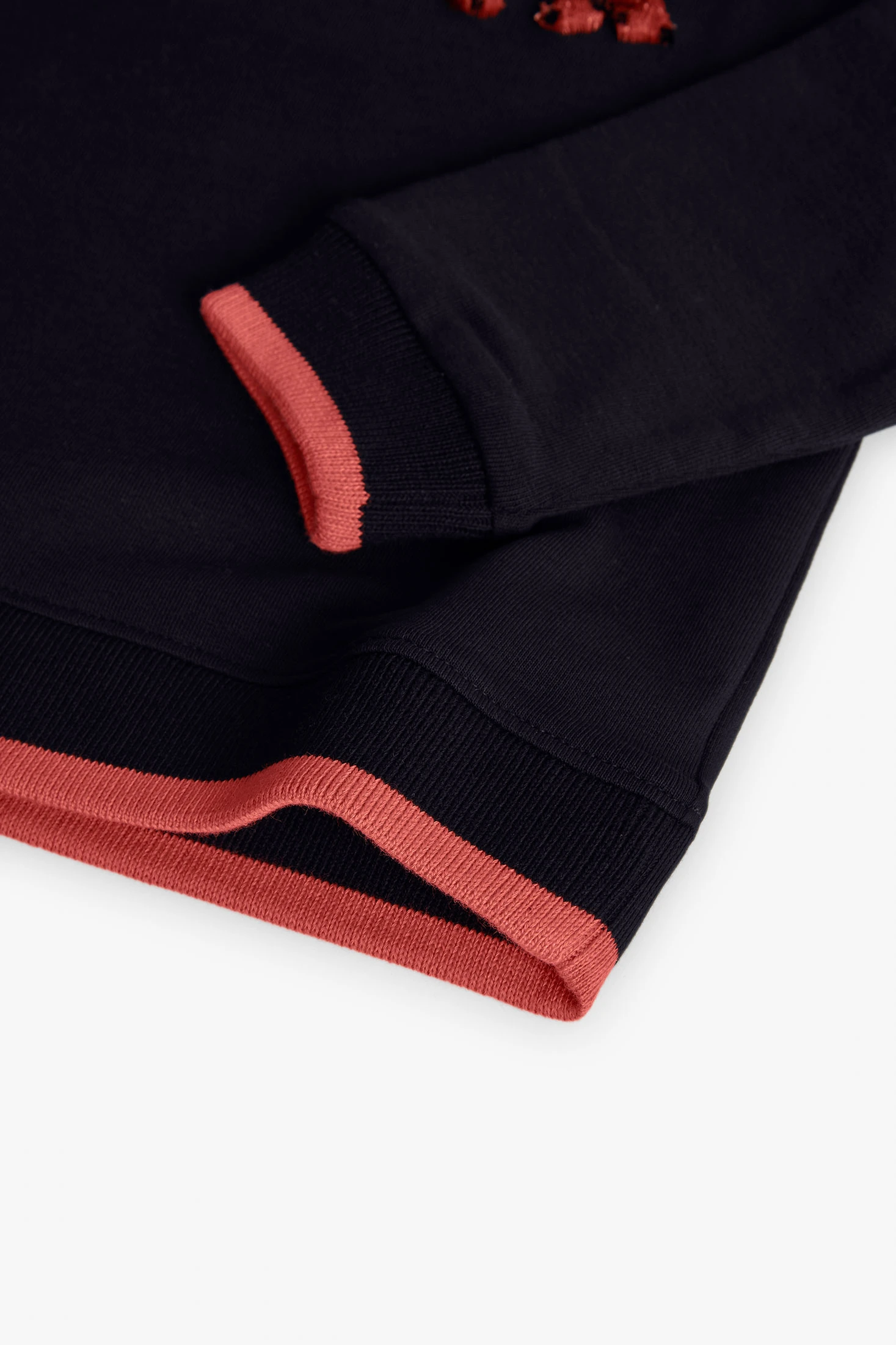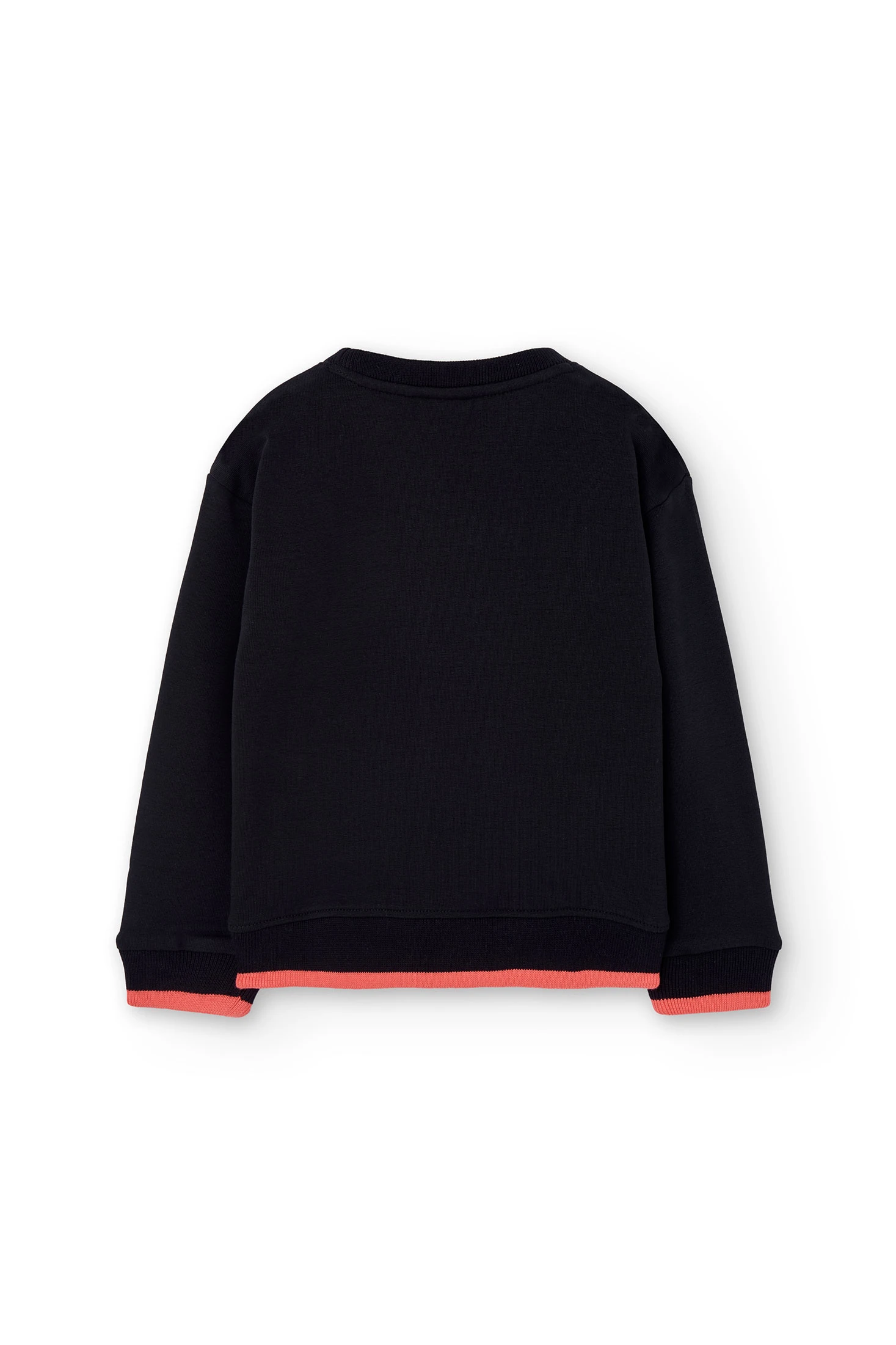 Felpa nera per bambina con la stampa "ROAR" sul petto, ideale per tenere la tua piccola al caldo e alla moda durante le stagioni autunnali e invernali. Realizzata in un tessuto morbido e caldo, questo capo presenta un design con scollo rotondo e maniche lunghe per offrire comfort e protezione contro il freddo. Disponibile nelle taglie da 2 a 14 anni, può essere abbinata perfettamente con jeans o pantaloni sportivi, offrendo uno stile moderno e divertente.