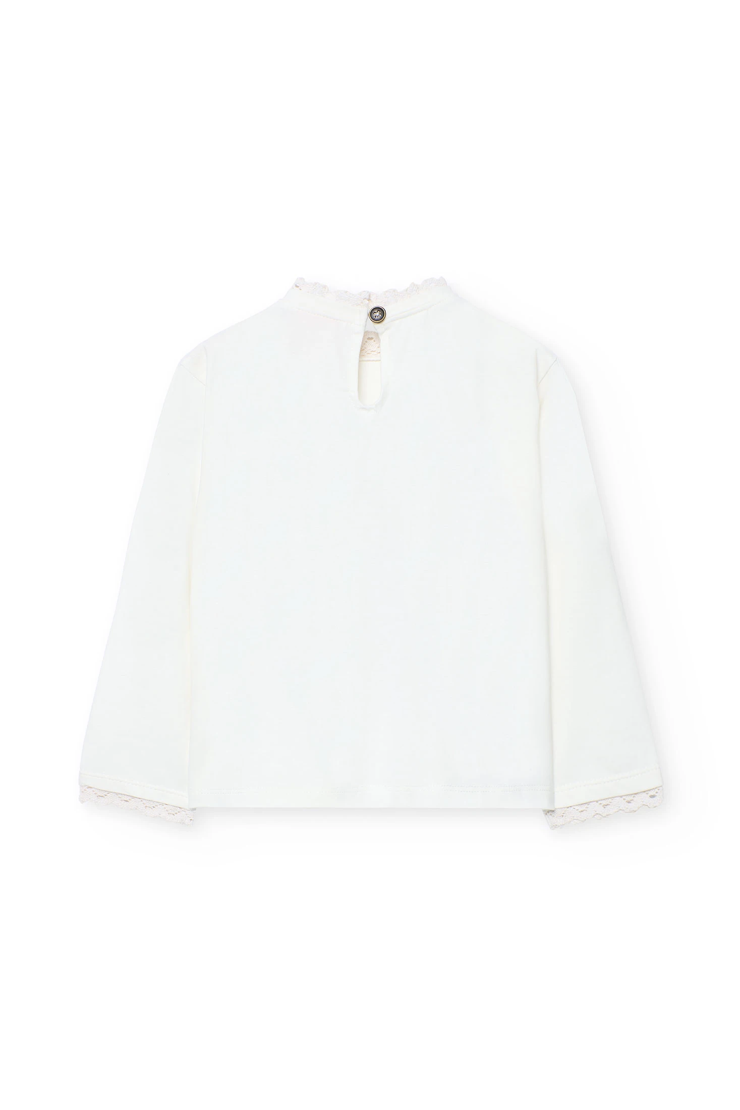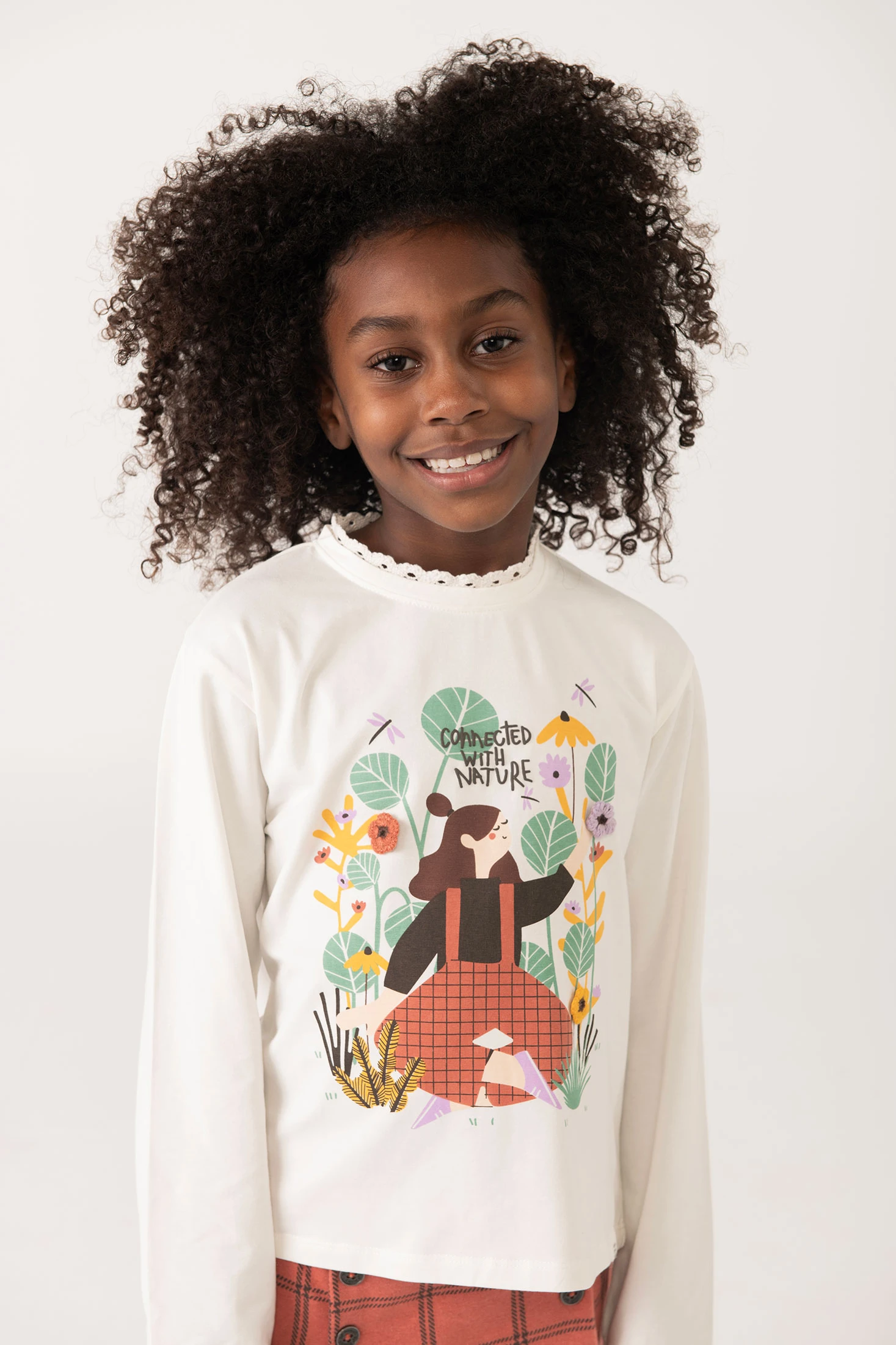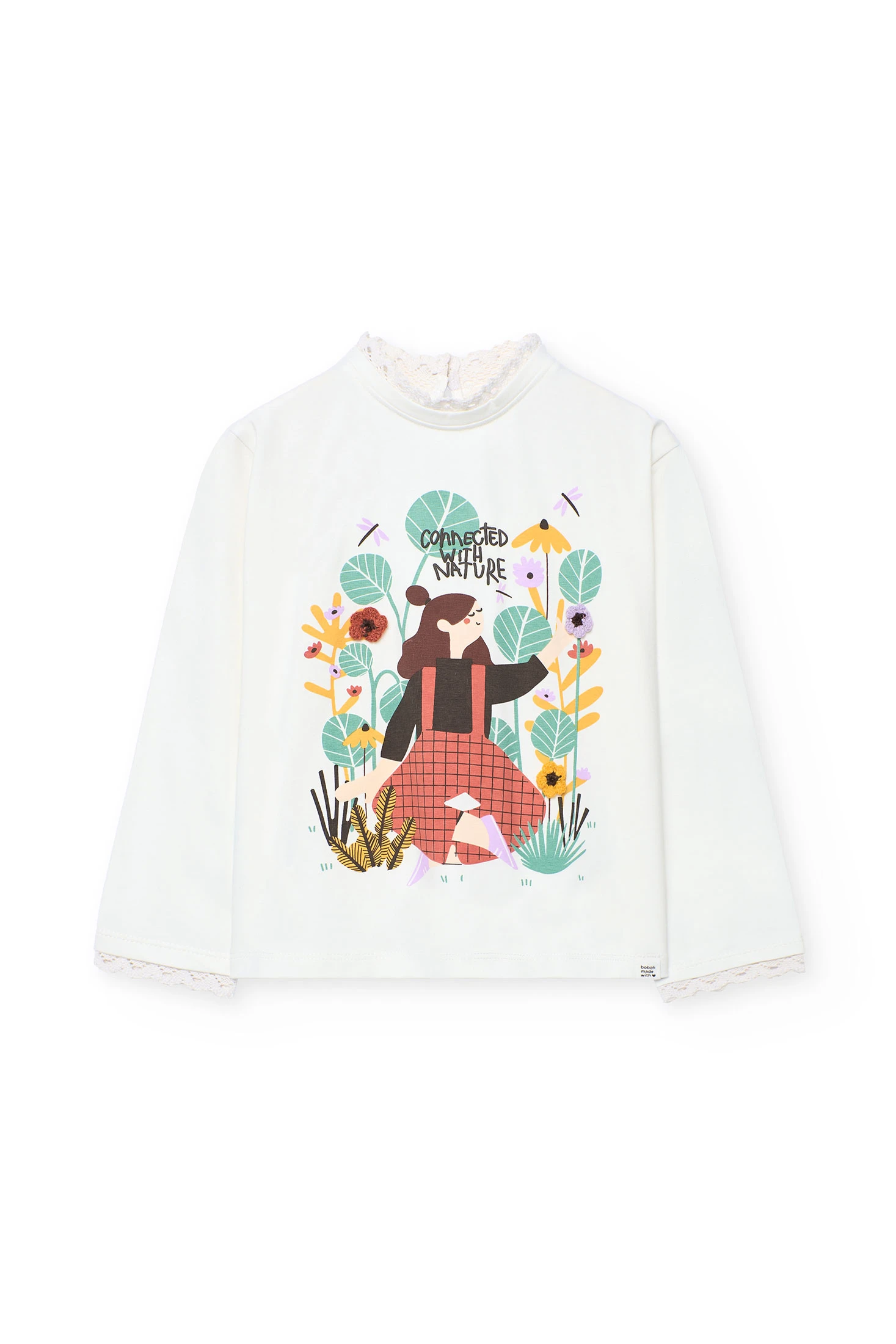 Maglietta in cotone per bambina di colore bianco con una deliziosa stampa, ideale per aggiungere freschezza e allegria al guardaroba infantile. Perfetta per le stagioni autunnali e invernali, è realizzata in un tessuto leggero e traspirante che garantisce comfort per tutto il giorno. Il suo collo rotondo ne facilita l'uso e aggiunge un sottile tocco elegante. Disponibile nelle taglie da 2 a 14 anni, si abbina perfettamente con pantaloni o gonne per un look fresco e alla moda. Con questa maglietta, le bambine godranno di stile e comfort in qualsiasi occasione informale.