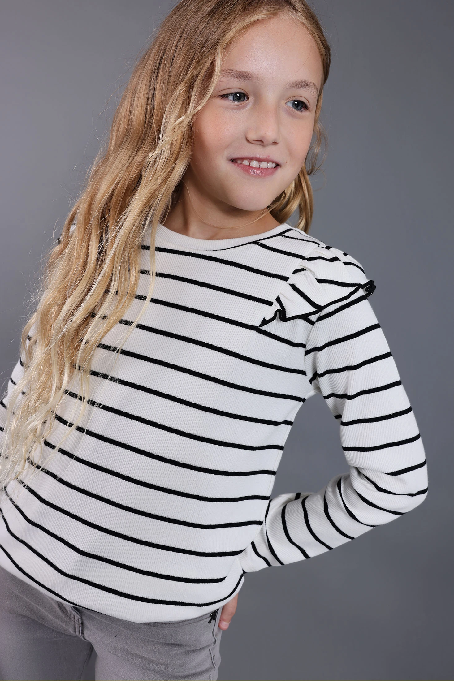Maglietta a maglia per bambina, ideale per offrire stile e comodità tutto l'anno. Realizzata in cotone morbido e flessibile, è perfetta per qualsiasi stagione, poiché offre freschezza in estate e uno strato aggiuntivo in inverno. Disponibile in una varietà di taglie, questa maglietta garantisce una vestibilità perfetta man mano che la tua piccola cresce. Il suo design versatile e senza tempo permette di abbinarla facilmente a gonne, pantaloni o pantaloncini, creando completi adorabili e comodi per tutti i giorni o per occasioni speciali. Un capo base indispensabile nel guardaroba infantile che si adatta a qualsiasi stile e