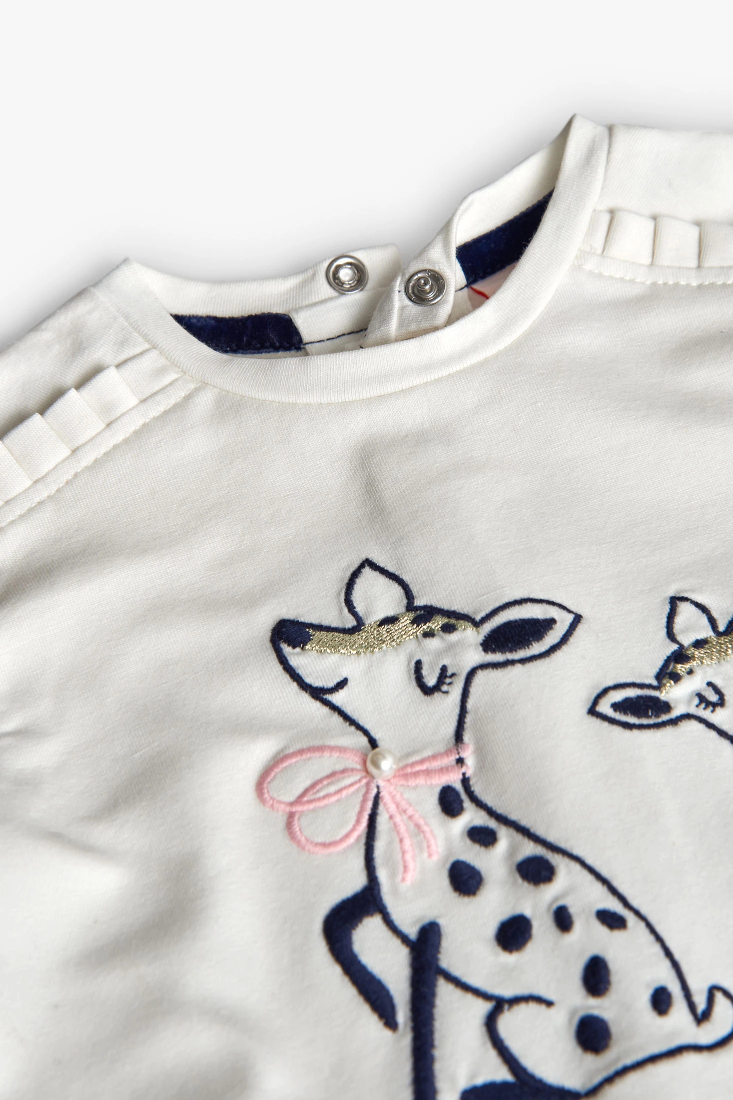 Maglietta bianca in maglia per bambina ideale per ogni stagione, offre morbidezza e comfort eccezionali. Presenta una deliziosa stampa di animali sul davanti che aggiunge un tocco divertente al guardaroba dei più piccoli. Il suo colore bianco permette molteplici combinazioni con pantaloni e gonne, adattandosi sia a uno stile casual che a occasioni speciali. Realizzata con maniche lunghe e collo rotondo, garantisce che la tua bambina sia comoda e alla moda per tutto il giorno. Disponibile in taglie da 12 mesi a 10 anni, è la scelta perfetta per genitori che cercano qualità e design.