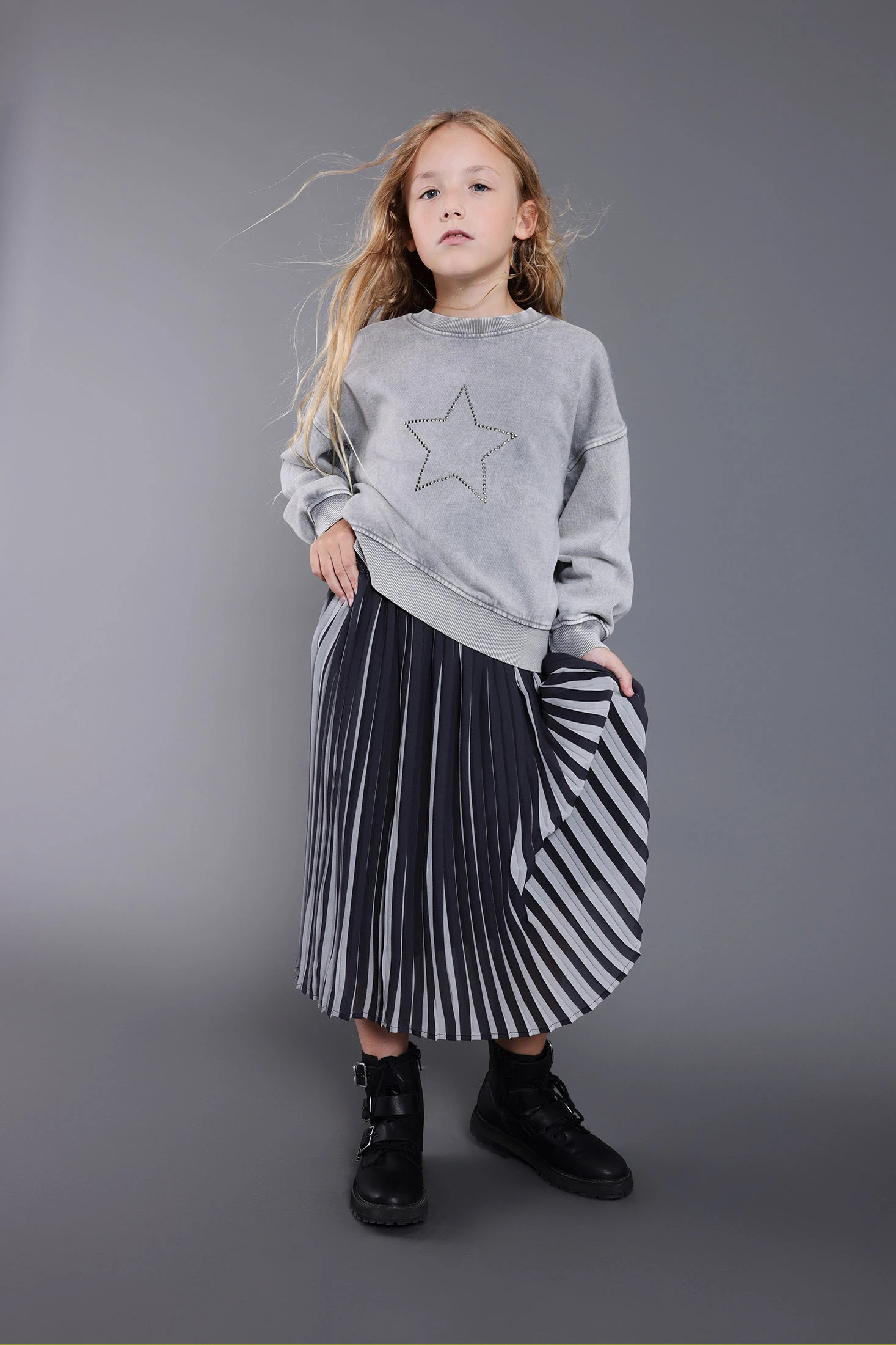 Gonna di chiffon grigio per bambine offre un design elegante e versatile, perfetta per ogni occasione. Realizzata in un materiale leggero e fluido, garantisce comfort per tutto il giorno. Il tono grigio neutro facilita le combinazioni, ideale da abbinare con bluse o maglioni in toni chiari o pastello. Disponibile in taglie dalla 2 alla 14 anni, assicura una vestibilità perfetta per diverse età. Scelta moderna e chic che aggiunge un tocco di stile al guardaroba infantile.