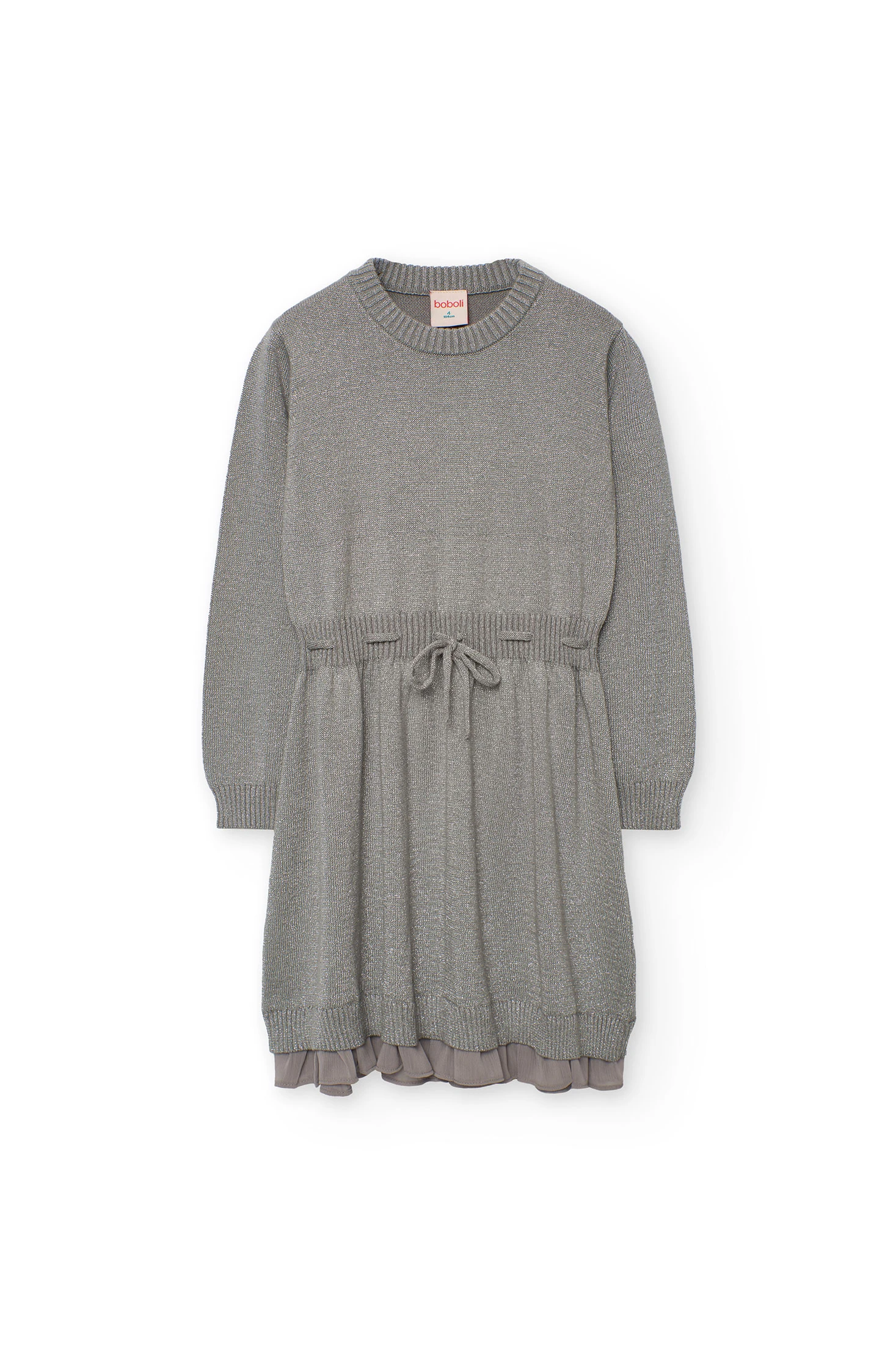 Abito in maglia per bambina ideale per le stagioni autunnali e invernali, realizzato in un tessuto morbido che offre calore. Il suo elegante colore grigio lo rende perfetto per diverse occasioni, combinando stile e comodità. Presenta un design con scollo rotondo e maniche lunghe, completato da un fiocco regolabile in vita per aggiungere un tocco affascinante. Disponibile nelle taglie dai 2 ai 14 anni, può essere abbinato con collant o leggins per creare un outfit sofisticato e confortevole durante i giorni più freschi.