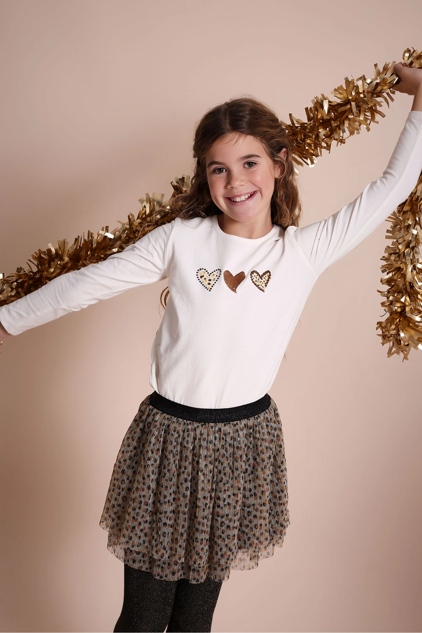 Gonna in maglia per bambina con sofisticata stampa animalier che aggiunge un tocco moderno e divertente al guardaroba della tua piccola. Realizzata in tessuto di maglia morbido e confortevole, ideale per l'uso quotidiano, offre libertà di movimento. La vita elastica assicura una vestibilità comoda e adattabile. Disponibile nelle taglie da 2 a 14 anni, questa gonna è perfetta da abbinare a una t-shirt semplice e dei collant per un look casual, oppure a una camicetta per occasioni più formali. Ideale per ogni stagione, è un capo imprescindibile per eventi speciali o uscite quotidiane.