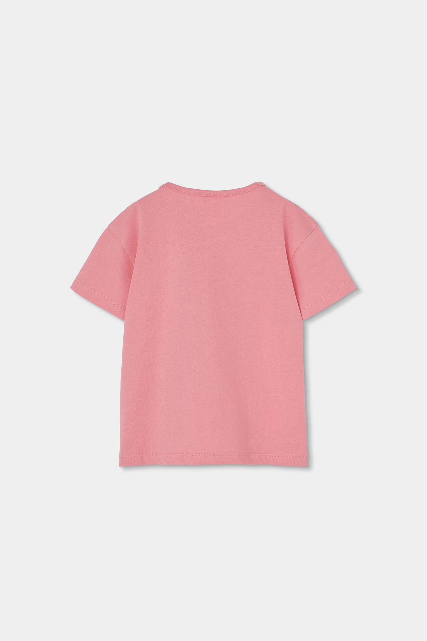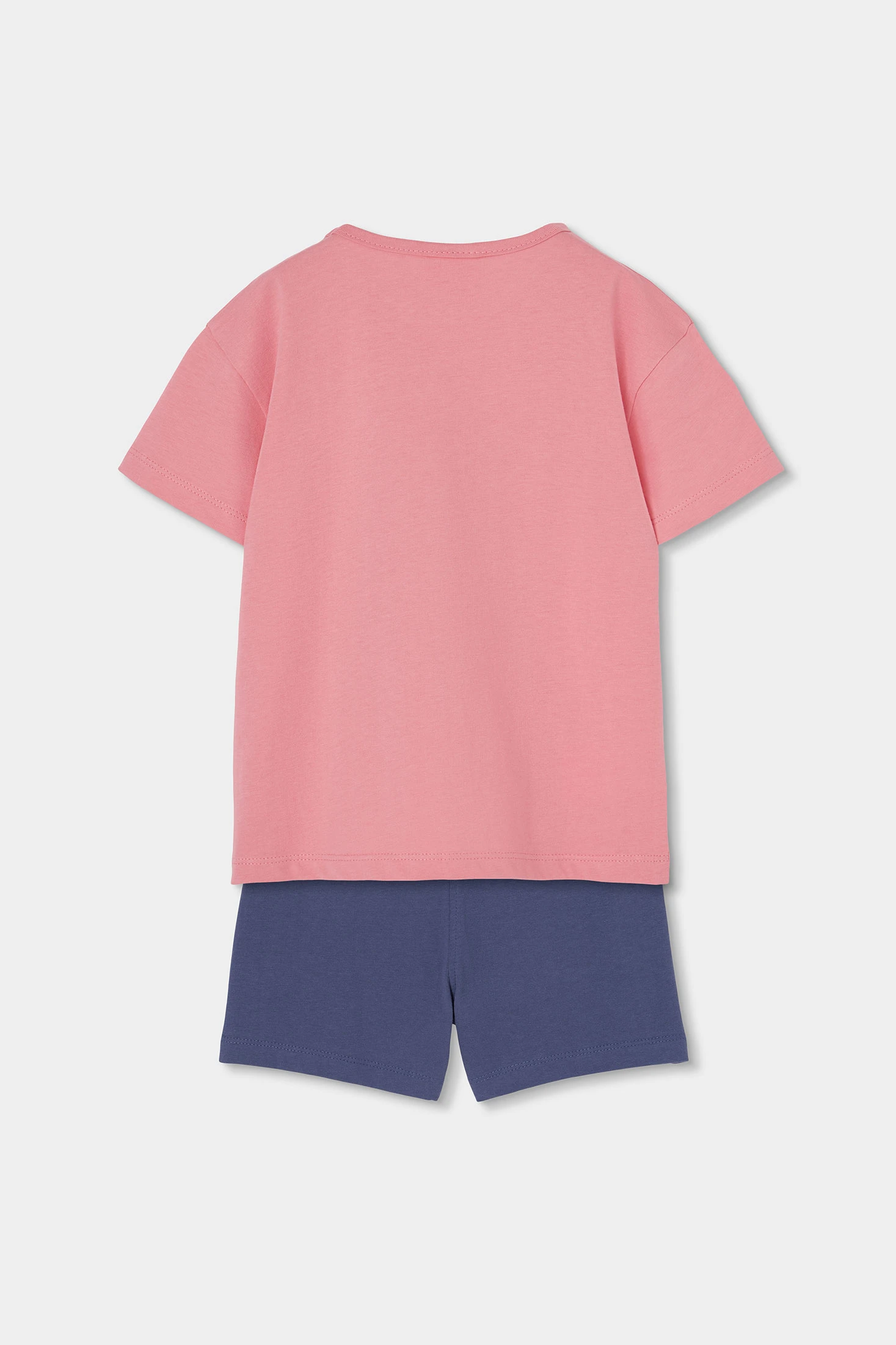 Set composto da maglietta e pantaloncini in maglia. Maglietta di cotone rosa, perfetta per l'uso quotidiano. La maglietta presenta una stampa multicolore, che le conferisce un tocco allegro e divertente. Con il suo scollo rotondo e le maniche corte, è ideale per mantenere la freschezza durante le stagioni più calde. Disponibile in taglie dai 12 mesi fino ai 10 anni, si adatta alla crescita delle bambine.