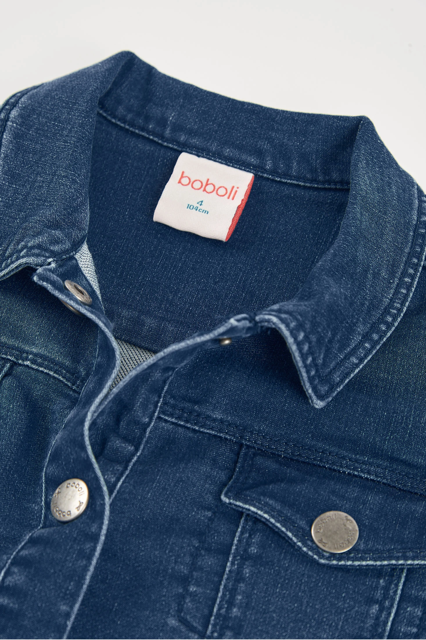 Giacca di jeans color blu scuro, perfetta per la stagione di mezza stagione, realizzata in materiale denim che offre sia stile che durata. Presenta un design con tasche frontali e dettaglio di volant sull'orlo, aggiungendo un tocco diverso. Ideale per età da 12 mesi a 10 anni. Si abbina perfettamente con pantaloni casual o gonne, offrendo un look moderno e comodo per tutti i giorni.