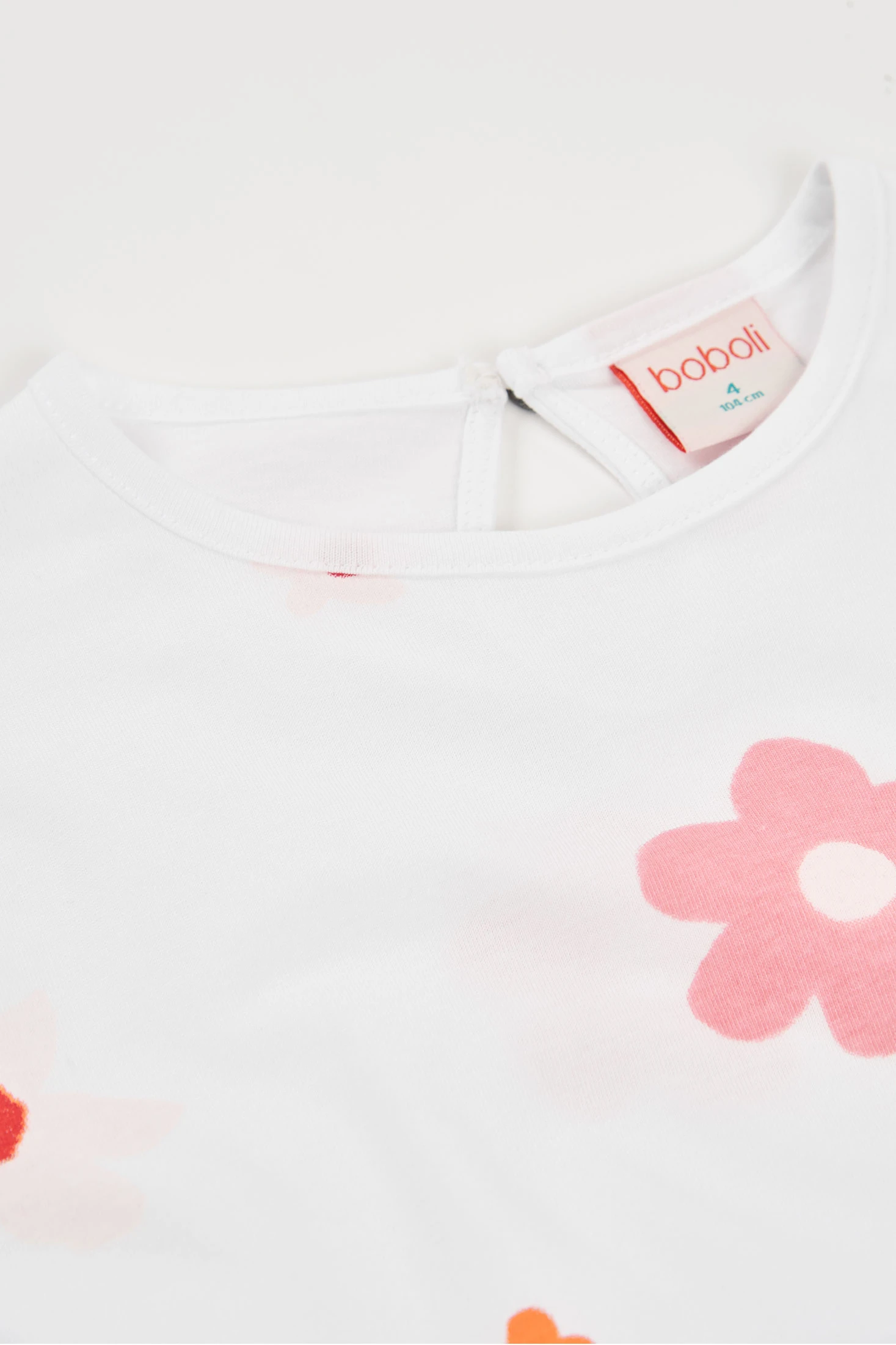 Abito in maglia bianca ideale per le più piccole, disponibile in taglie da 12 mesi fino a 14 anni. Il suo design presenta una stampa colorata di fiori in tonalità rosa, arancione e blu, insieme a adorabili coccinelle. Il materiale in maglia è morbido e confortevole, perfetto per un uso quotidiano. Il dettaglio di un fiocco in vita aggiunge un tocco di fascino. Con collo rotondo e maniche corte, è un'opzione versatile e allegra per qualsiasi occasione.