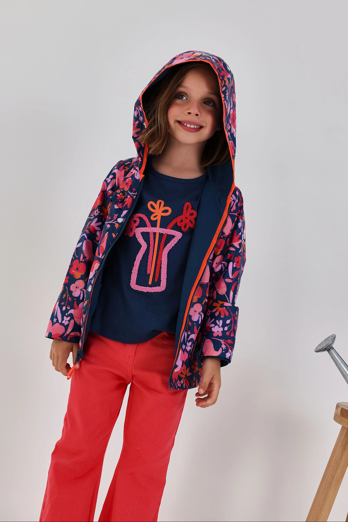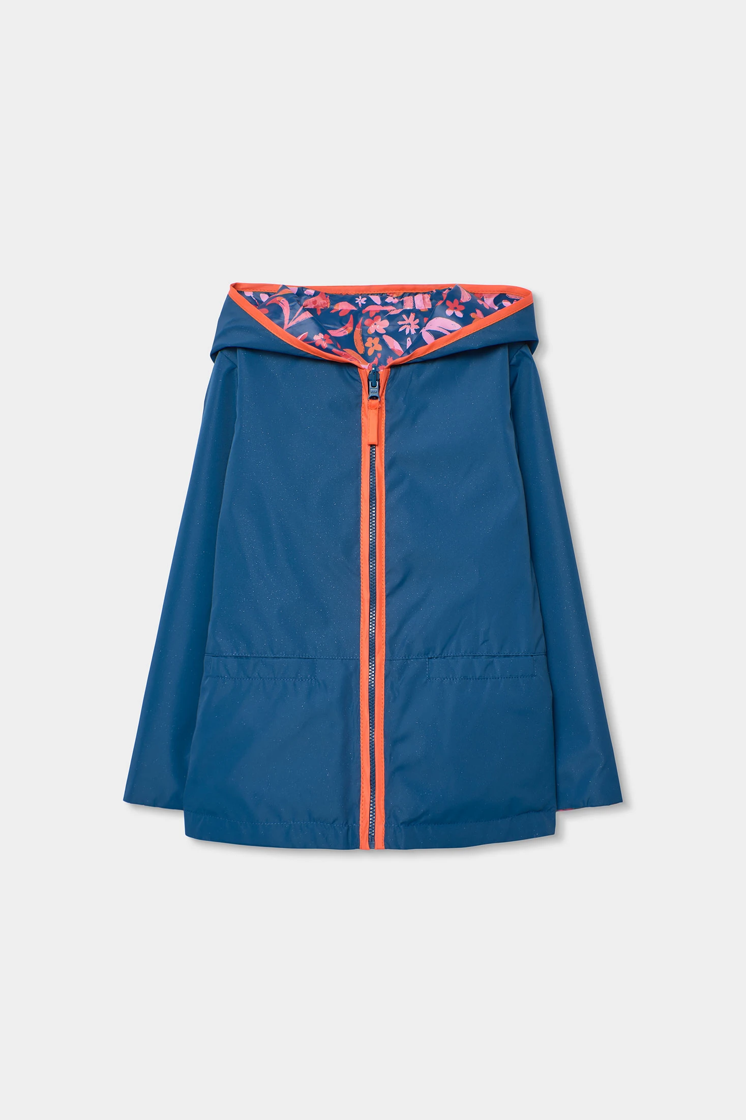 Parka reversibile per bambina realizzata in tessuto tecnico blu navy. Il suo design include un lato con una stampa colorata di fiori, aggiungendo un tocco divertente. La parka offre comfort e protezione dal freddo grazie alla sua chiusura con cerniera. Disponibile in taglie da 12 mesi a 14 anni, assicura una vestibilità adeguata durante la crescita. Capo versatile e funzionale, perfetto da abbinare con jeans o leggings, offrendo stile e calore durante le stagioni fredde.