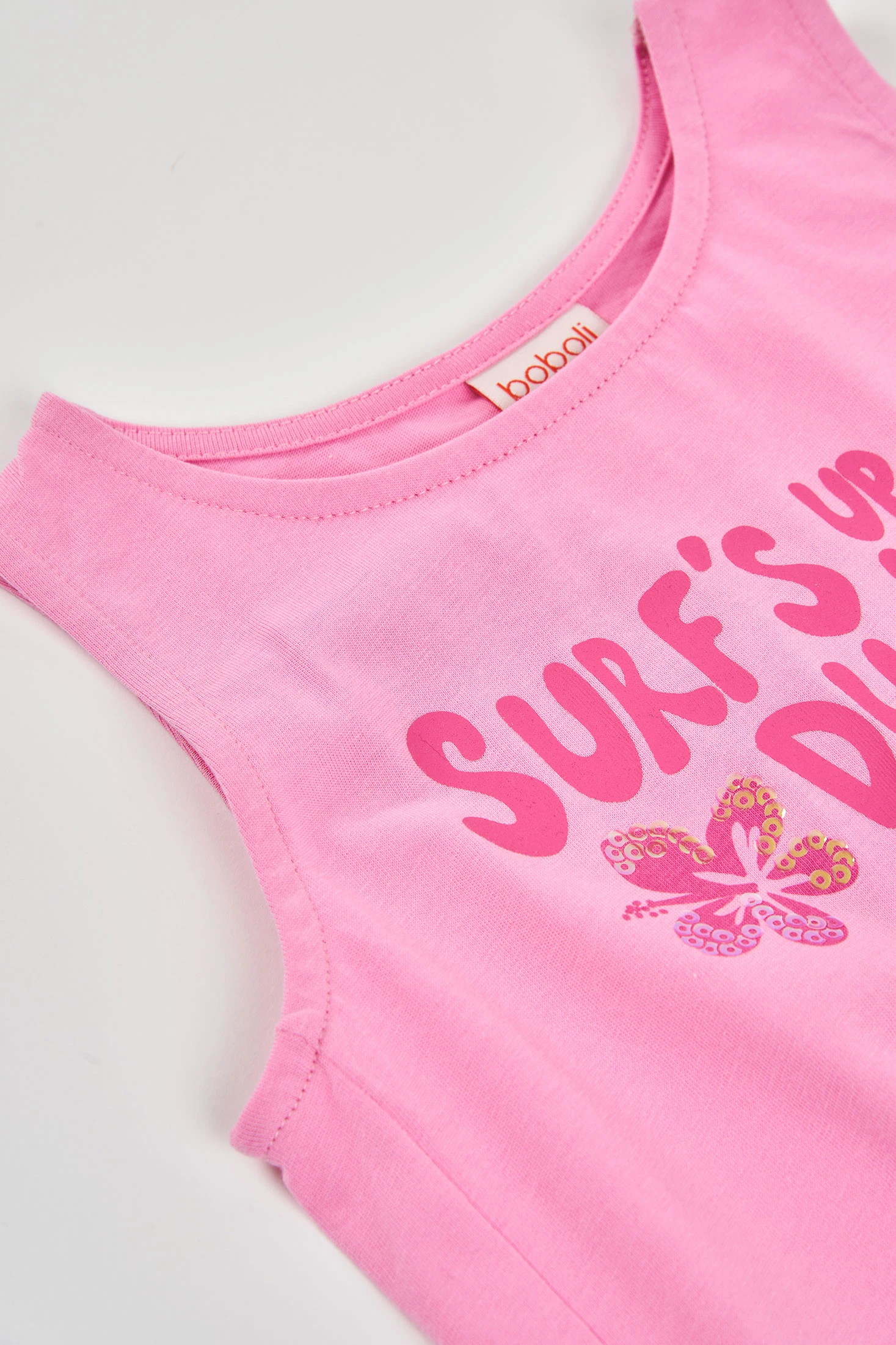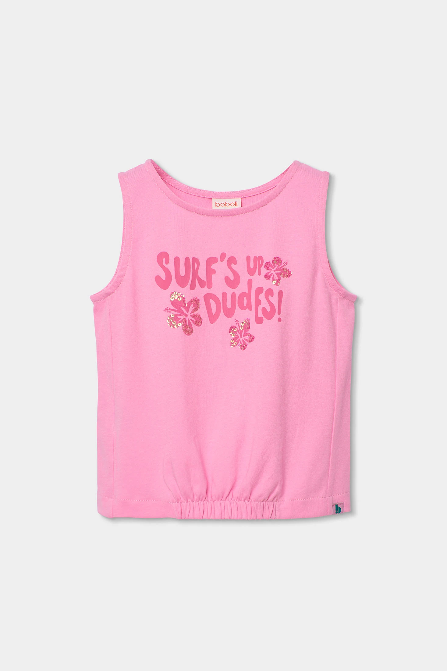 Canottiera per bambina, realizzata in morbido cotone rosa, ideale per la stagione estiva. Presenta un design attraente con testo divertente e dettagli floreali che aggiungono un tocco allegro. Pensata per bambine dai 2 ai 14 anni, offre comfort e freschezza per tutti i giorni. Con un collo rotondo, è perfetta da abbinare a pantaloncini o gonne nelle giornate di sole. Il suo stile casual e disinvolto la rende un'opzione versatile e pratica per il guardaroba infantile.