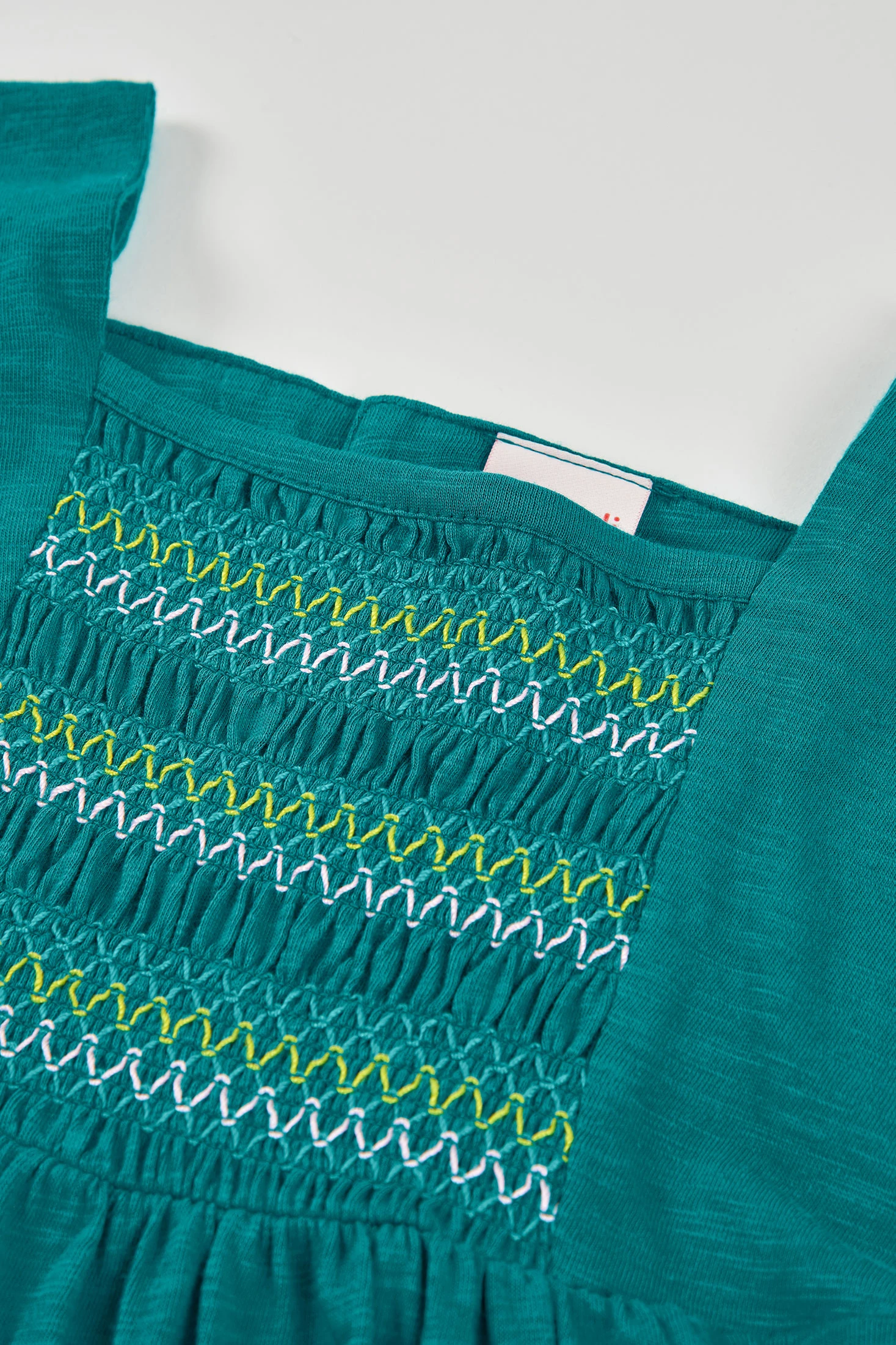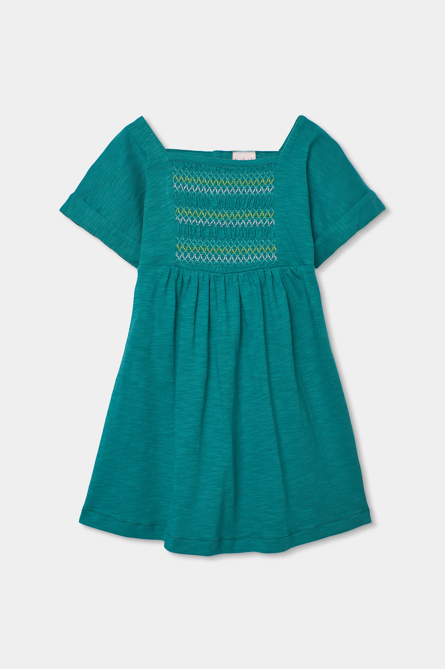 Vestito blu in maglia fiammata perfetto per la stagione estiva. Design con dettaglio di ricamo sul petto che aggiunge un tocco divertente al vestito. Tessuto in maglia fiammata leggero e comodo, ideale per mantenere le bambine fresche nei giorni caldi. Disponibile in taglie dai 2 ai 14 anni. Maniche corte che lo rendono pratico e versatile, abbinandosi bene con giacche leggere o leggings per i giorni più freschi. Colore blu vibrante che lo fa risaltare, essendo una scelta perfetta per qualsiasi occasione informale.