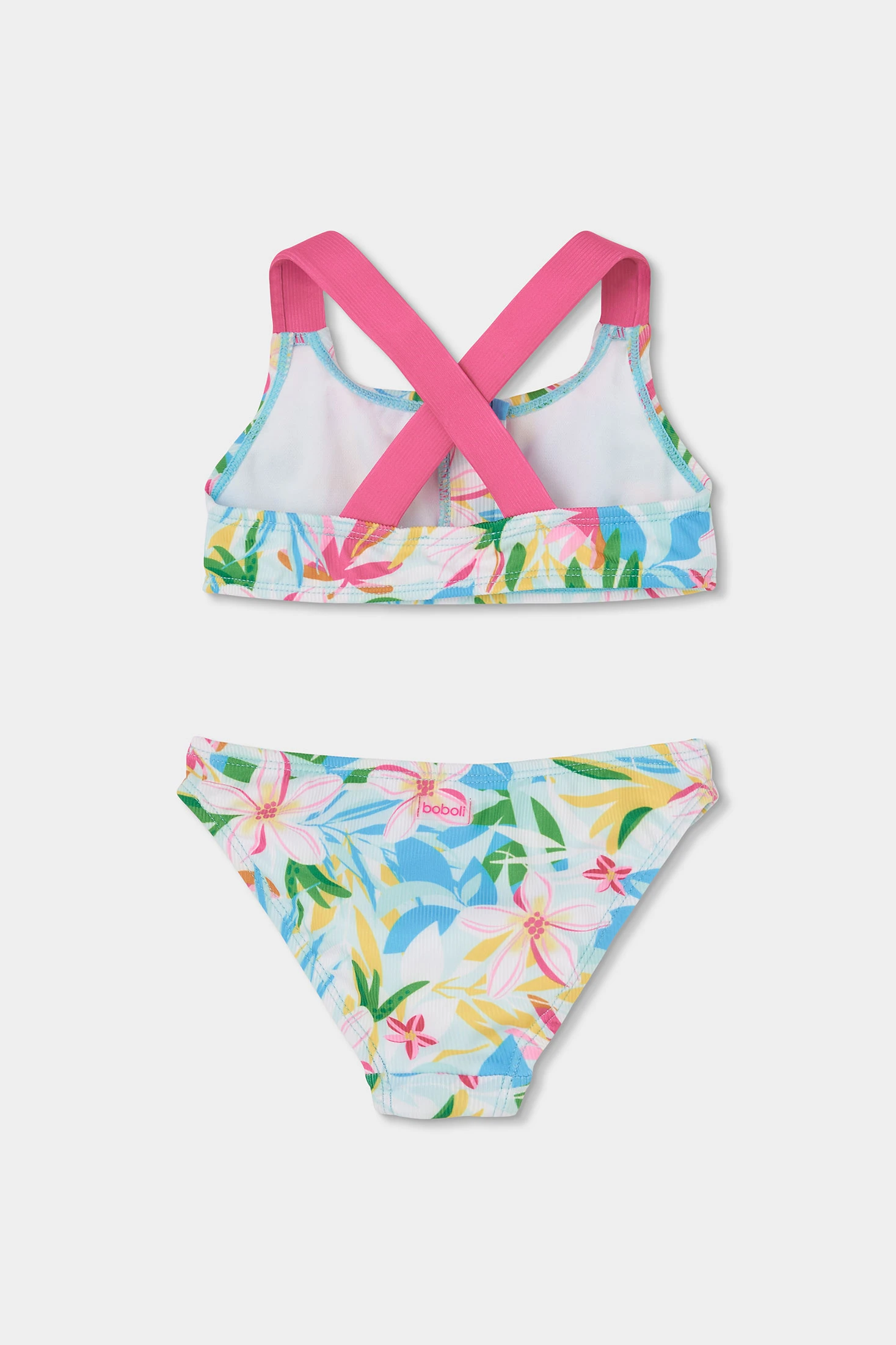 Bikini per bambina con una stampa di fiori in colori vivaci, ideale per l'estate. Realizzato con materiali morbidi ed elastici con protezione solare UPF50, assicura comfort e libertà di movimento in acqua. Disponibile in taglie da 2 anni a 14 anni, adatto a diverse età. Con il suo design colorato, questo bikini è perfetto per godersi giornate di sole in spiaggia o in piscina, combinando stile e funzionalità.