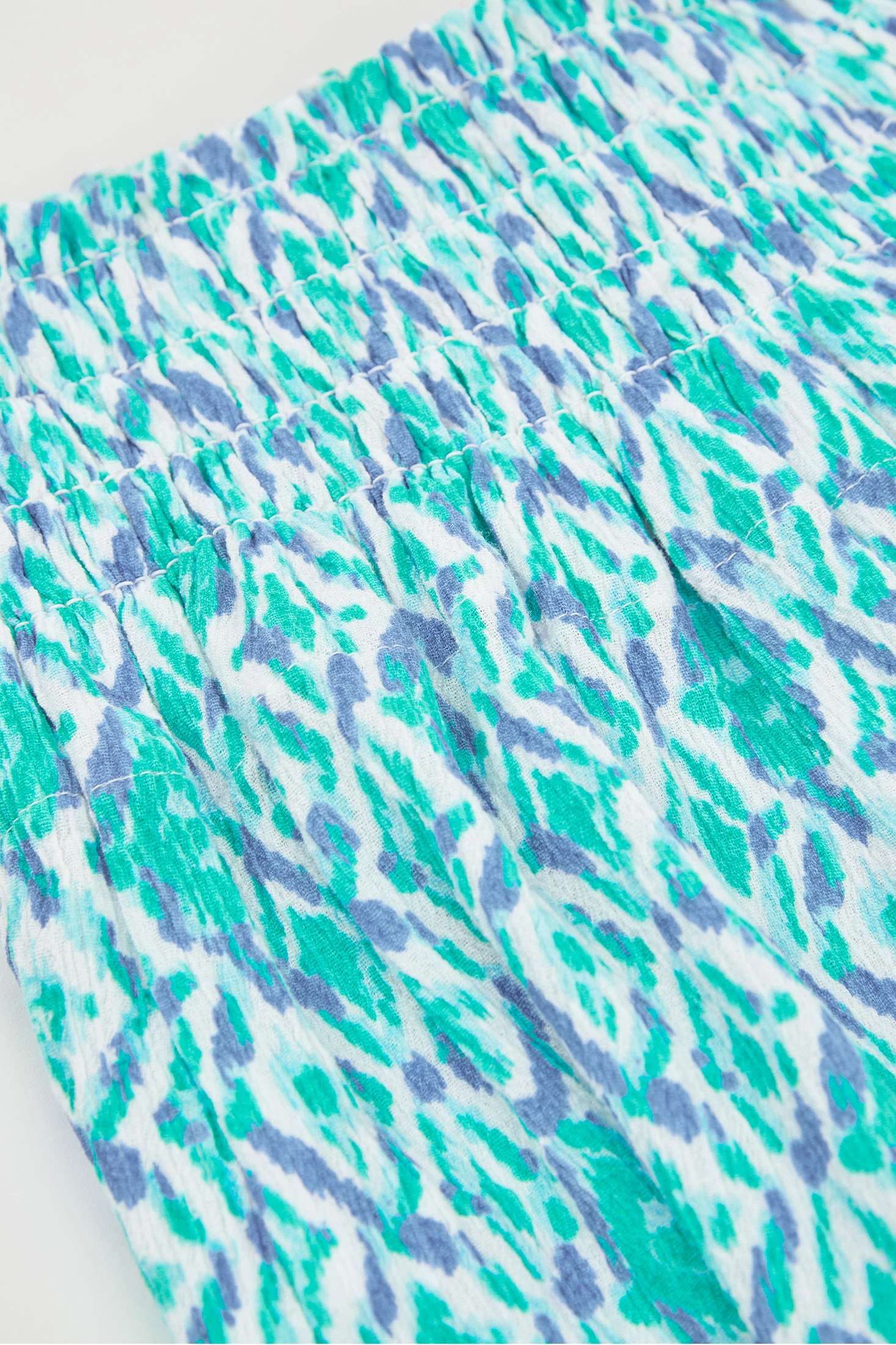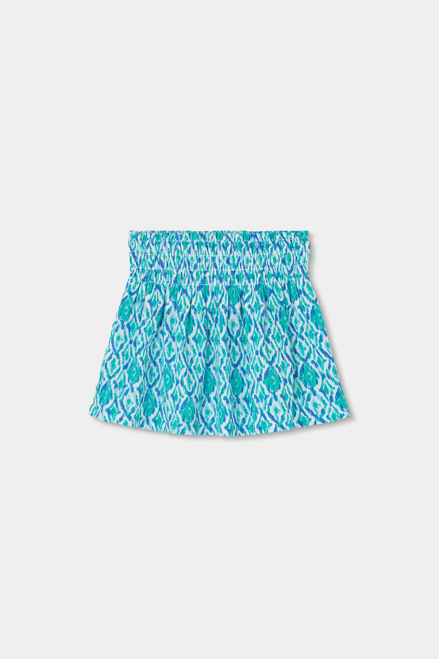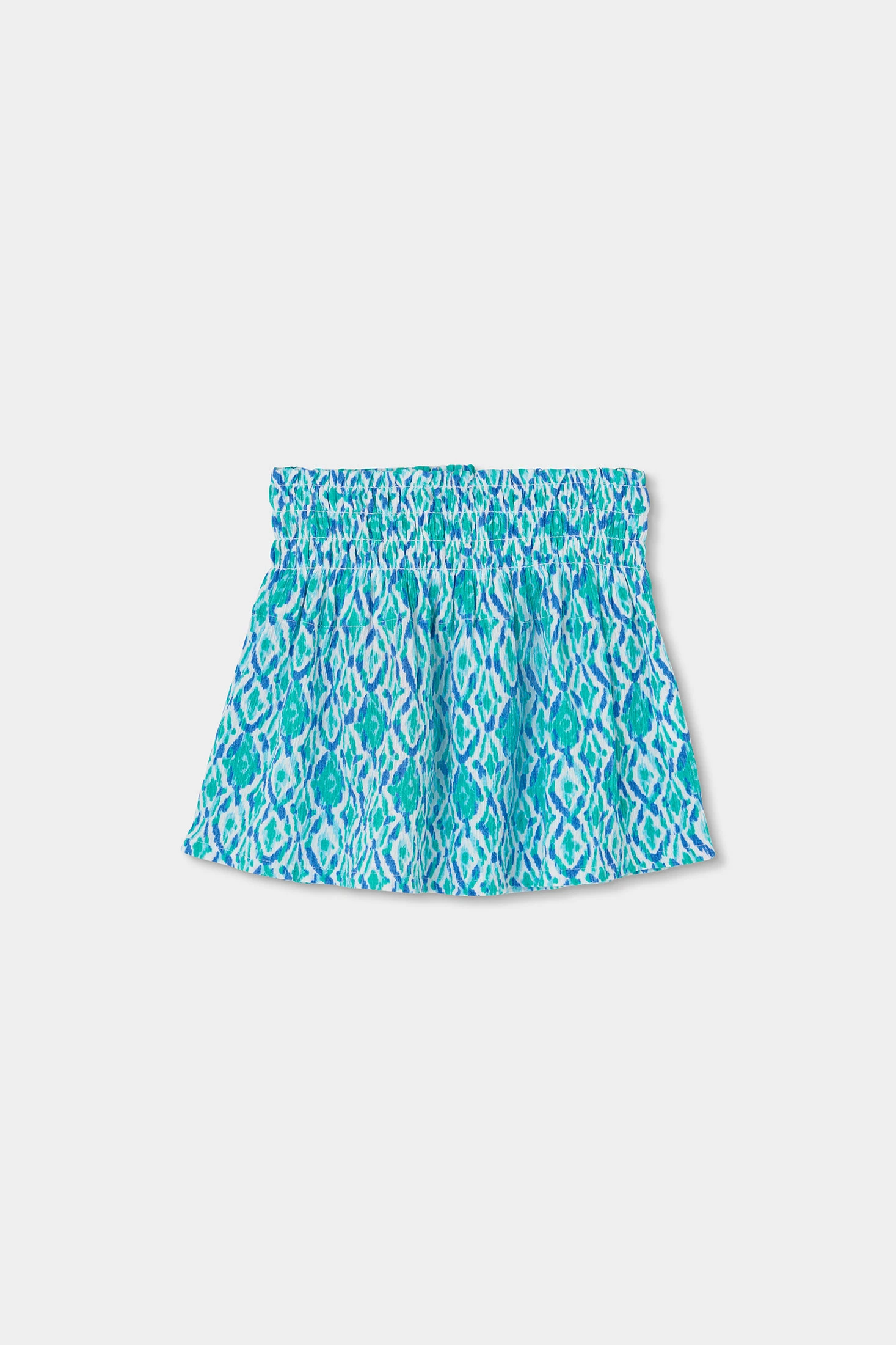 Gonna stampata per bambina, ideale per le stagioni calde. Realizzata in tessuto leggero di bambula, garantisce comfort e freschezza. Il suo design presenta una stampa etnica in tonalità blu e verde, perfetta per aggiungere colore al guardaroba infantile. Disponibile in taglie dai 2 ai 14 anni. La sua confezione permette libertà di movimento, ideale per il gioco quotidiano.