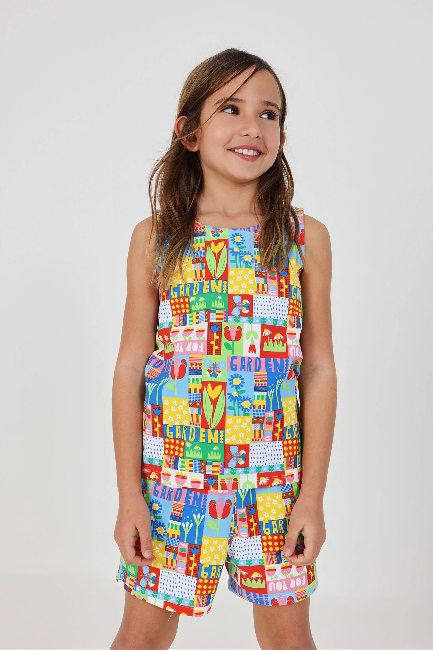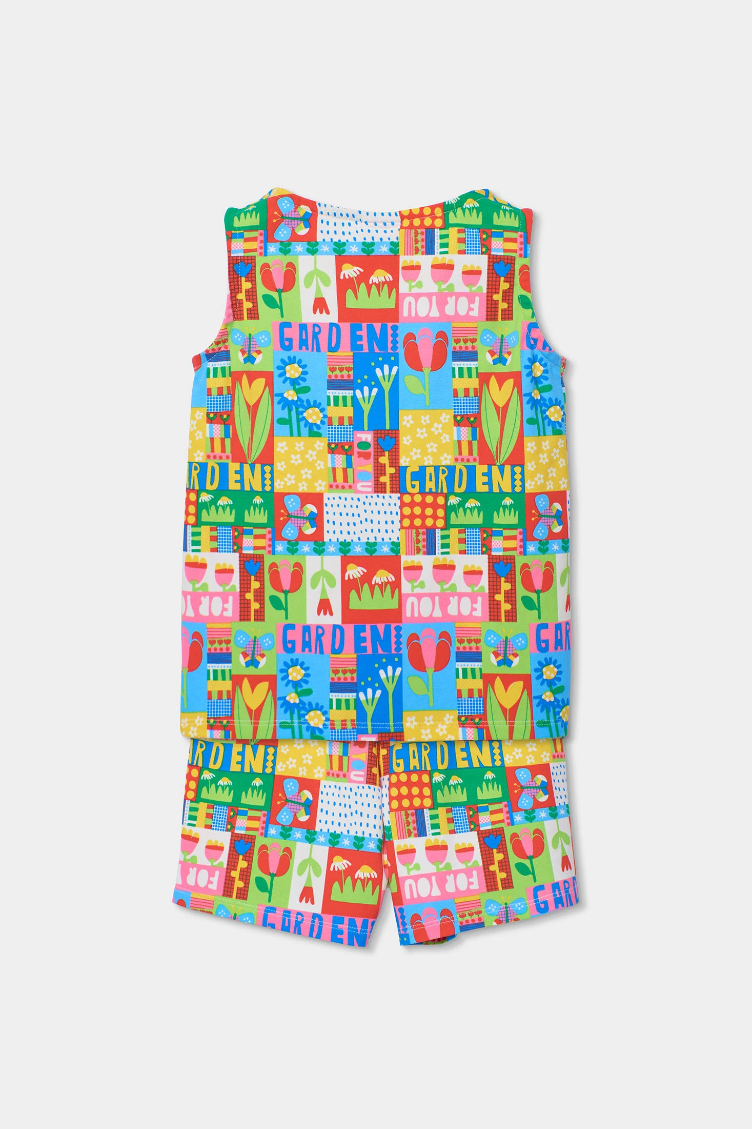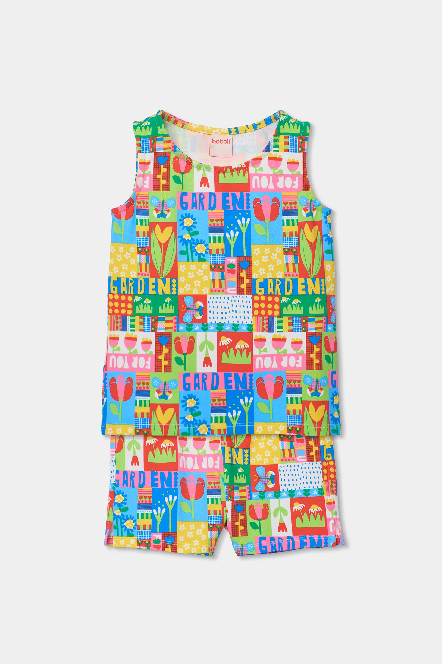 Pigiama per bambini perfetto per un sonno comodo e colorato. Con una stampa vivace che include fiori e motivi geometrici, offre un design allegro e animato. Realizzato in un materiale morbido e leggero, ideale per mantenere il comfort durante la notte. Disponibile in taglie da 2 a 14 anni. Il suo design multicolore aggiunge un tocco divertente, perfetto per qualsiasi bambino che ami uno stile accattivante. Un pigiama ideale per accompagnare notti tranquille e piene di sogni colorati.