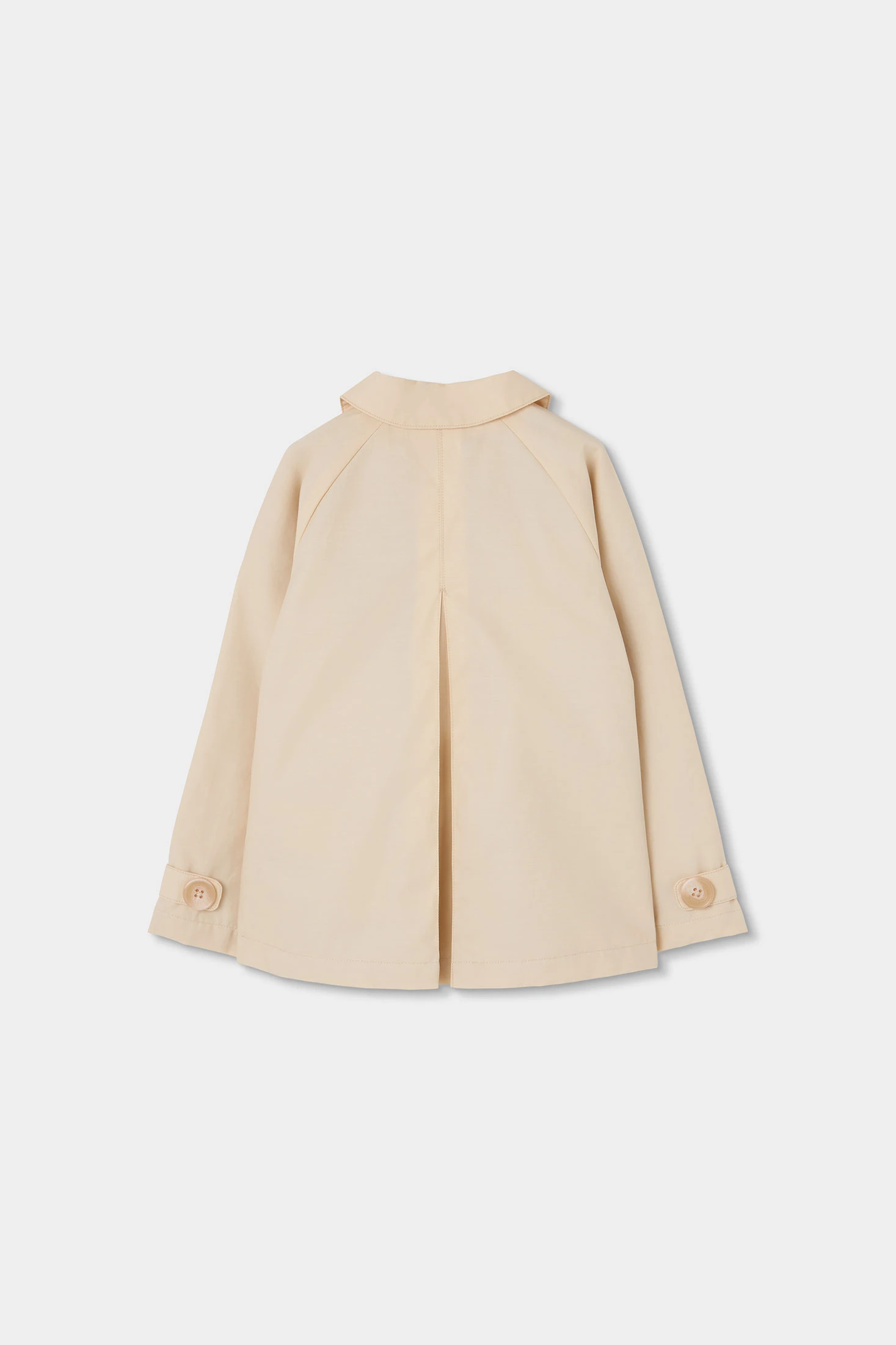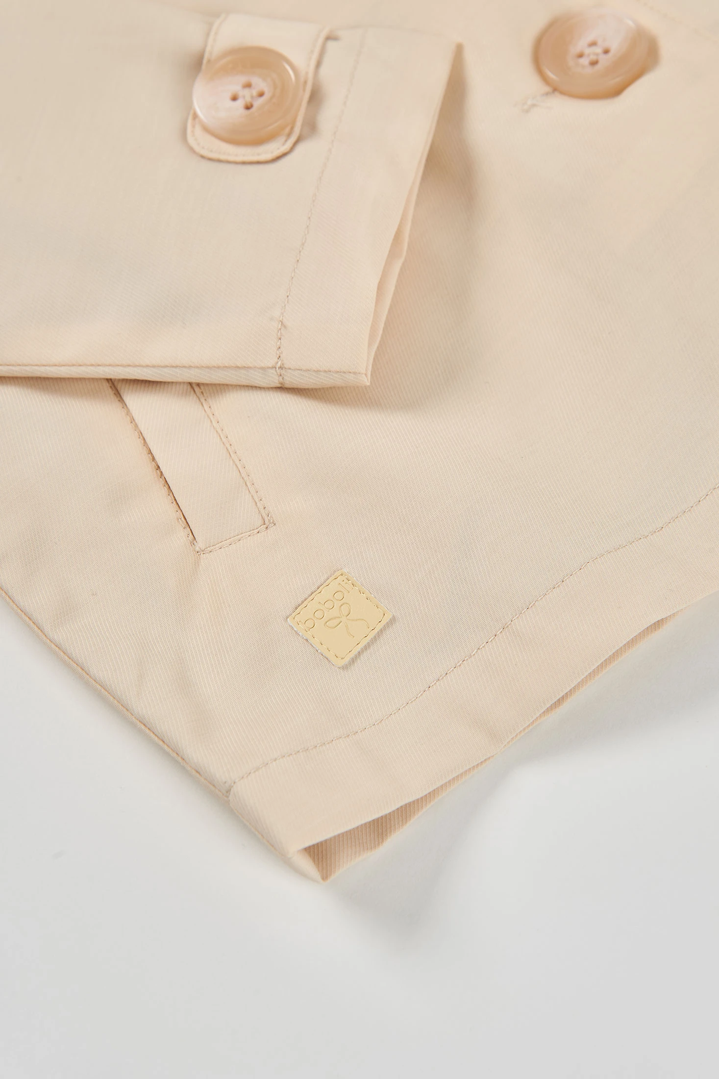 Impermeabile in tessuto tecnico color beige per bambina, ideale per la stagione primaverile. Realizzato in un materiale resistente e caldo, presenta un design moderno con grandi bottoni e pratiche tasche. Disponibile in taglie da 12 mesi a 10 anni, si adatta facilmente alla crescita della bambina. Il suo colore beige neutro lo rende versatile per abbinarsi a diversi stili e abbigliamenti, offrendo comfort ed eleganza nei giorni più freschi.