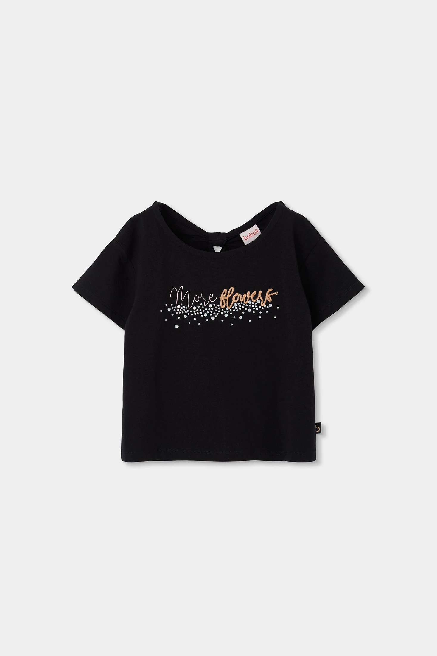 Maglietta in cotone nero per bambina, ideale per la stagione, che offre comfort e stile. Presenta un design con maniche corte e una stampa colorata sulla parte anteriore. Perfetta per occasioni casuali, consente movimento e freschezza. Le taglie disponibili sono dalla 2 alla 14 anni. Il suo tessuto in cotone la rende morbida al tatto, essendo un'opzione versatile da abbinare a tutti i tipi di capi. Un capo essenziale nel guardaroba di qualsiasi bambina che cerca stile con semplicità.