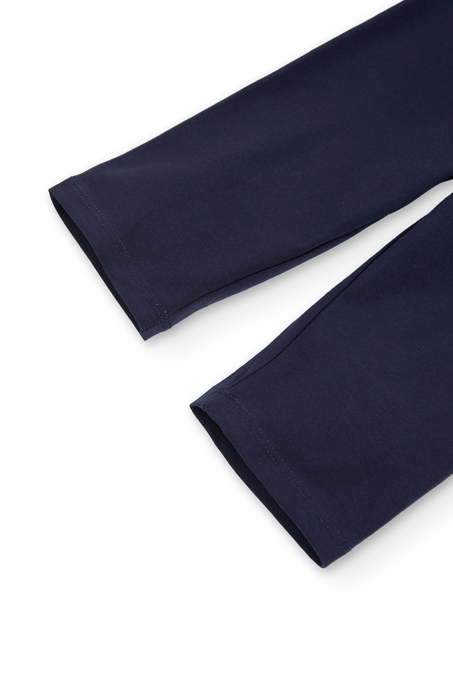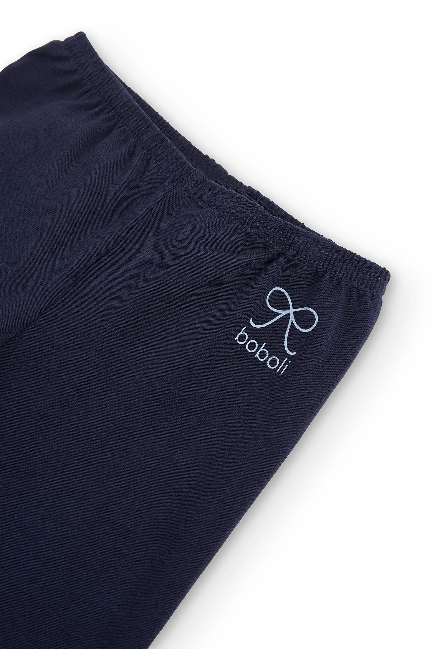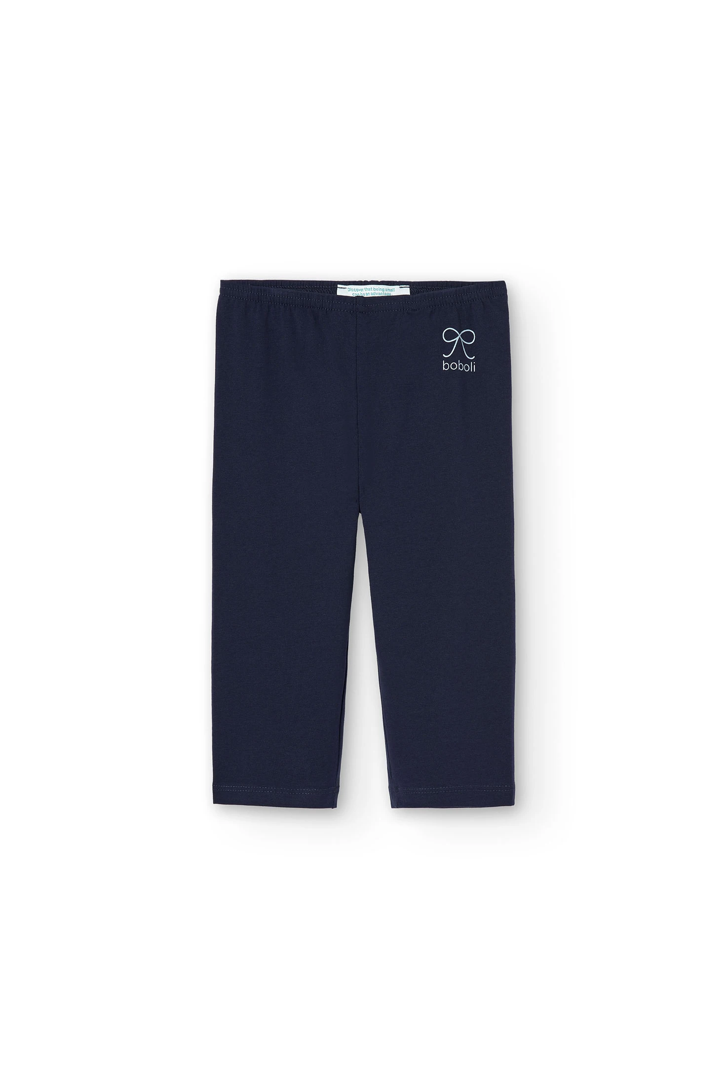 Leggings pirata in maglia elasticizzata per bambina. Di colore blu navy, presentano un design semplice e confortevole, ideale per le giornate più calde. Sono realizzati in un tessuto morbido e flessibile, con una composizione di 92% cotone e 8% elastan, che assicura comfort, elasticità e libertà di movimento. Un capo pratico e versatile, perfetto per l’uso quotidiano e facile da abbinare a diversi stili.