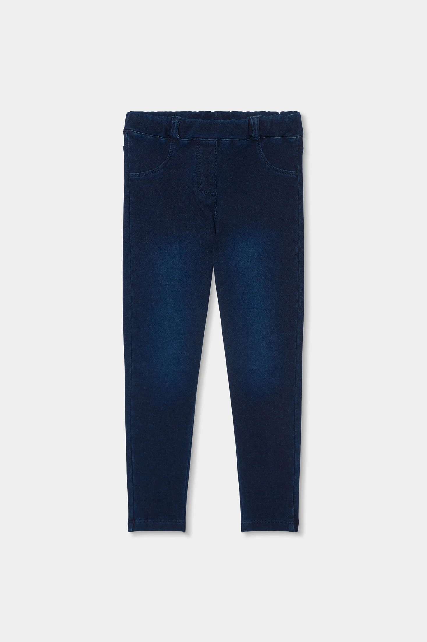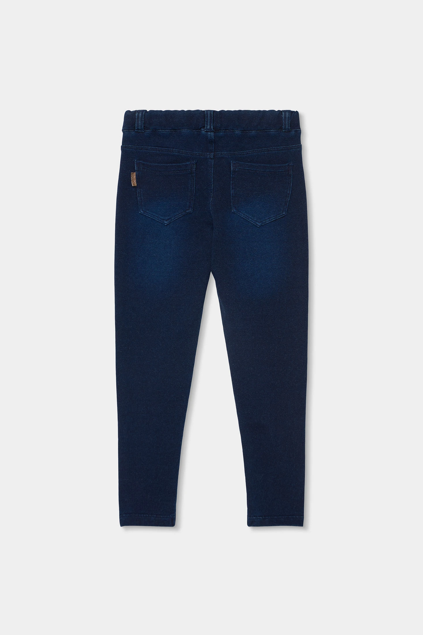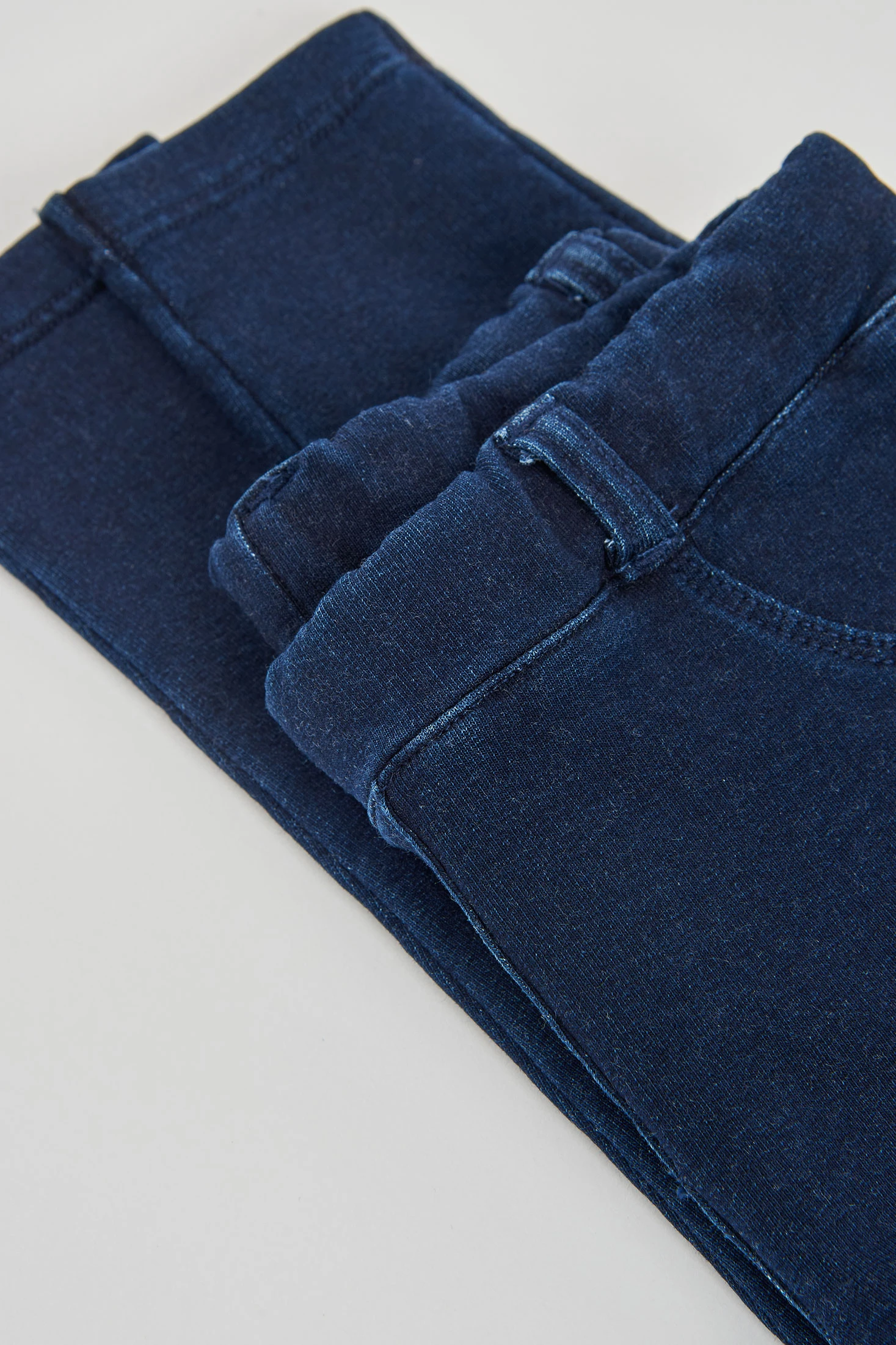 Pantaloni in felpa denim per bambina. Di colore blu navy, presentano un design semplice con finitura effetto denim, che unisce stile e comfort. Sono realizzati in una felpa morbida ed elasticizzata, con una composizione di 78% cotone, 15% poliestere e 7% elastan, che garantisce comfort, flessibilità e una vestibilità piacevole. Un capo pratico e versatile, ideale per l’uso quotidiano e per creare look comodi.