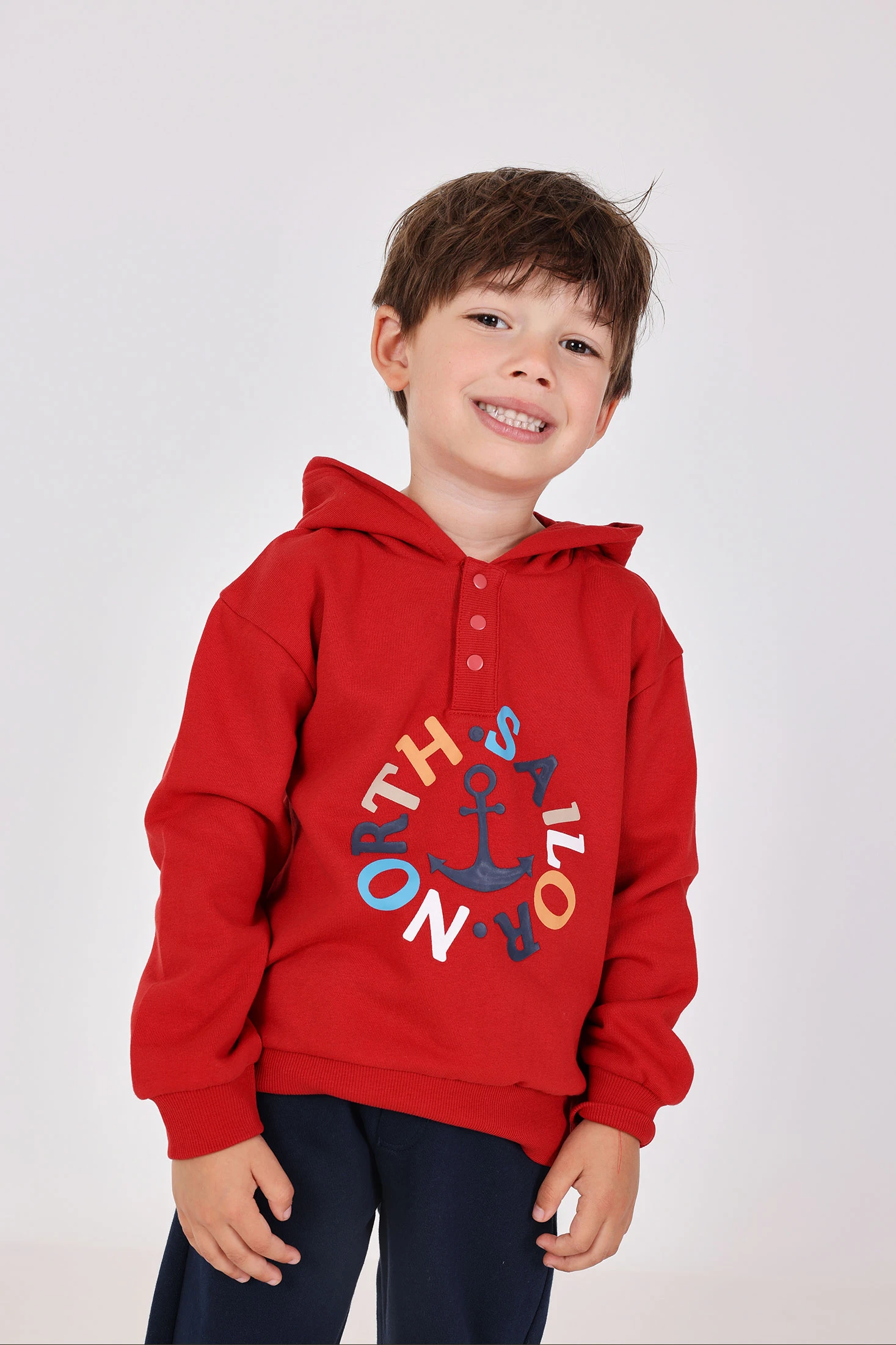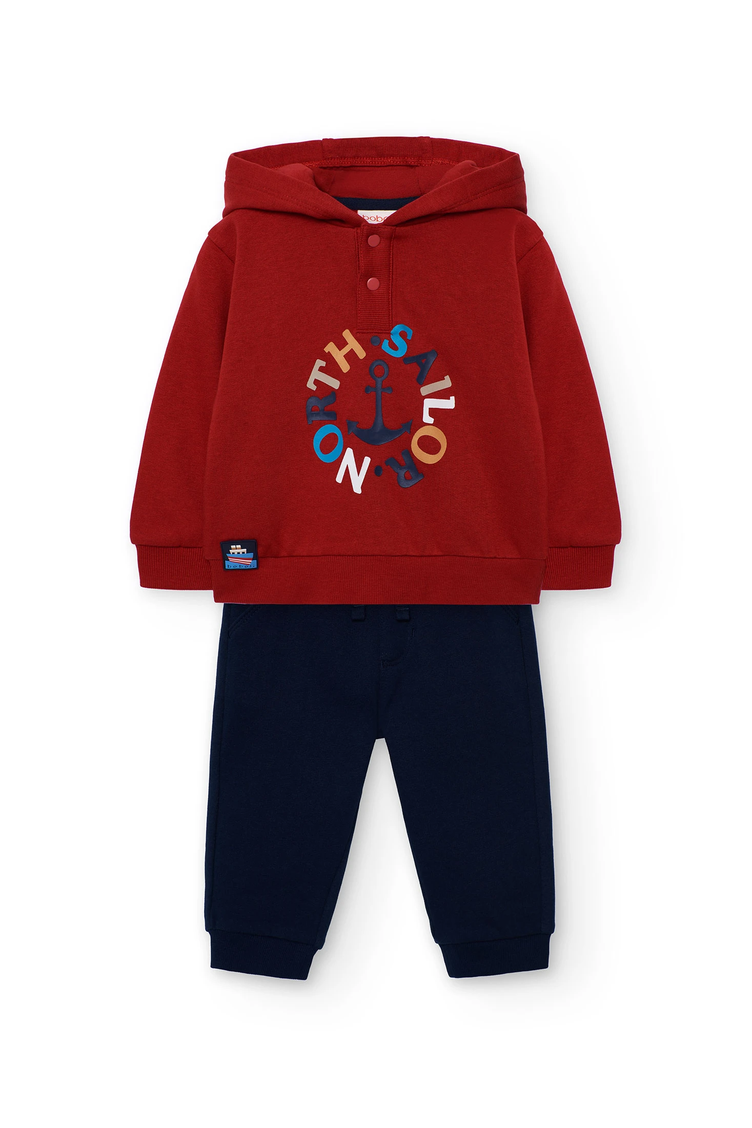 Set in felpa nautico per bambino in colore granata comprende una felpa di tessuto felpato con dettagli nautici e pantaloni coordinati. Realizzato in felpa morbida, il set offre calore e comfort per l'uso quotidiano. Disponibile in taglie che vanno da 12 mesi a 10 anni, il suo colore vibrante e il design tematico conferiscono uno stile fresco e divertente. Perfetto per genitori che cercano di mantenere il loro piccolo al caldo con un look moderno e pratico.