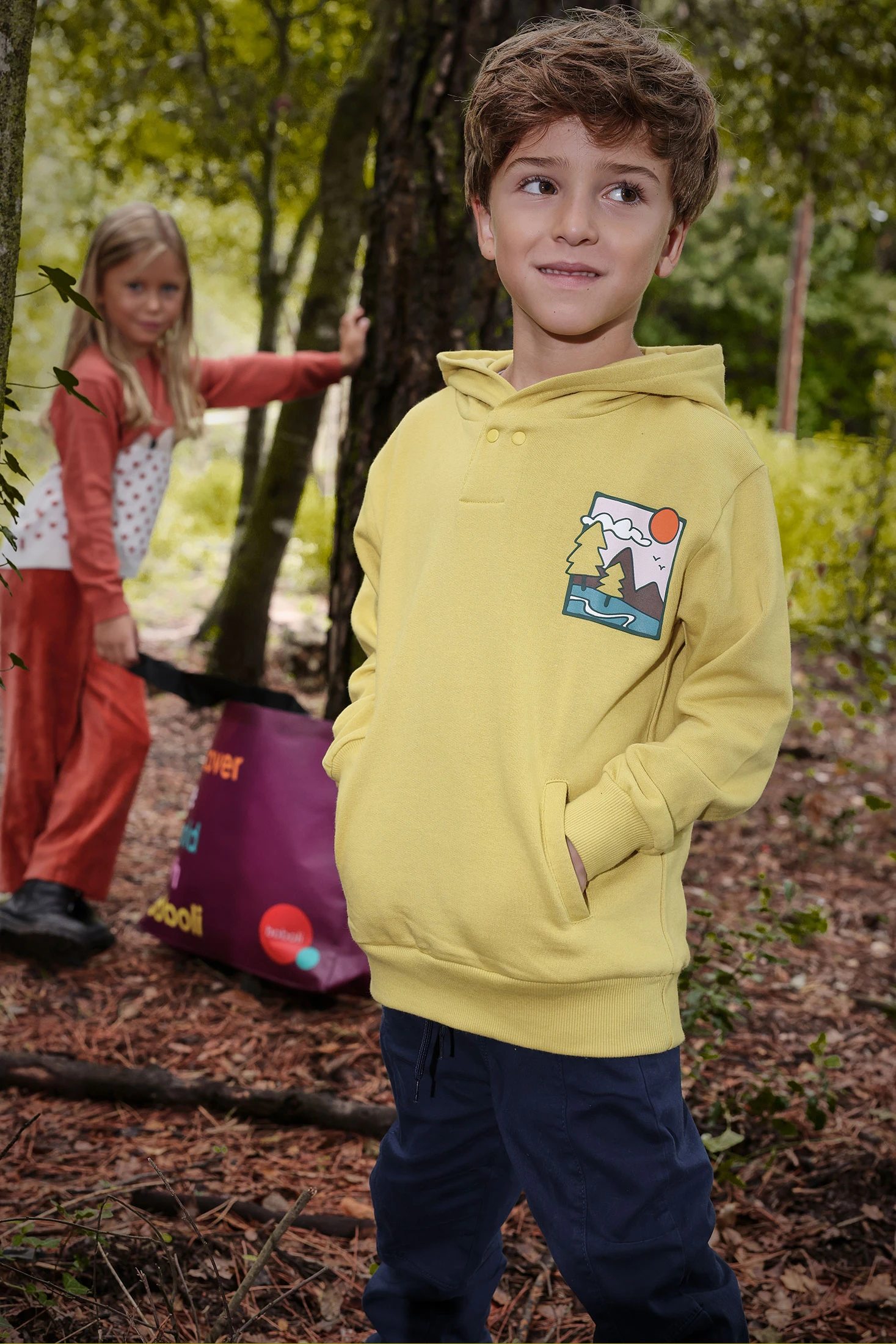 Felpa per bambino in colore verde si presenta come una scelta accogliente e versatile per la stagione autunnale e invernale. Realizzata in morbida pelfa, offre un calore eccezionale senza sacrificare il comfort. Il design include un collo con cappuccio e maniche lunghe, ideale per mantenere il tuo piccolo al caldo durante i giorni più freddi. Disponibile in taglie da 12 mesi a 10 anni, offre la flessibilità necessaria per la crescita del tuo bambino. Si abbina facilmente con jeans o pantaloni di cotone, creando un insieme comodo e stiloso per qualsiasi occasione.
