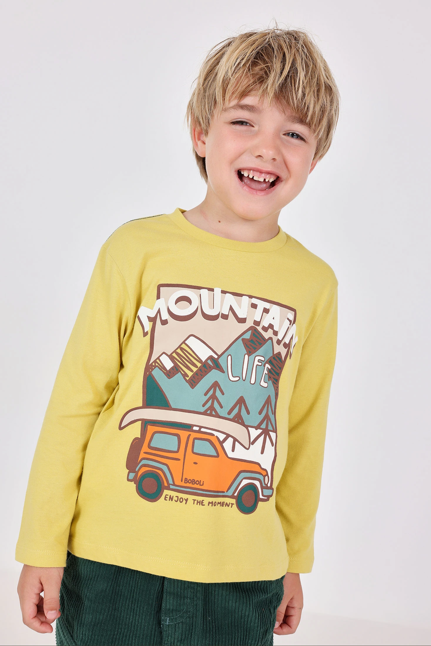 Maglietta a maglia per bambino di colore verde, ideale per la stagione autunnale, offre un comfort eccezionale grazie al suo morbido tessuto di cotone. Con un incantevole design ispirato alla natura montana, questo capo è perfetto per i piccoli esploratori della famiglia. Il collo rotondo facilita vestire il piccolo, rendendo questa maglietta un'opzione pratica e stilosa. Disponibile in taglie da 12 mesi a 10 anni, è versatile per creare look informali. Si può abbinare perfettamente con pantaloni o giacche per un look accogliente e avventuroso.