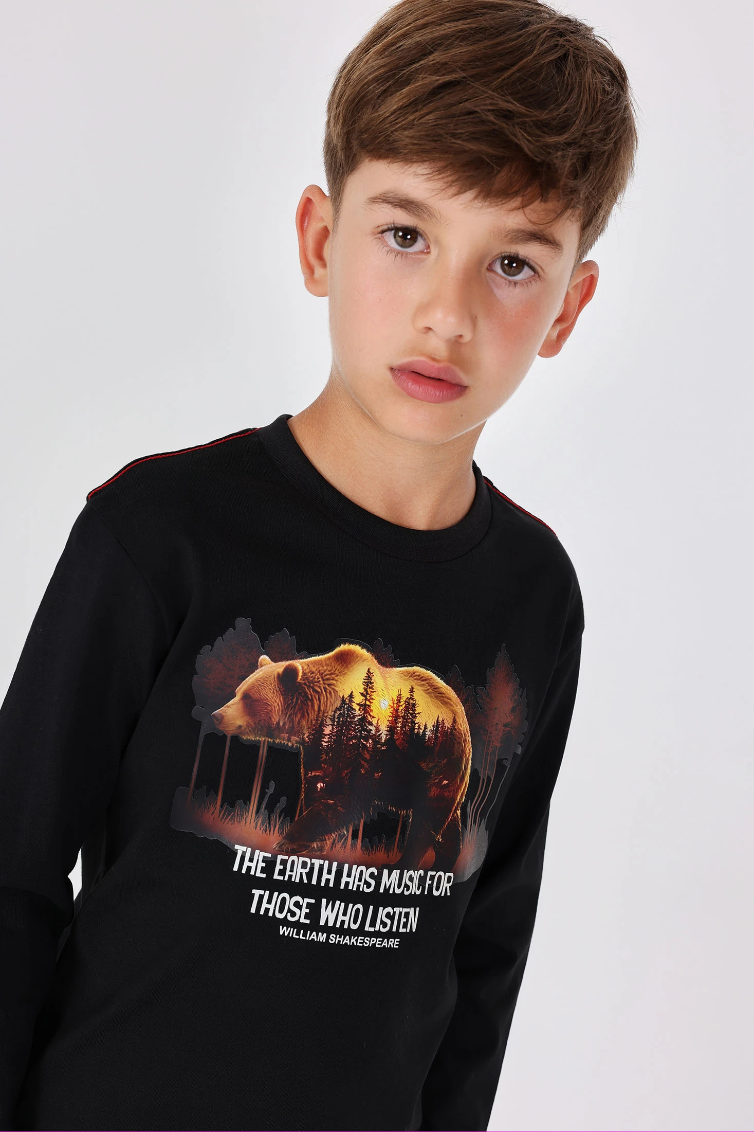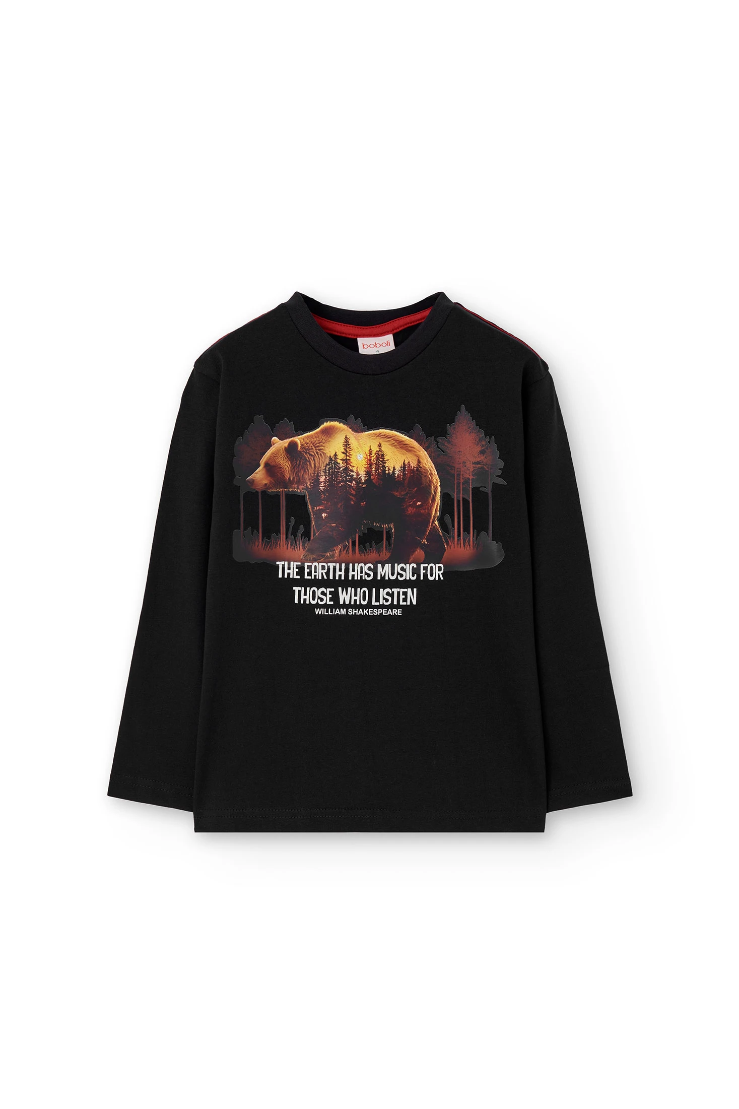 Maglietta di cotone per bambino, ideale per le stagioni autunnali e invernali, realizzata con un tessuto morbido che offre comfort e calore. Si distingue per il suo design in colore nero con una stampa di orso e alberi, e un pratico collo rotondo che facilita l’abbigliamento quotidiano. Disponibile nelle taglie da 2 a 14 anni, questo capo versatile si abbina facilmente con jeans o pantaloni casual. Perfetta per offrire stile e comfort ai più piccoli nei giorni più freddi.