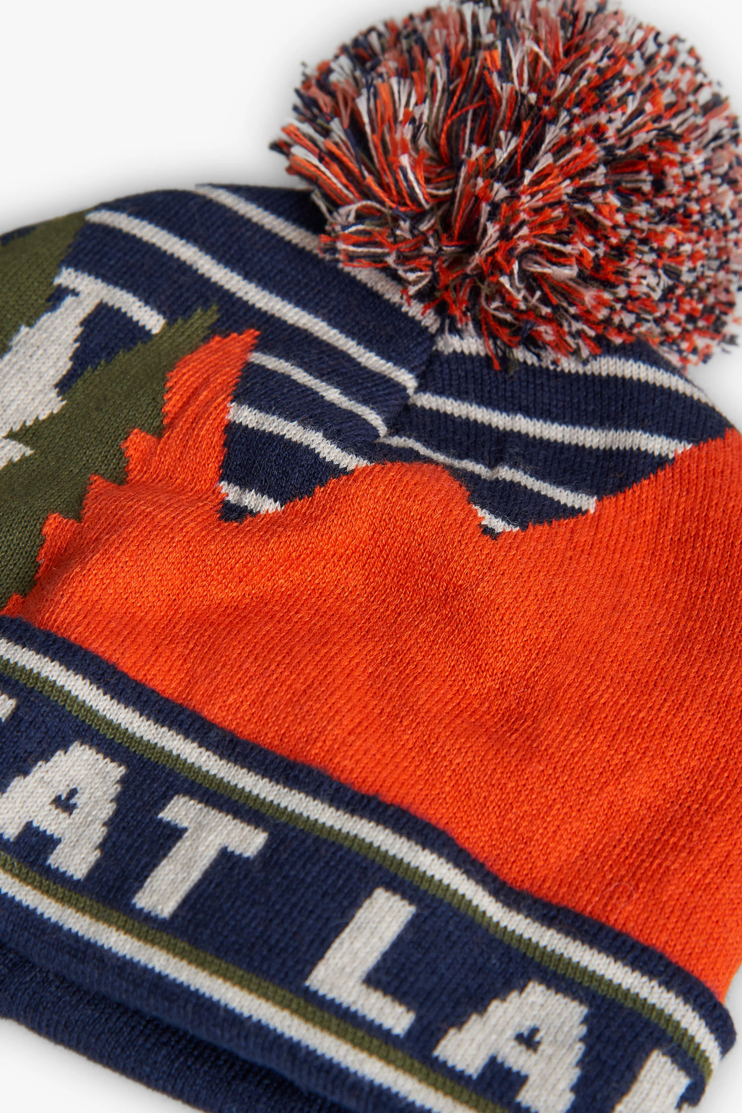Berretto blu marino con righe e pompon