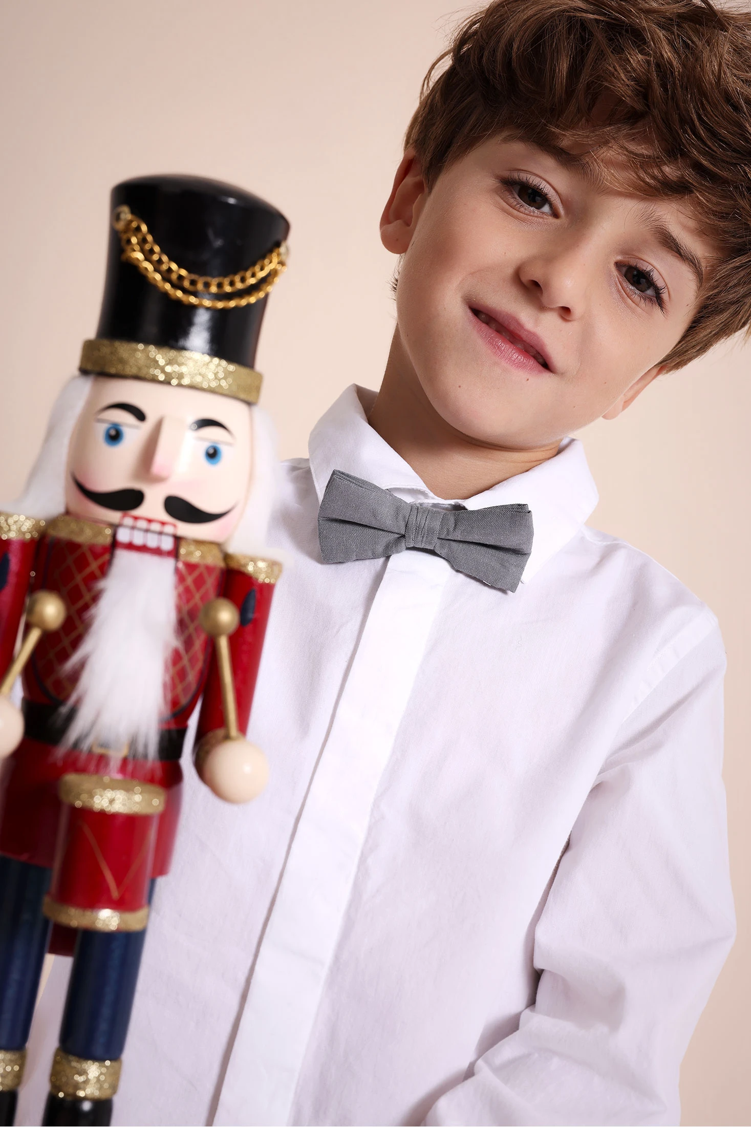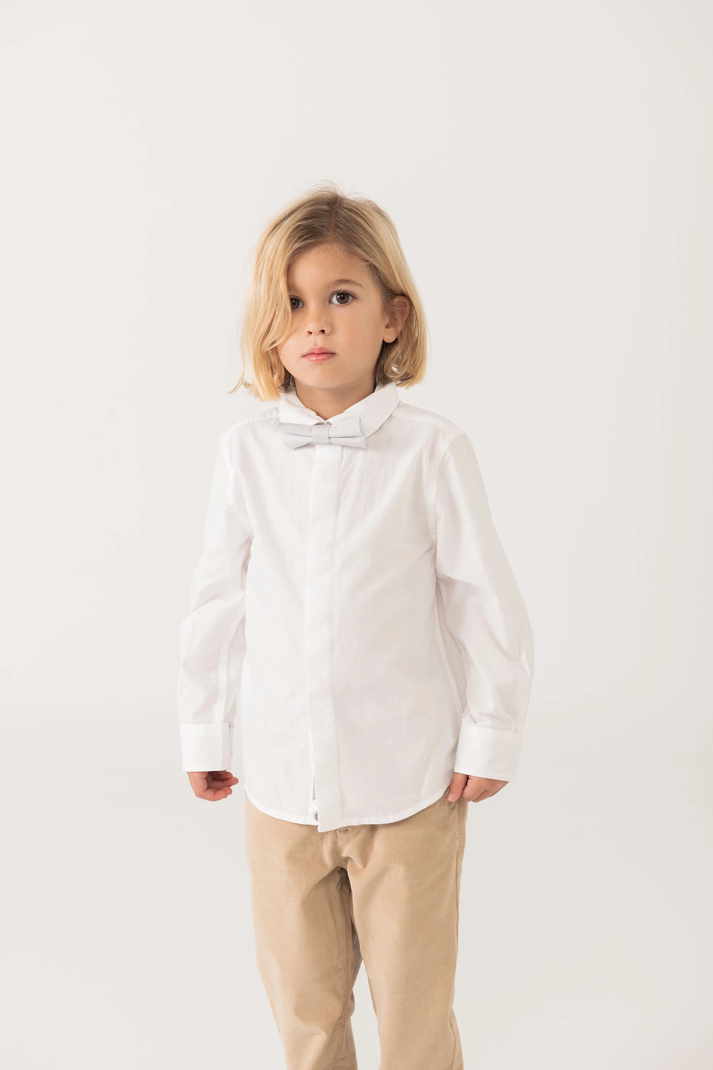 Camicia da bambino con papillon in popeline bianco