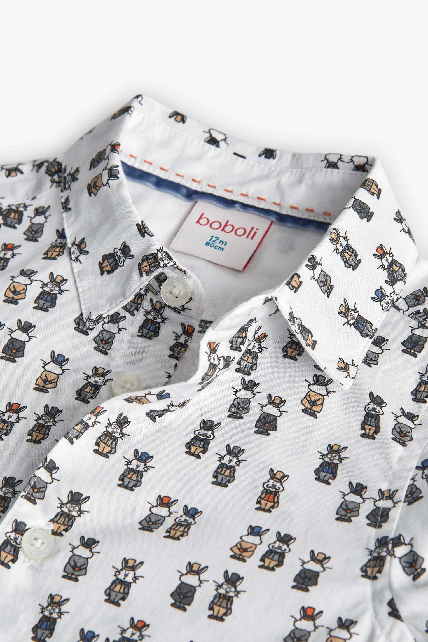 Camicia in popeline per bambino di colore bianco con una stampa di animali, ideale per aggiungere un tocco giocoso al guardaroba del tuo piccolo. Realizzata in popeline, offre una texture morbida e confortevole, perfetta per la pelle delicata dei più piccoli. Disegnata con maniche lunghe e colletto classico, è disponibile in taglie da 12 mesi a 10 anni, garantendo una vestibilità perfetta in ogni fase della crescita. Capo versatile che può essere facilmente abbinato a pantaloni formali per un abbigliamento elegante o con jeans per un look quotidiano disinvolto.