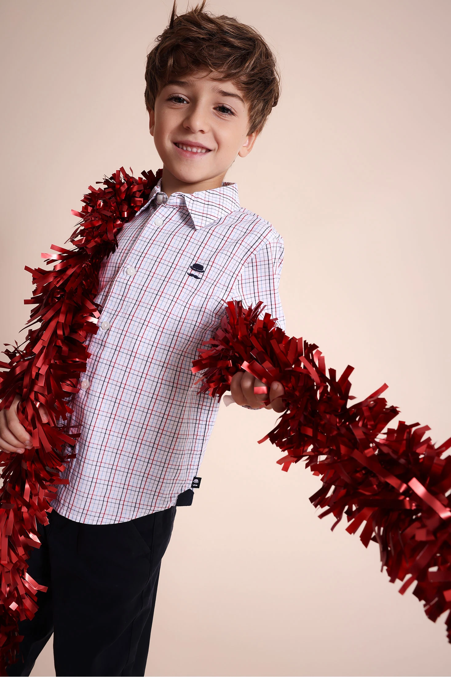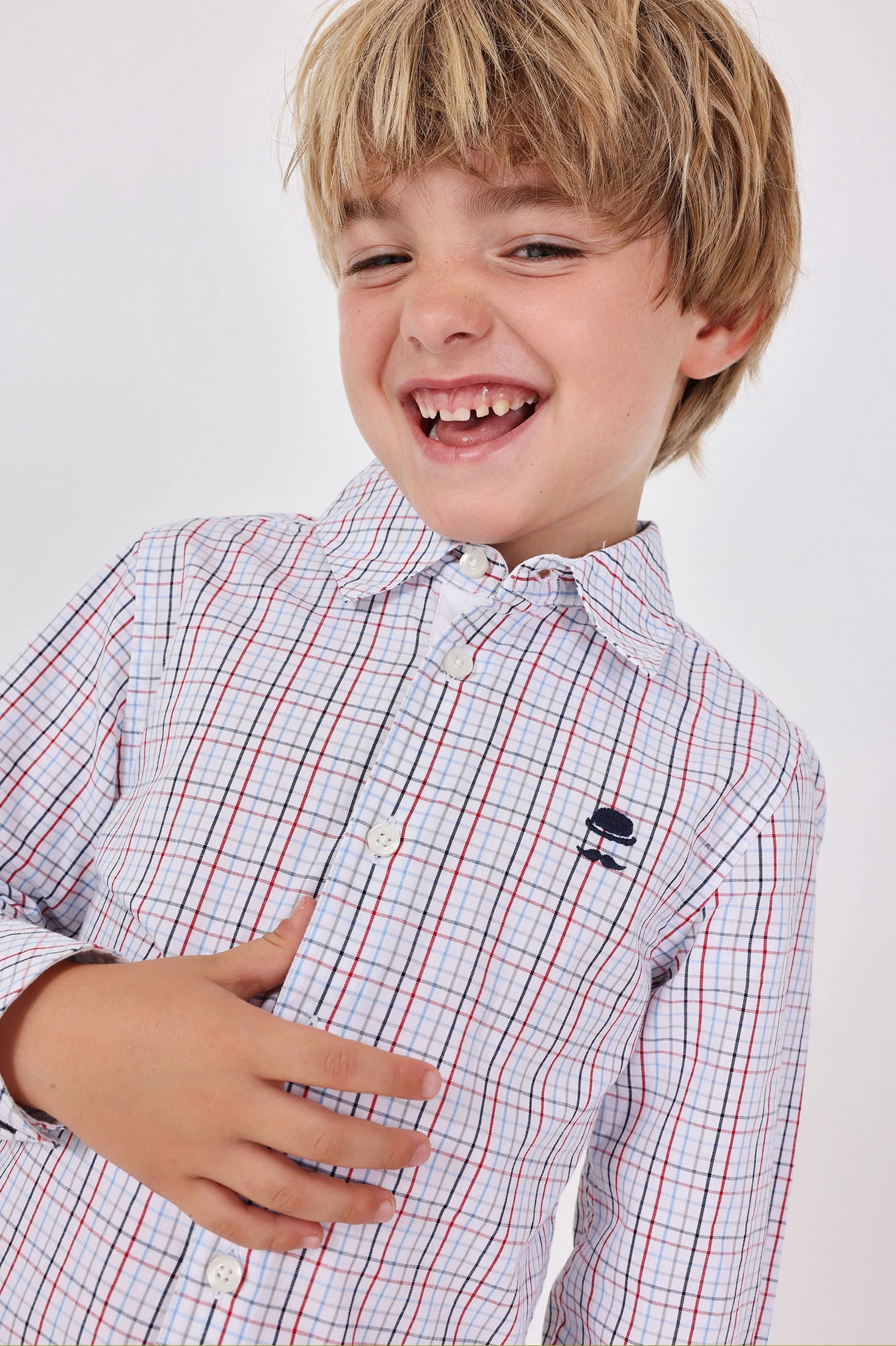 Camicia in popeline per bambino presenta un design a quadri in tonalità blu e rosso su sfondo bianco, ideale per uscite informali o eventi speciali. Realizzata in morbido e comodo tessuto di popeline, è dotata di un colletto classico e chiusura a bottoni nella parte anteriore. Perfetta da abbinare a pantaloni di jeans o chino, dona uno stile senza tempo a qualsiasi outfit. Disponibile in taglie dai 12 mesi ai 10 anni, è un capo imprescindibile nel guardaroba di ogni piccolo.