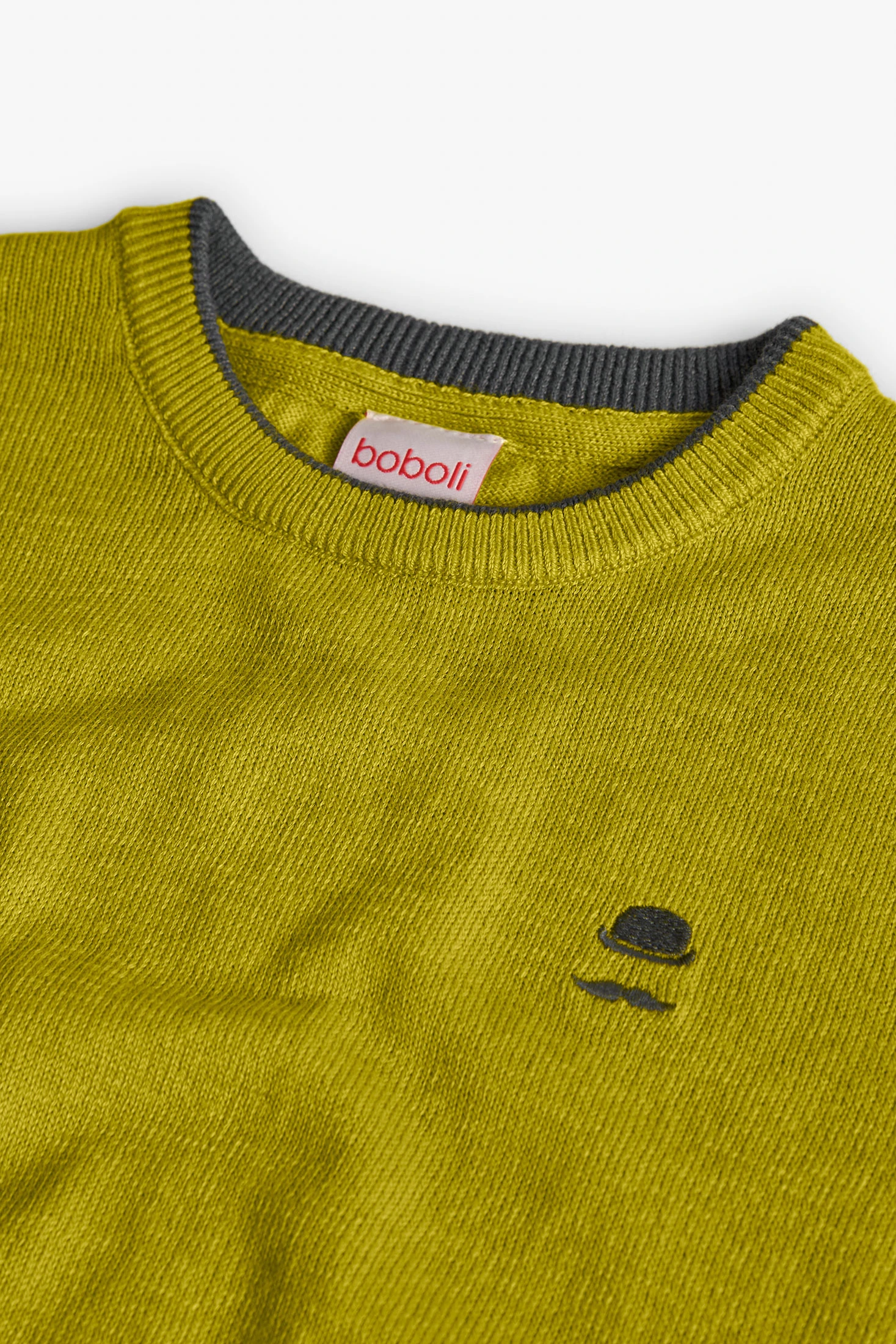 Maglione verde da bambino, progettato per offrire comfort e stile in ogni occasione. Realizzato in morbido tessuto a maglia, presenta un collo rotondo e maniche lunghe che conferiscono un look moderno ed elegante. Disponibile nelle taglie dalla 2 alla 14 anni, si abbina facilmente a pantaloni o jeans per creare look casual o formali.