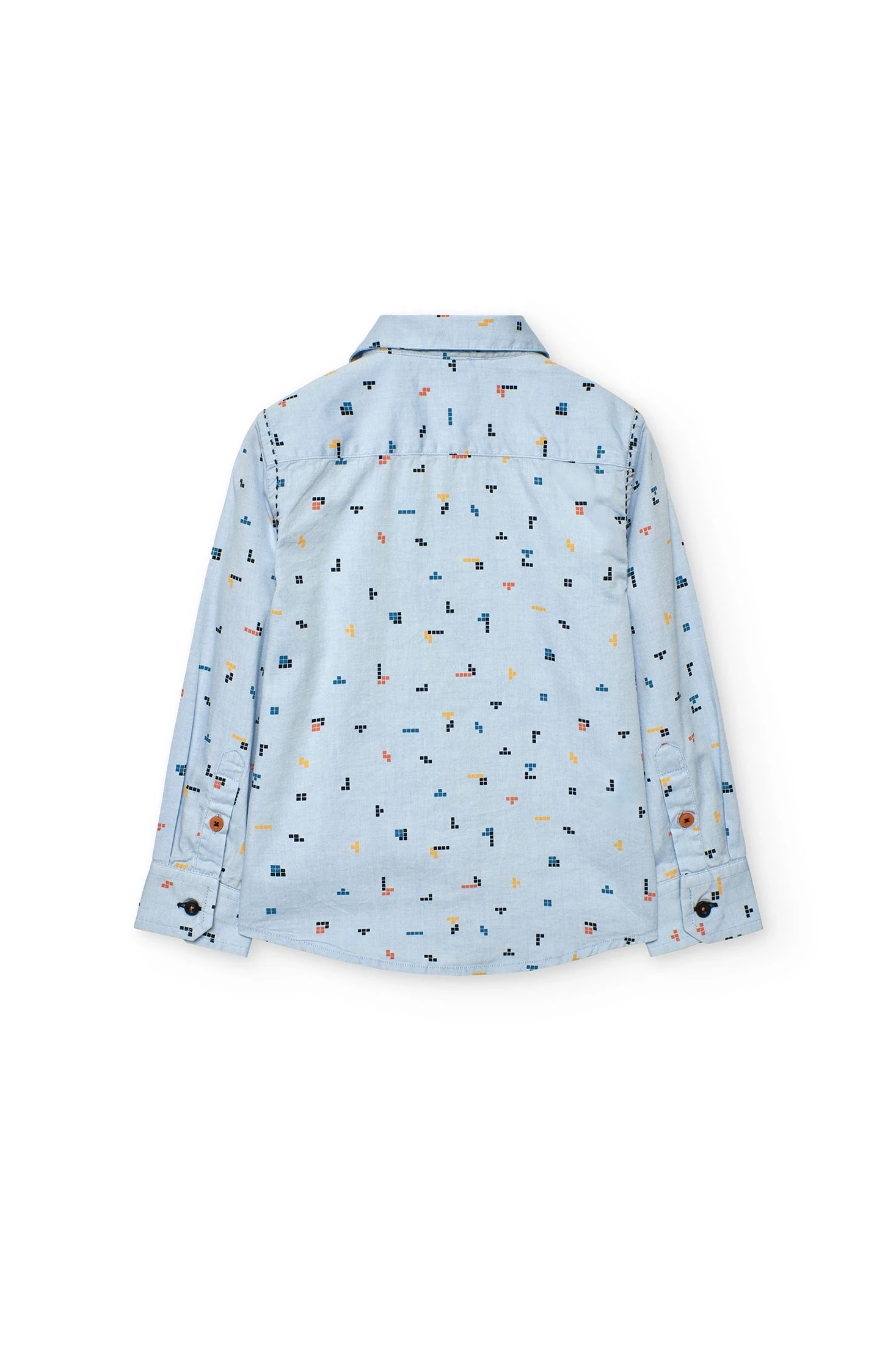 Camicia oxford per bambino con una elegante stampa geometrica in tonalità di blu su uno sfondo azzurro chiaro. Realizzata in un tessuto morbido e confortevole, è perfetta per occasioni sia informali che formali. Il suo design classico con colletto camicia offre grande versatilità in qualsiasi stagione dell'anno. Disponibile in taglie da 2 a 14 anni, questa camicia accompagna la crescita di vostro figlio, abbinandosi facilmente a pantaloni o bermuda per un look raffinato.