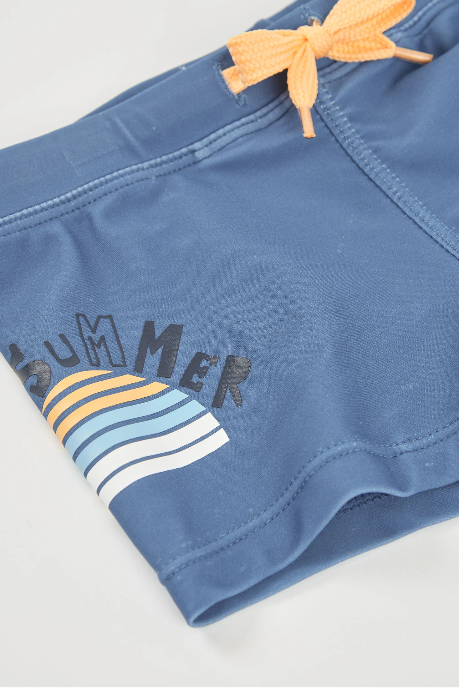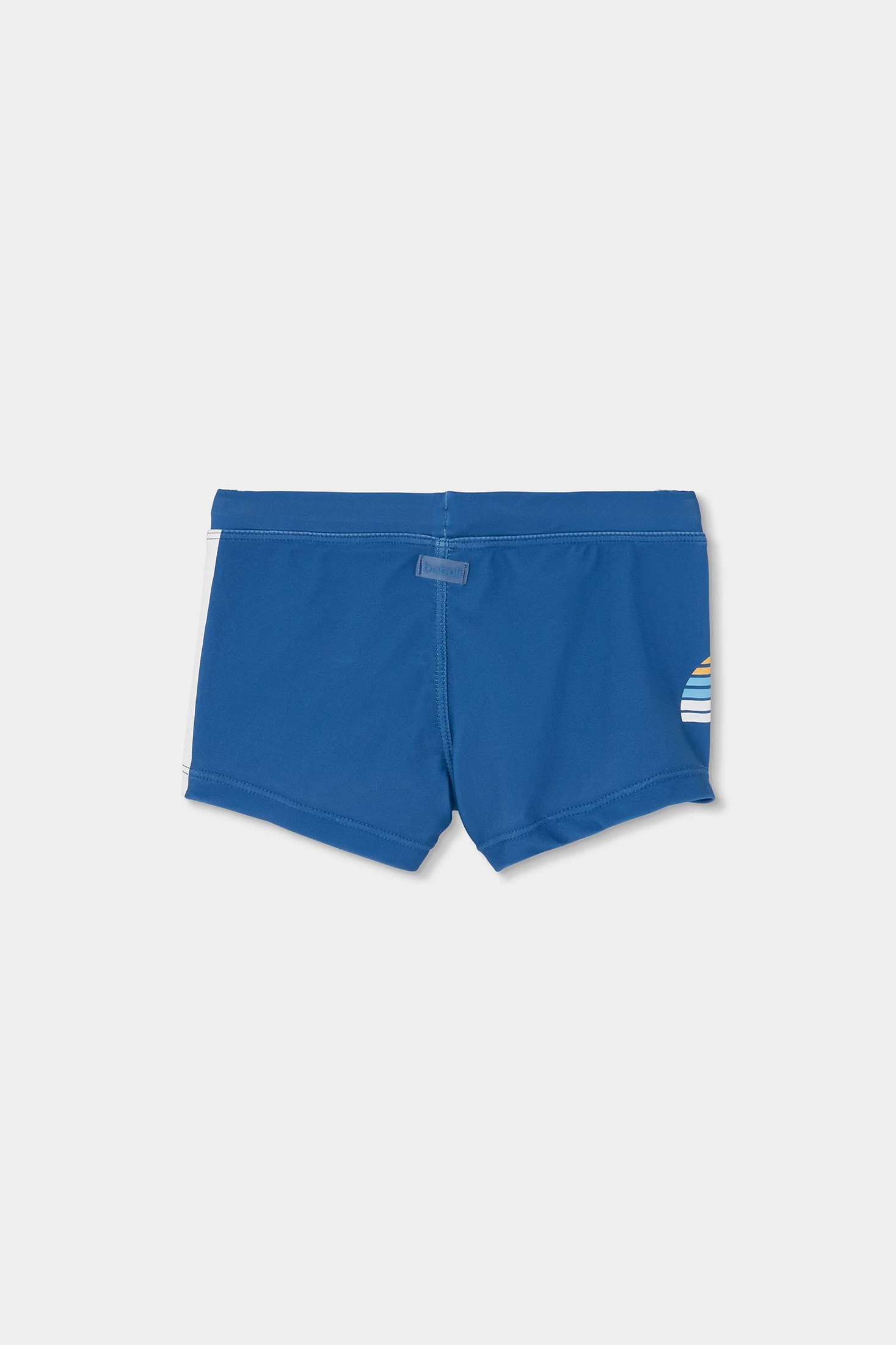 Boxer da bagno per bambino, ideale per divertirsi in piscina o al mare. Di colore blu con due stampe da surf e righe multicolori che aggiungono un tocco estivo e divertente. Vita regolabile con cordoncino. Disponibile nelle taglie da 12 mesi a 10 anni. Il suo stile moderno e pratico lo rende una scelta eccellente per far godere ai più piccoli l’acqua con stile. Capo con protezione solare UPF50.