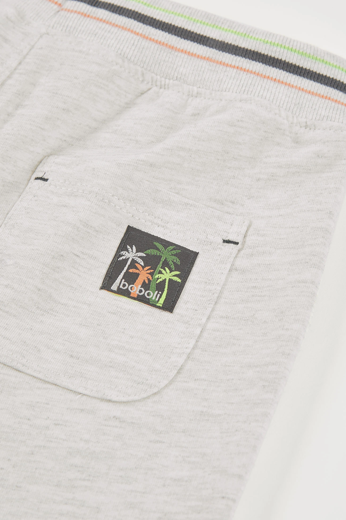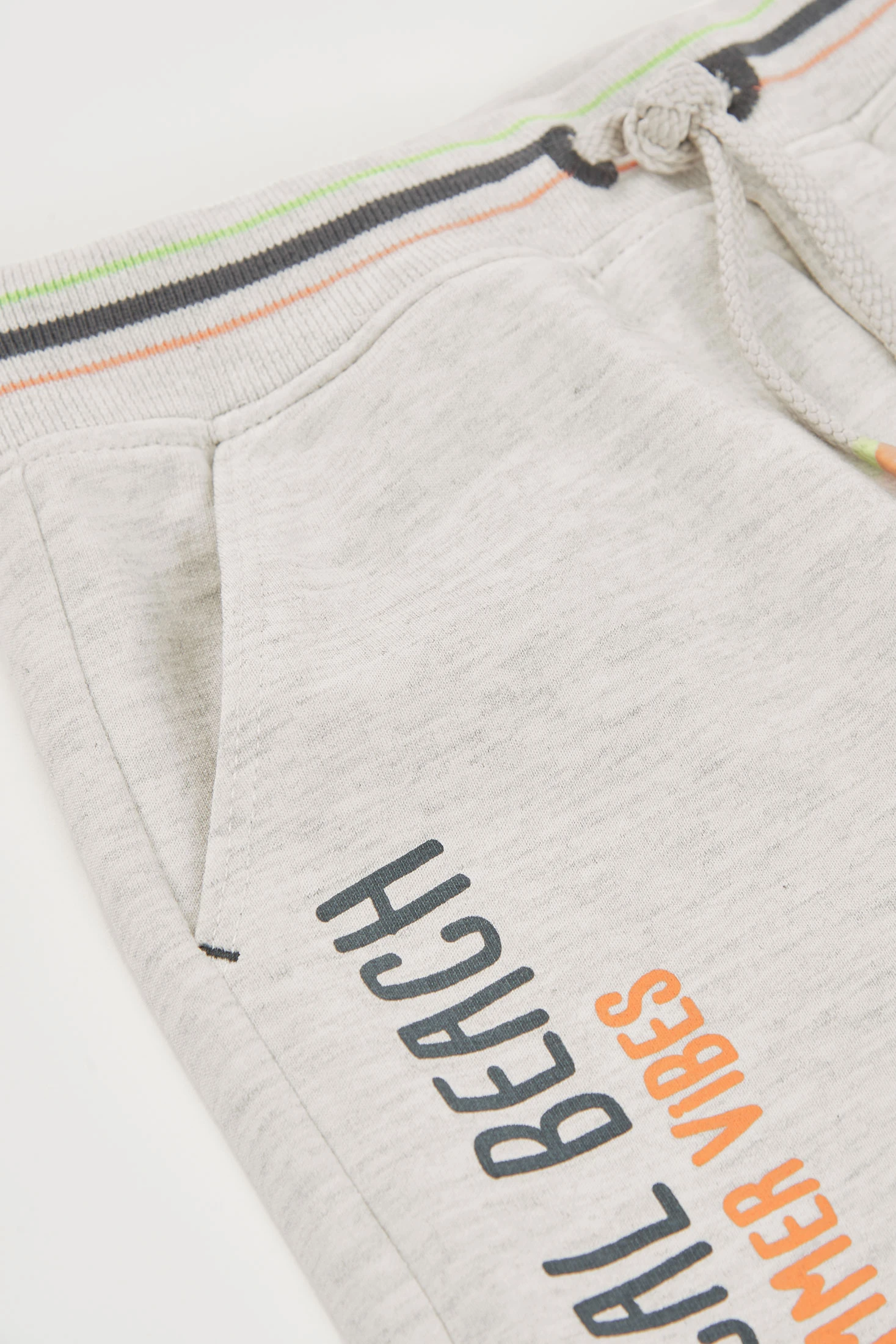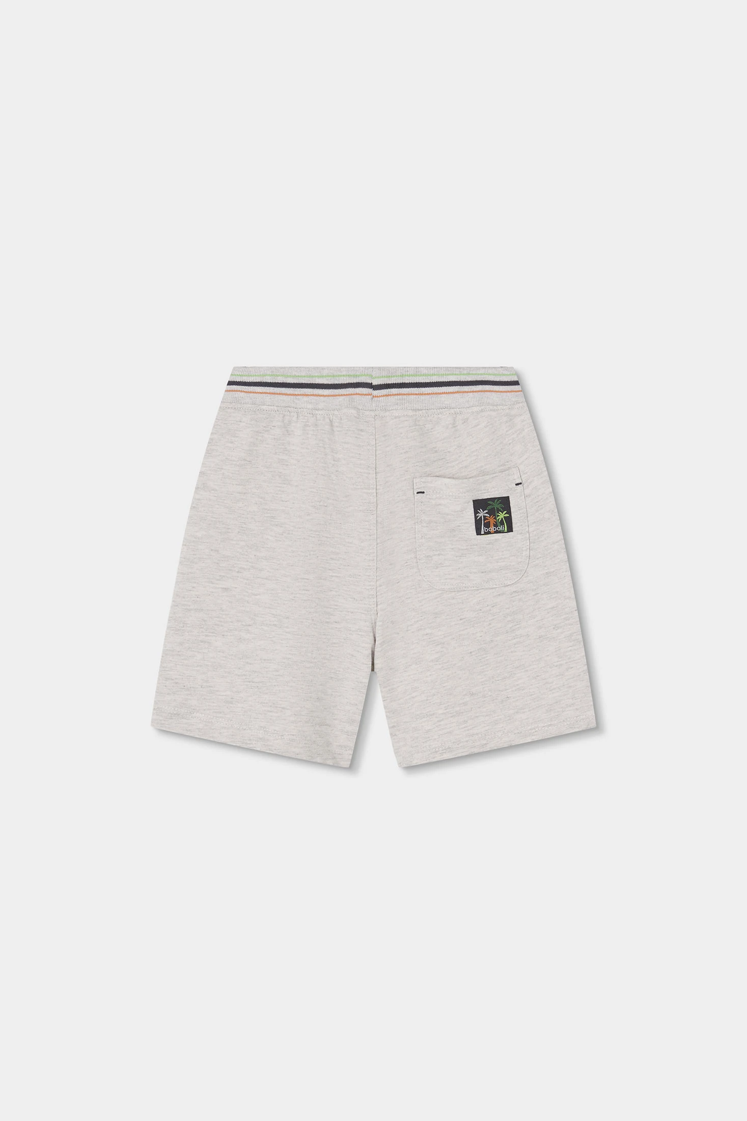 Bermuda in spugna grezza vigoré, offrono comfort e uno stile fresco. Il loro design presenta palme e lettere che evocano un'atmosfera tropicale. Realizzati in morbida spugna, sono perfetti per i giorni caldi. La vita elastica con cordino regolabile garantisce una vestibilità comoda. Disponibili in taglie da 12 mesi a 10 anni. Il colore grezzo le rende facili da abbinare a magliette casual e felpe leggere, creando un look rilassato per l'estate.