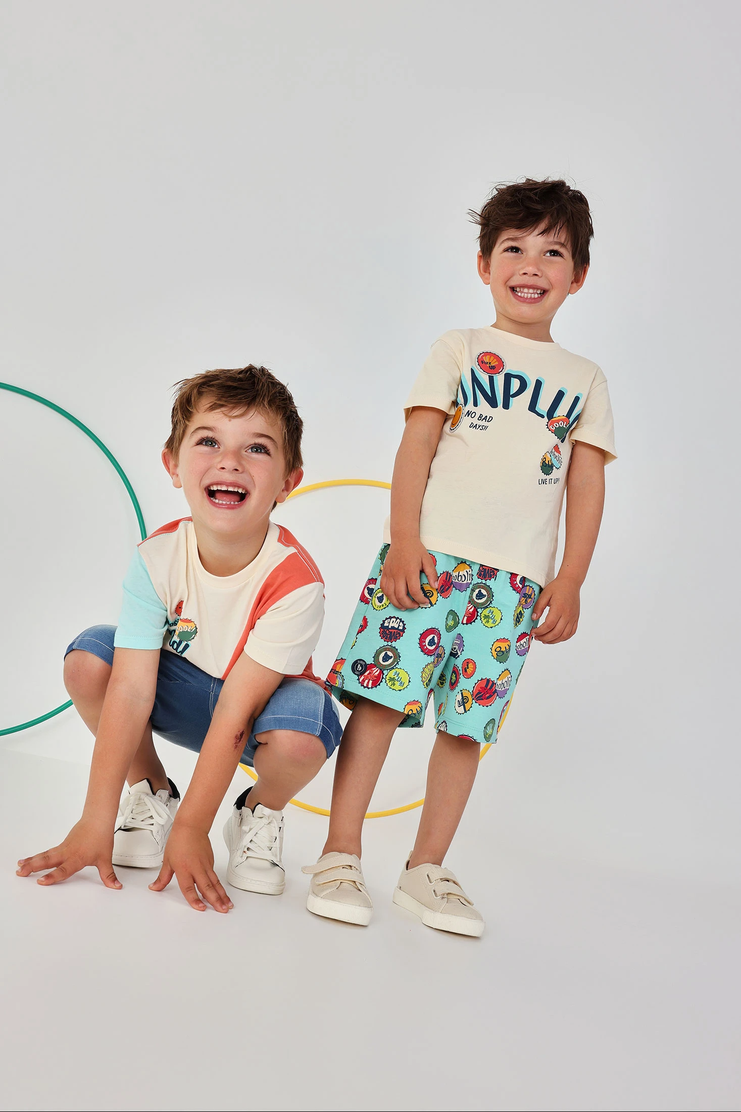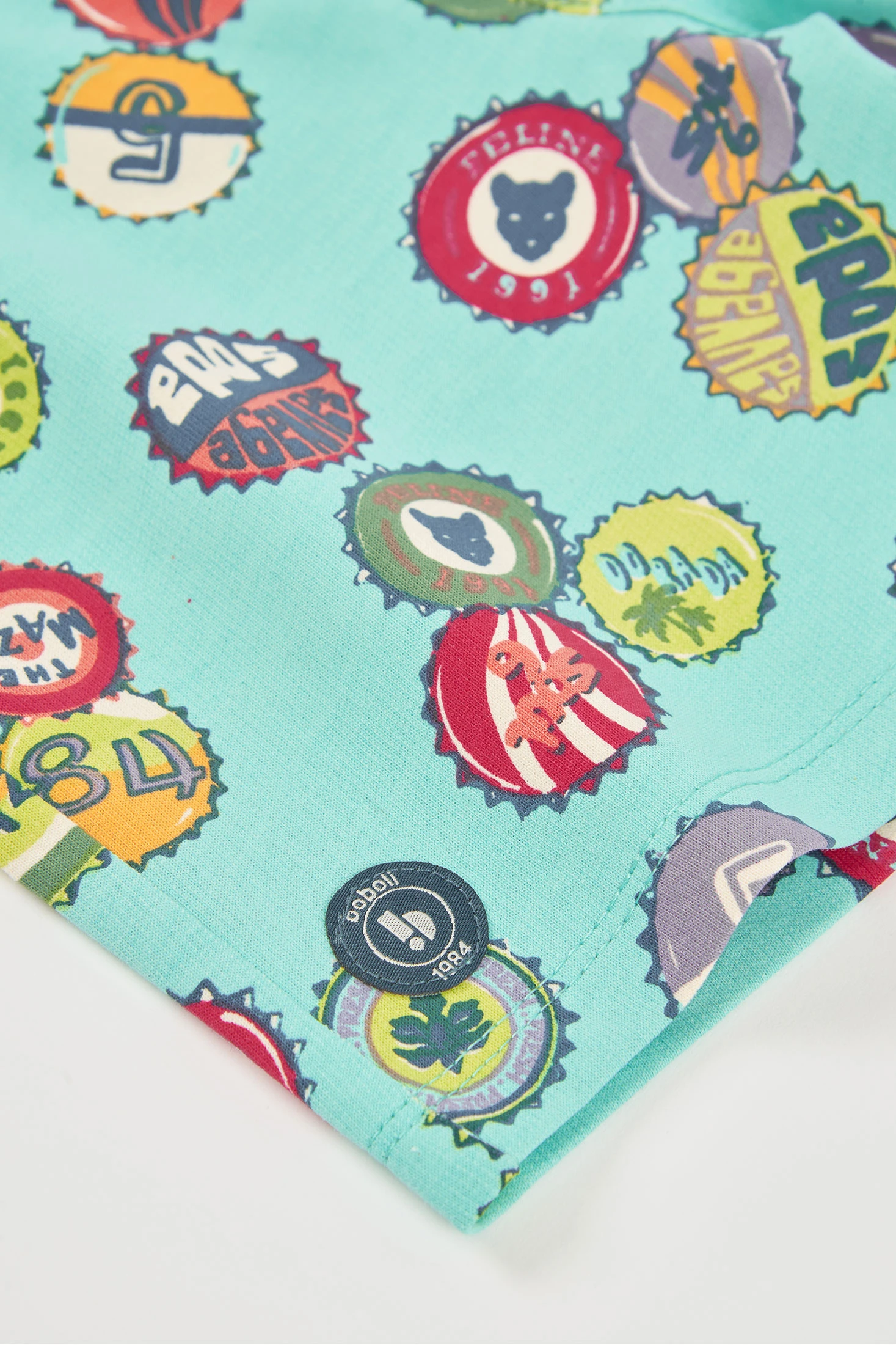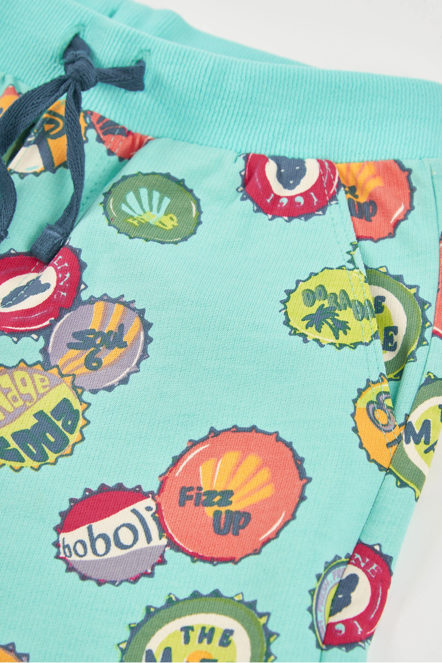 Bermuda in pelfa stampata, ideale per i più piccoli. Perfette per bambini dai 12 mesi fino ai 10 anni, offrono comfort e stile. Presentano un colore blu turchese vibrante con una divertente stampa di badge multicolori. Il tessuto in pelfa offre morbidezza e calore, ideale per i giorni di gioco. Vita elastica con cordoncino regolabile garantisce una vestibilità perfetta e facile da indossare. Un'opzione versatile da abbinare a magliette basiche, offrendo un look fresco e moderno.