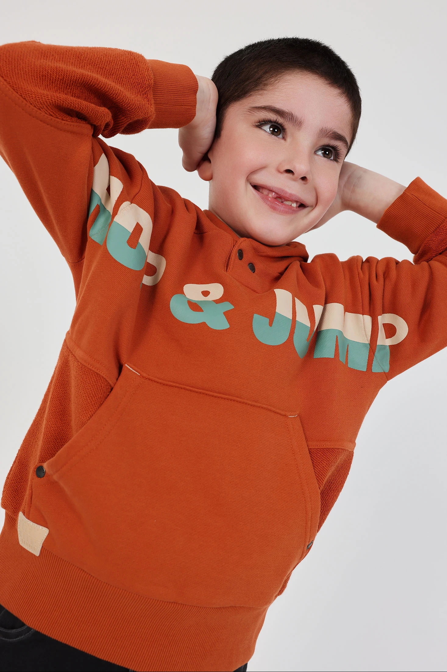 Felpa di pile per bambino ideale per i giorni più freschi. Il suo colore caldo caldaia è perfetto da abbinare a jeans o pantaloni casual. Realizzata in un materiale morbido che offre comfort, è dotata di un cappuccio che protegge dal freddo e un design con lettere sul davanti che dona uno stile moderno. Disponibile in taglie da 12 mesi a 10 anni, adattandosi alla crescita del bambino. La sua tasca frontale aggiunge funzionalità, rendendola un capo pratico e versatile per tutti i giorni.