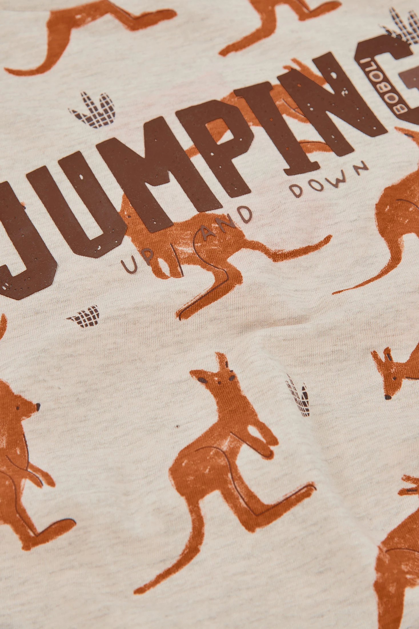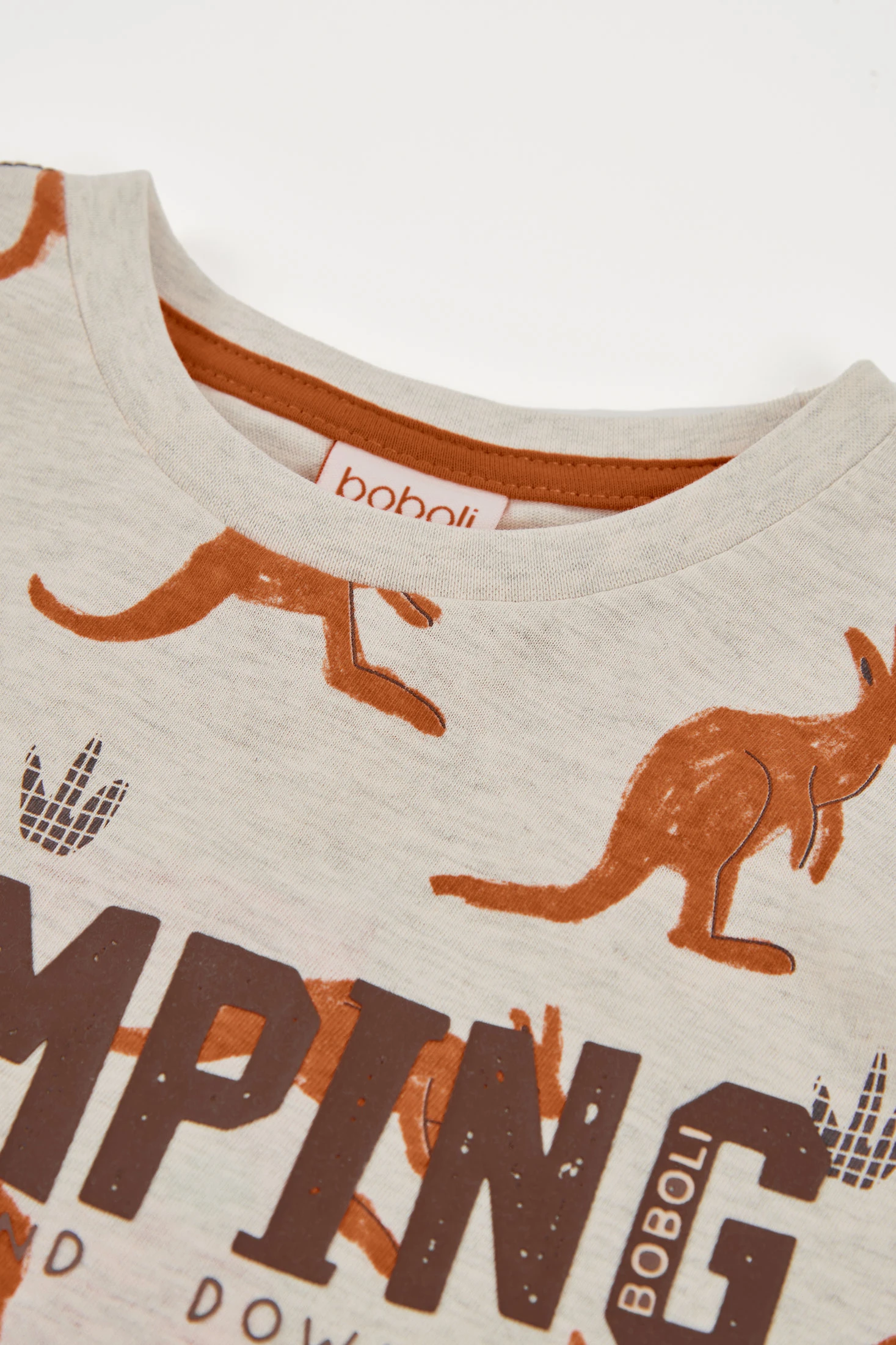 T-shirt di cotone stampato per bambino, ideale da indossare durante tutta l'estate. Il suo design presenta una stampa divertente di canguri e impronte, e un grande testo che aggiunge stile. Il colore di base crema offre un aspetto moderno e casual. Disponibile in taglie dai 12 mesi ai 10 anni, si adatta alla crescita del bambino. Il tessuto di cotone assicura comfort e morbidezza, perfetto per l'uso quotidiano. Abbinala con jeans o pantaloncini per un look fresco e funzionale in qualsiasi occasione.