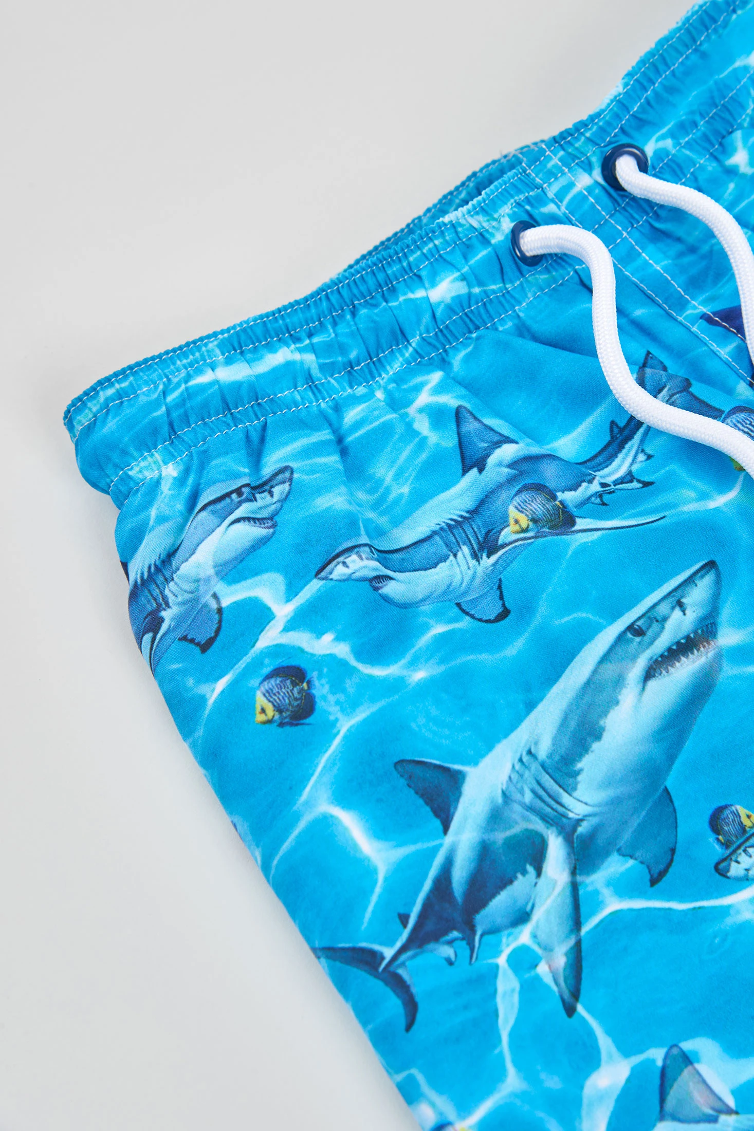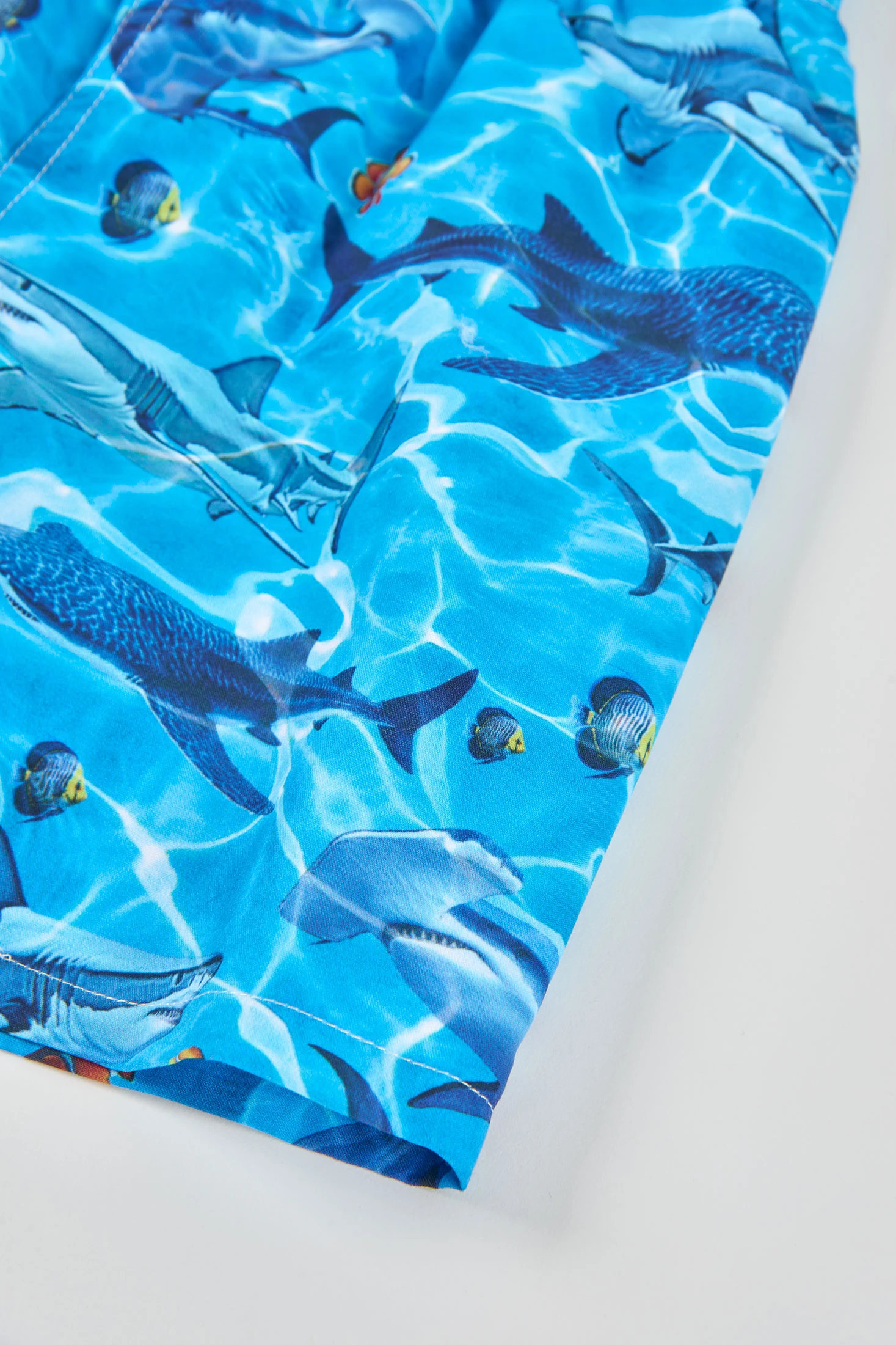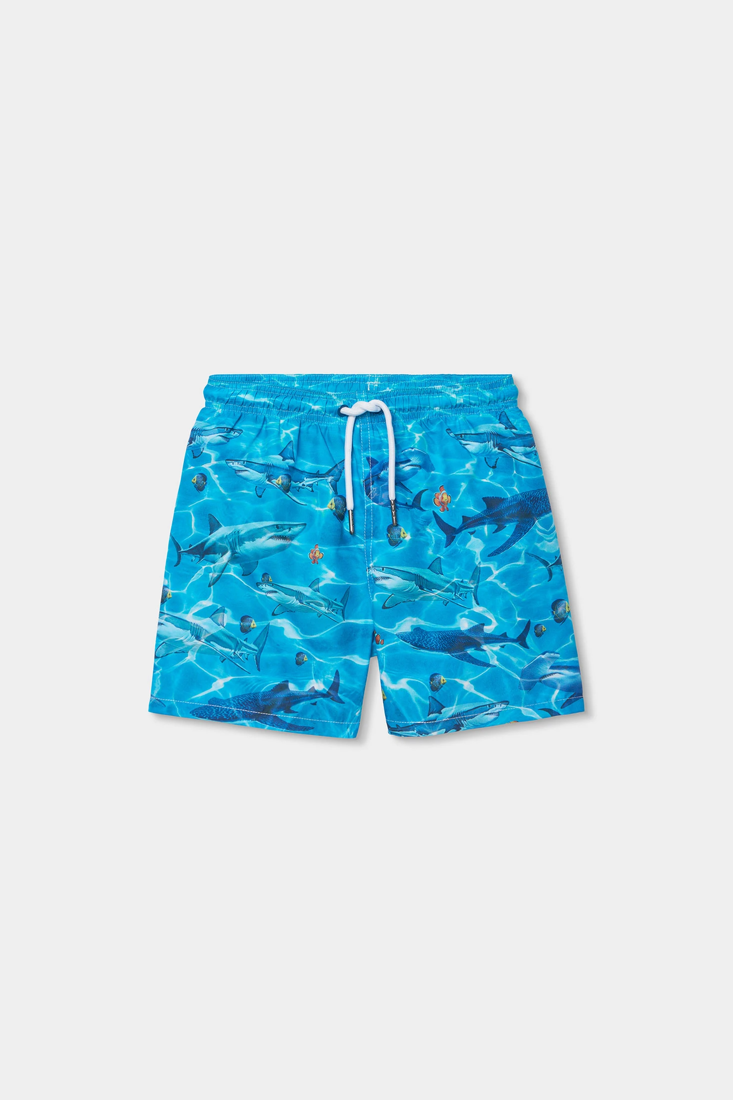 Costume da bagno in tessuto riciclato blu ideale per bambini, con taglie da 2 a 14 anni. Il suo materiale riciclato è rispettoso dell'ambiente e comodo da indossare. Il design presenta una stampa di animali marini, come gli squali, che dona un tocco divertente ed estivo. Perfetto per i giorni in spiaggia o in piscina, questo costume da bagno combina funzionalità e stile per i più piccoli, garantendo un'esperienza confortevole e libera durante le loro avventure acquatiche.