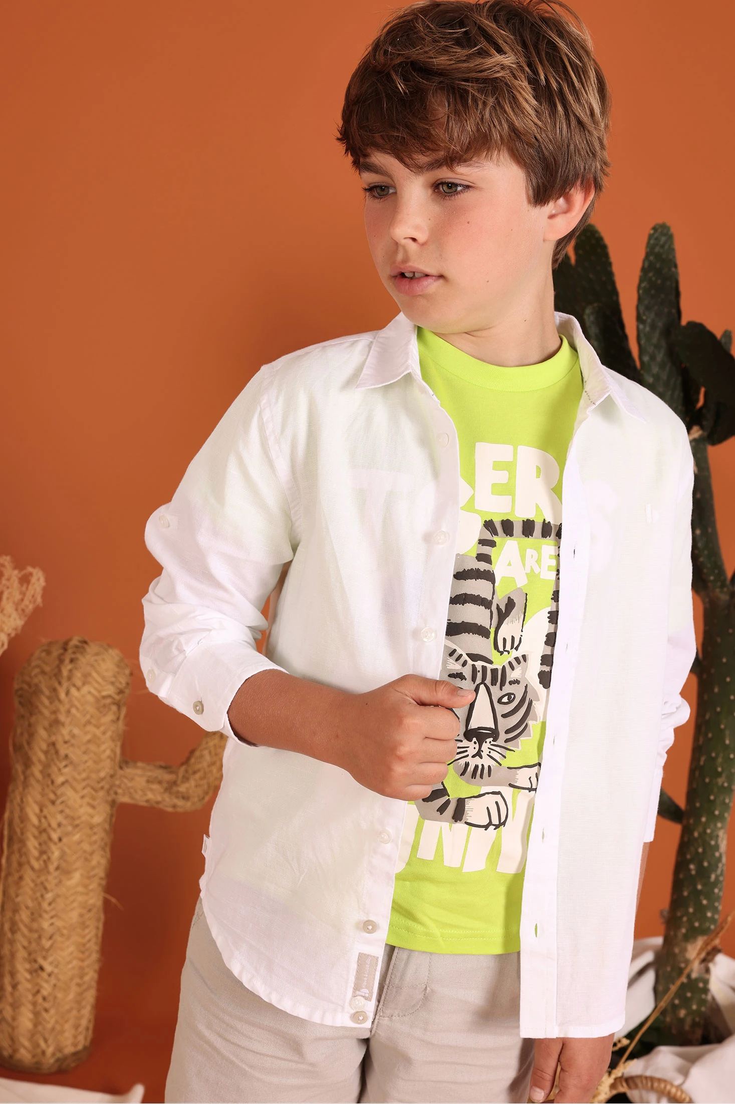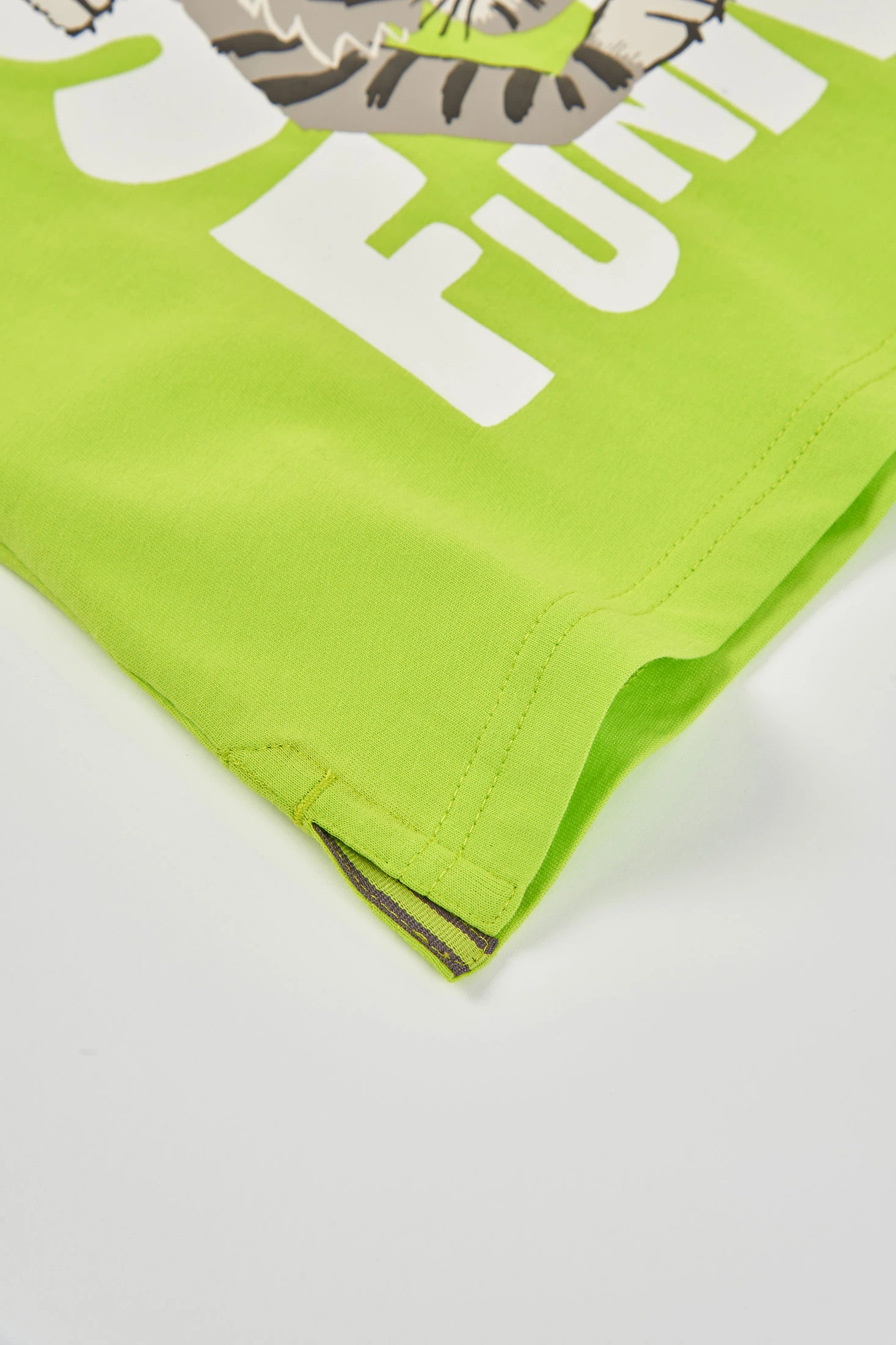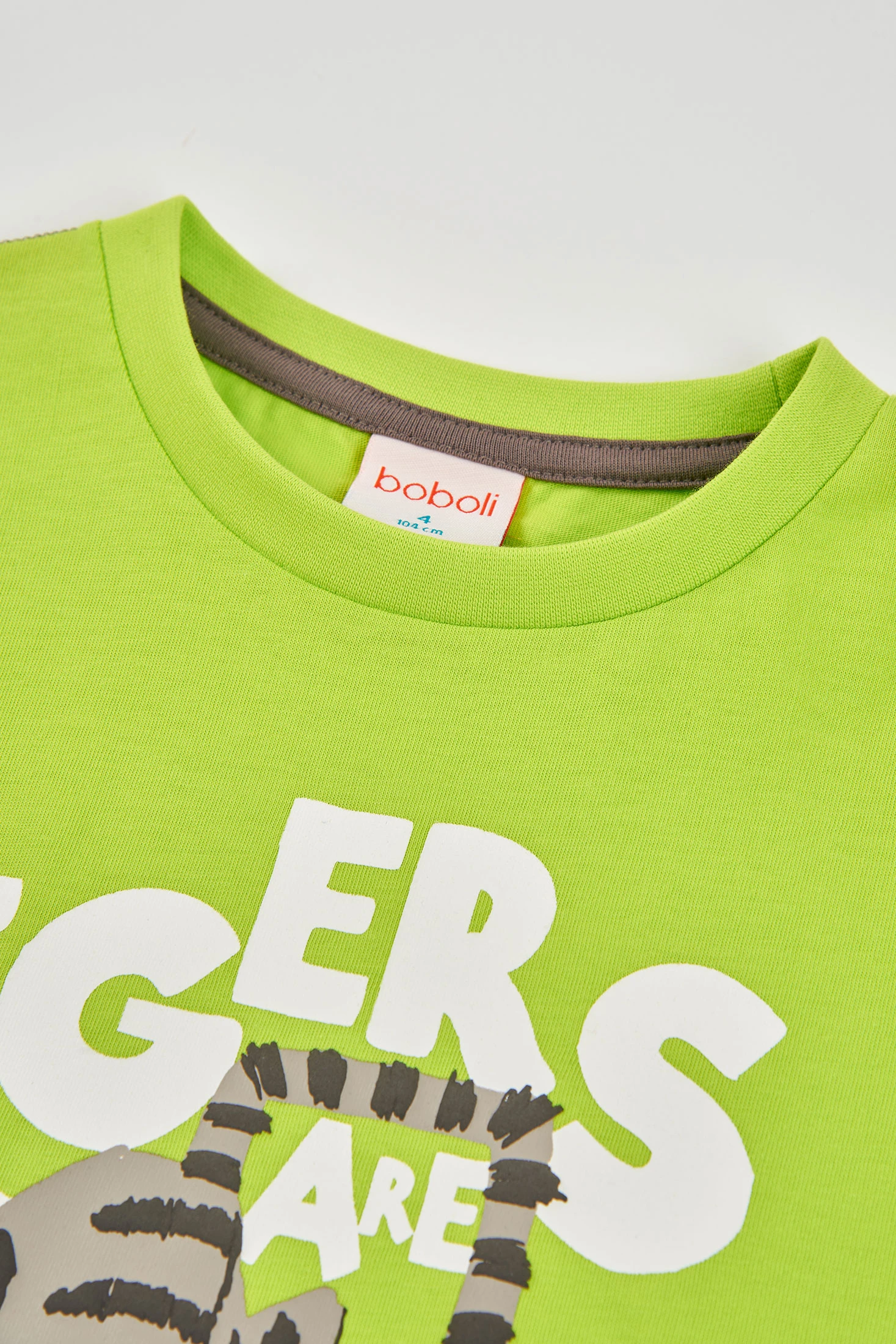 Maglietta di cotone per bambino, ideale per la stagione, si distingue per il suo colore verde vibrante e una stampa divertente di una tigre che aggiunge un tocco di umorismo e stile. Realizzata in tessuto morbido, offre comfort durante tutto il giorno. Presenta un collo rotondo e maniche corte. Disponibile in taglie da 2 a 14 anni, si adatta alla crescita dei bambini. Perfetta da abbinare con jeans o pantaloncini, è un'opzione versatile e moderna per l'uso quotidiano.