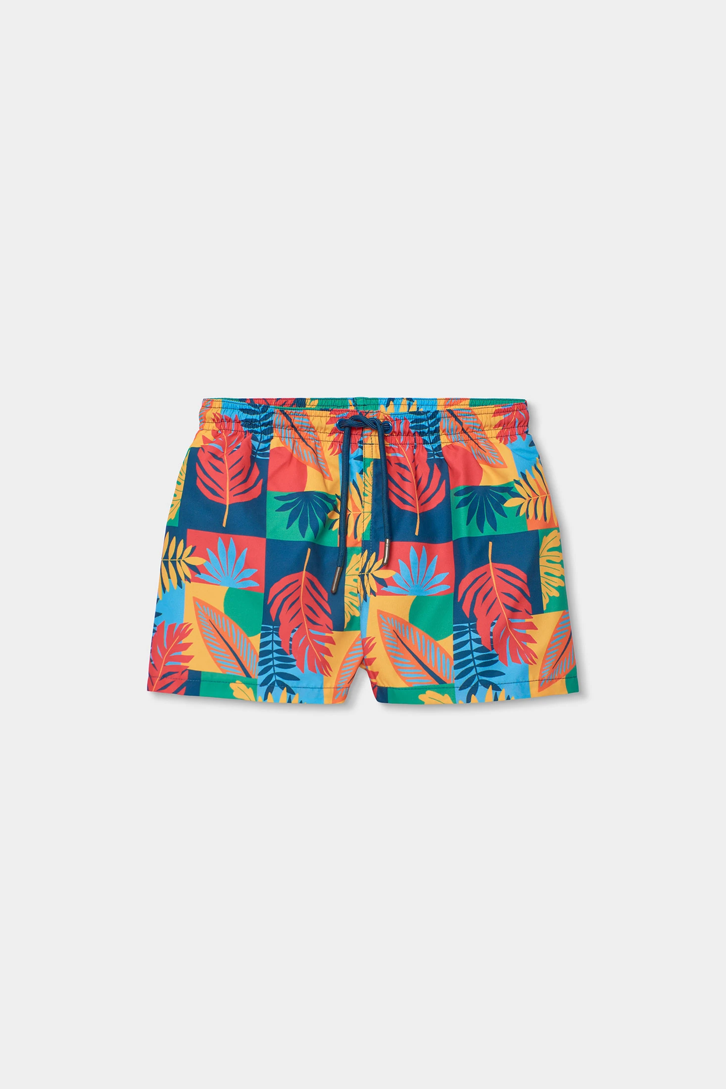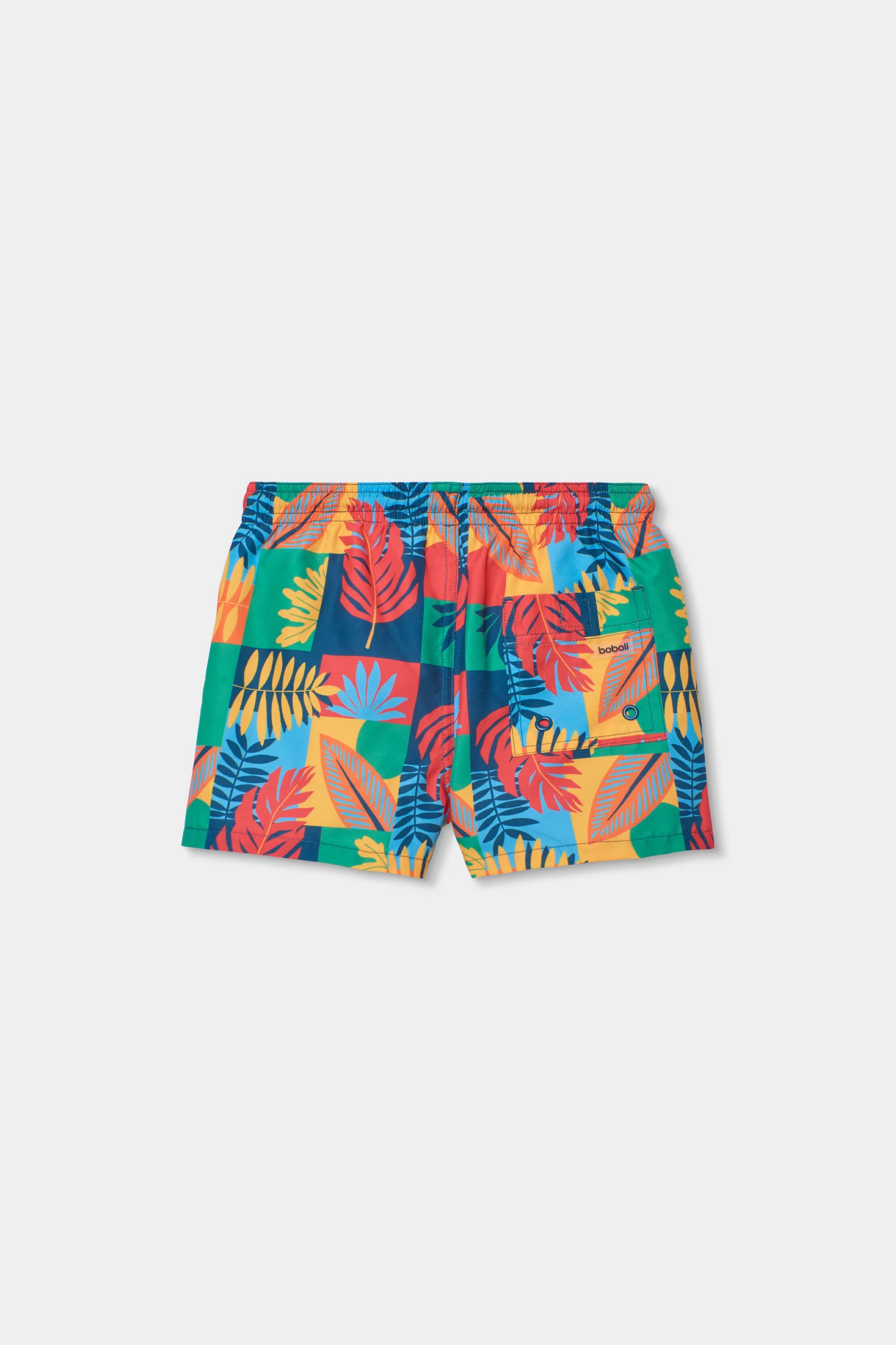 Costume da bagno in tessuto riciclato di colore arancione, ideale per i più piccoli. Presenta un design vivace con foglie colorate e dettagli accattivanti. Il suo materiale offre comfort e asciugatura rapida, perfetto per le attività acquatiche. Disponibile in taglie dai 2 ai 14 anni, si adatta alla crescita dei bambini. La sua vita elastica garantisce una vestibilità sicura e confortevole, permettendo libertà di movimento. Con questo costume da bagno, tuo figlio potrà godersi l'acqua con stile e sostenibilità.