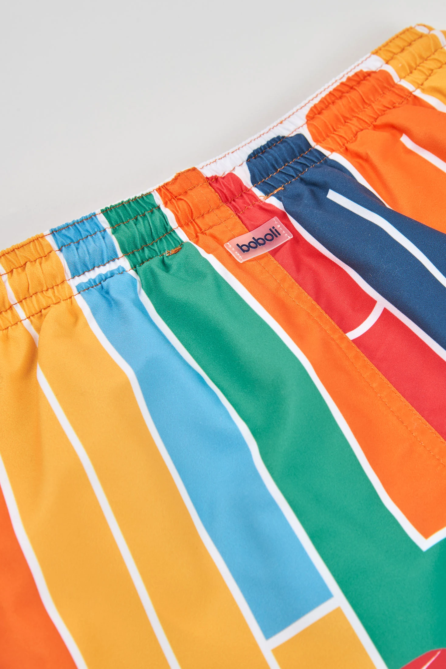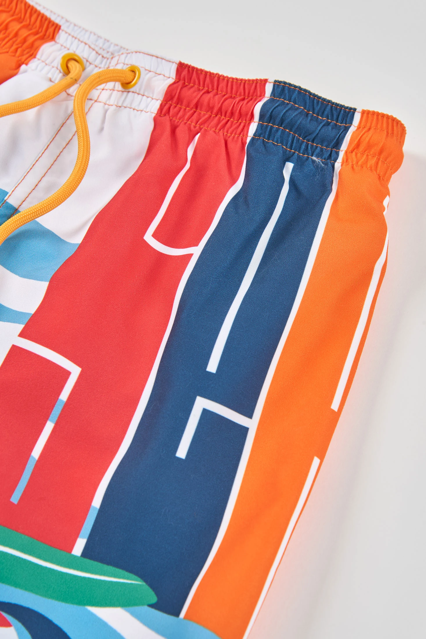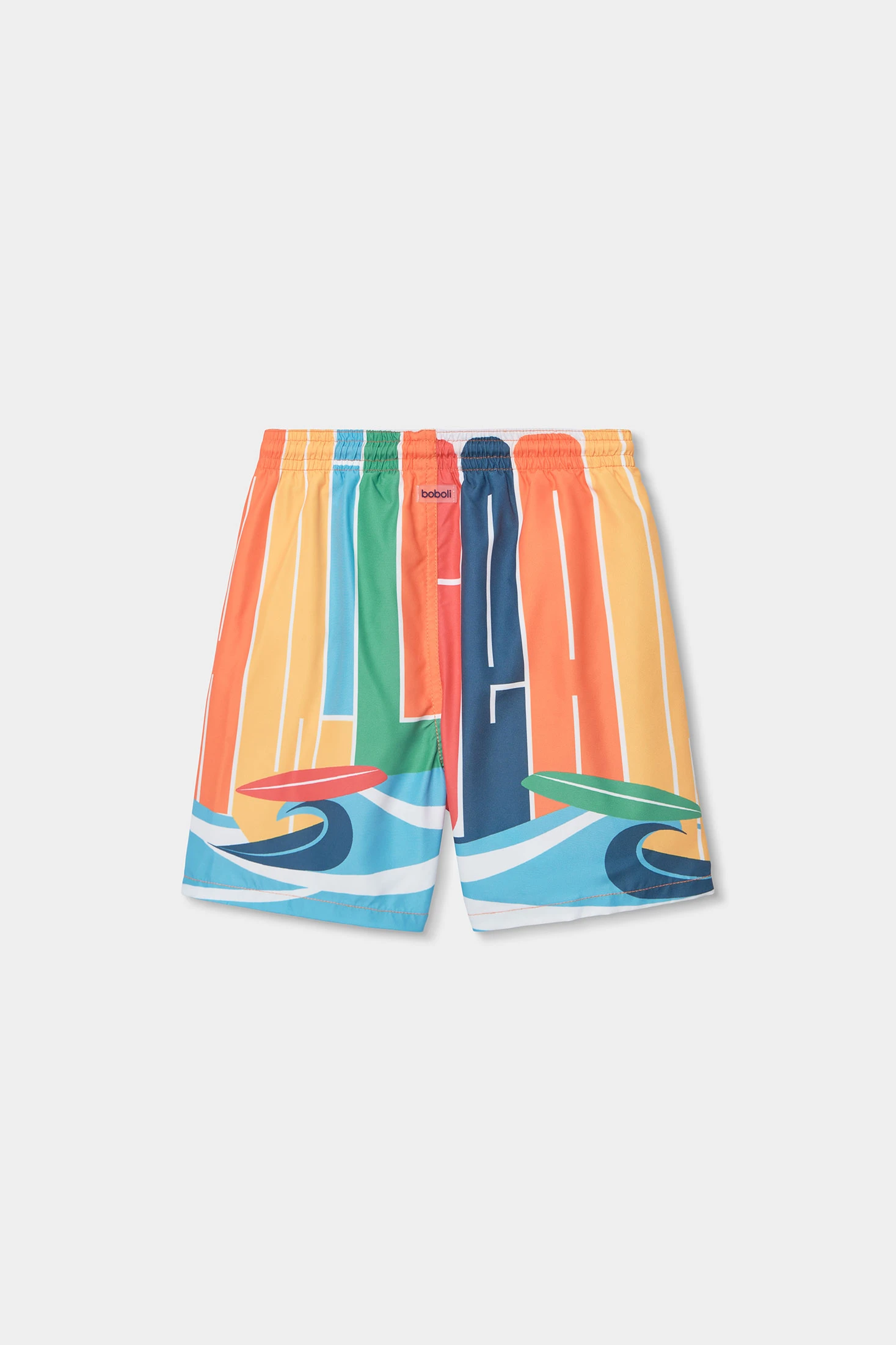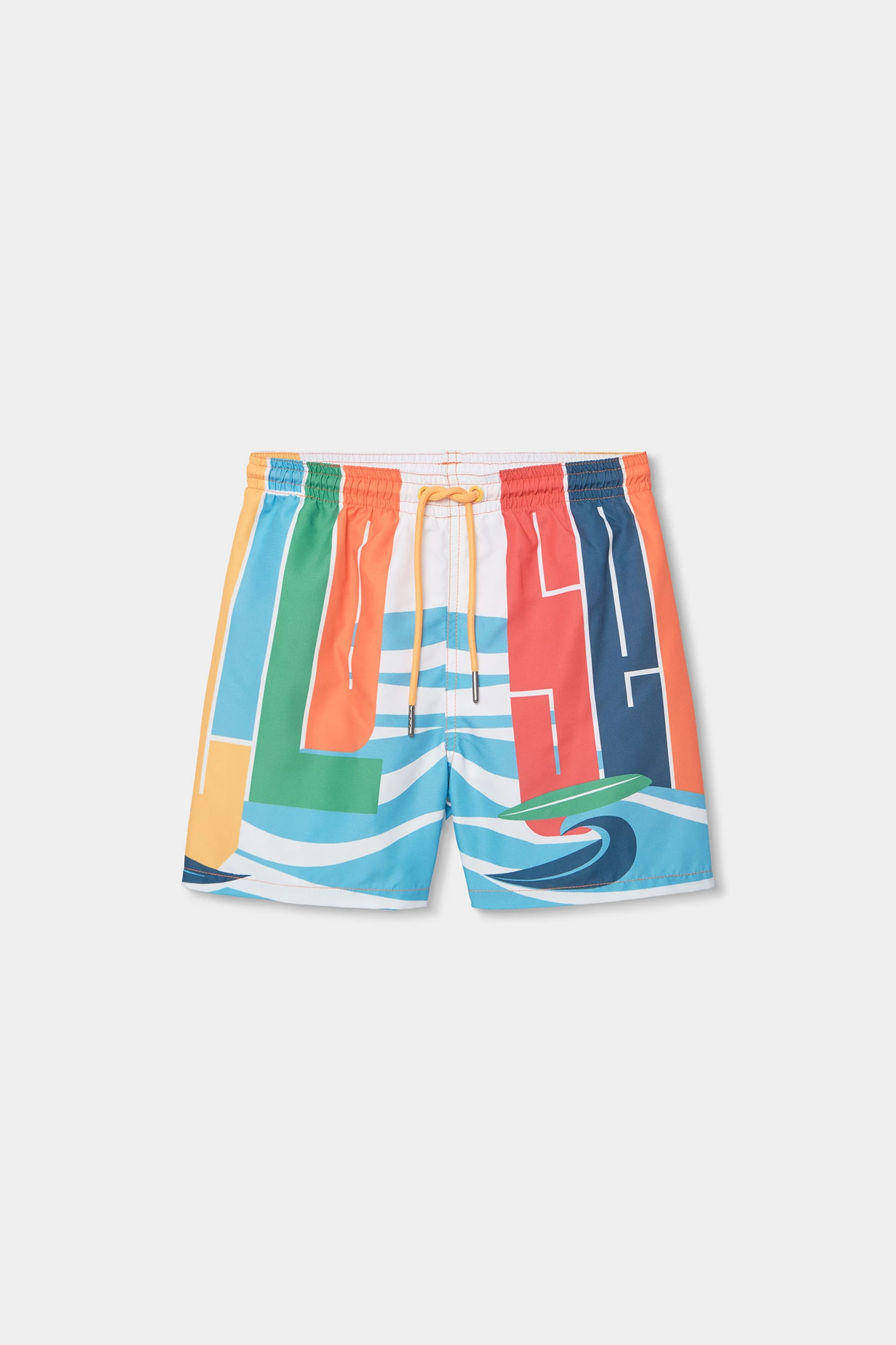 Costume da bagno per bambino realizzato con tessuto riciclato, ideale per godersi l'acqua. Il suo design di colore arancione presenta una stampa colorata e astratta, che include forme geometriche. È disponibile dai 2 ai 14 anni, adattandosi comodamente a diverse età. Il materiale leggero e ad asciugatura rapida lo rende perfetto per le giornate in spiaggia o in piscina. La sua vita elastica con cordino regolabile assicura una vestibilità eccellente, offrendo funzionalità e comfort durante l'uso. Un'opzione divertente e pratica per l'estate.