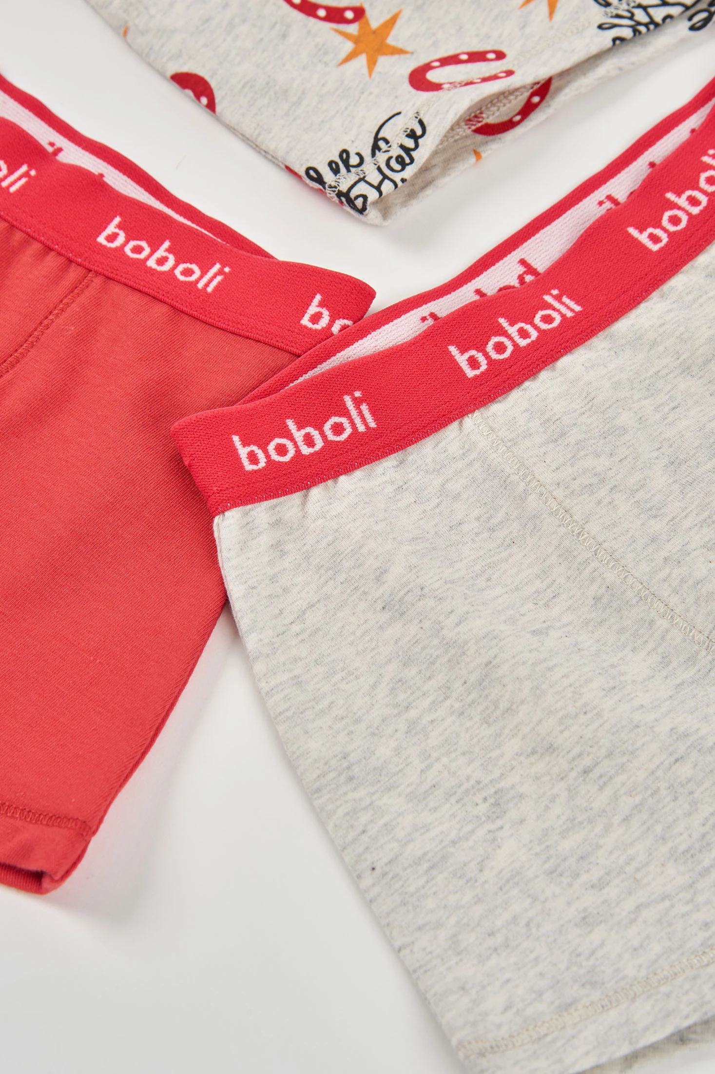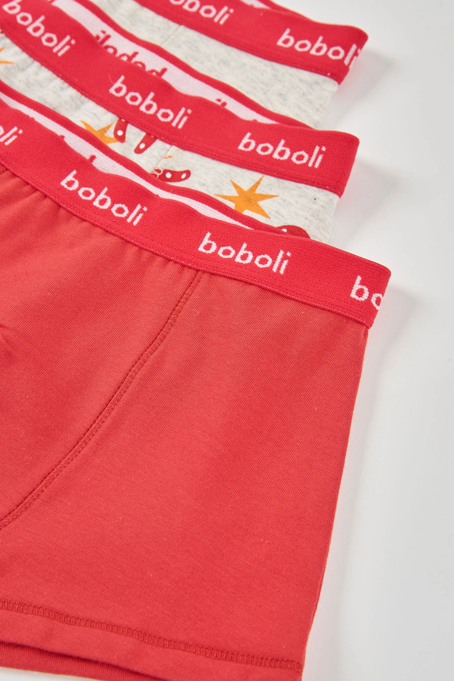 Confezione di 3 boxer in cotone per bambino, ideale per l'uso quotidiano, offre comfort e morbidezza al tatto. Include un design stampato con elementi variati, insieme a opzioni in tinta unita in rosso e grigio. La vita elastica assicura una vestibilità perfetta e confortevole. Disponibile in taglie da 2 a 14 anni, questo set è versatile e pratico. La combinazione di colori vivaci e neutri consente abbinamenti facili con diversi stili di abbigliamento. Perfetto per offrire comfort e stile in ogni occasione.