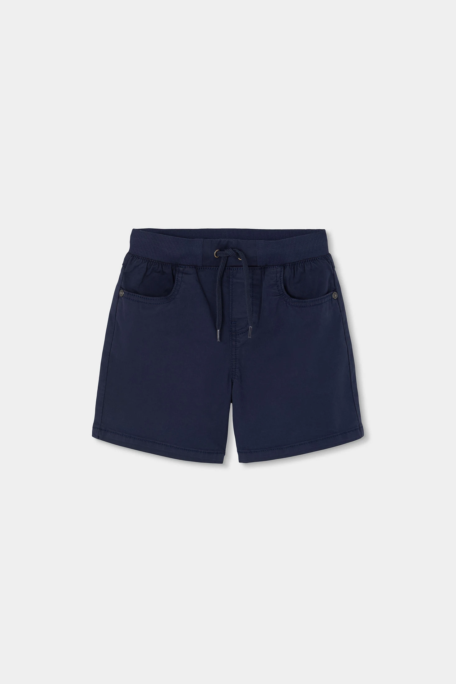 Bermuda in gabardine elastico di colore blu marino, ideali per i più piccoli, combinano comfort e stile. Il loro tessuto morbido è perfetto per l'estate, mentre il design semplice garantisce versatilità. Presentano una vita elastica con cordoncino regolabile per una tenuta sicura. Senza stampe, il loro colore solido permette di abbinarle facilmente con magliette e polo. Disponibili in taglie da 12 mesi a 14 anni, sono una scelta pratica per ogni occasione casual.