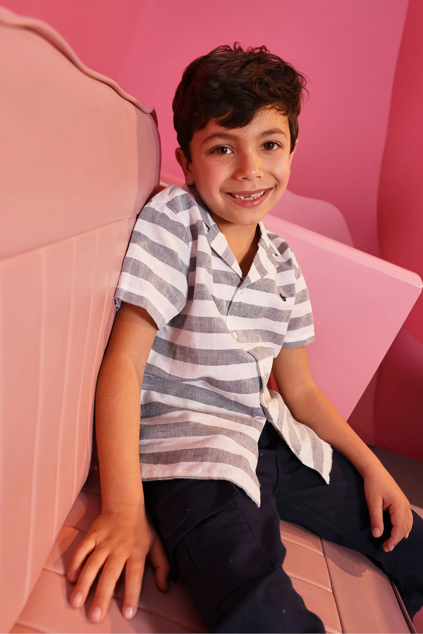 Camicia di lino per bambino ideale per la stagione estiva. Con un design a righe blu e bianche, offre uno stile fresco ed elegante. Il materiale di lino garantisce traspirabilità e comfort. Disponibile in taglie da 12 mesi a 10 anni. La camicia presenta un colletto classico e maniche corte, perfetta per un look estivo. Può essere abbinata a pantaloncini per uno stile casual o a pantaloni di lino per un'occasione più formale.
