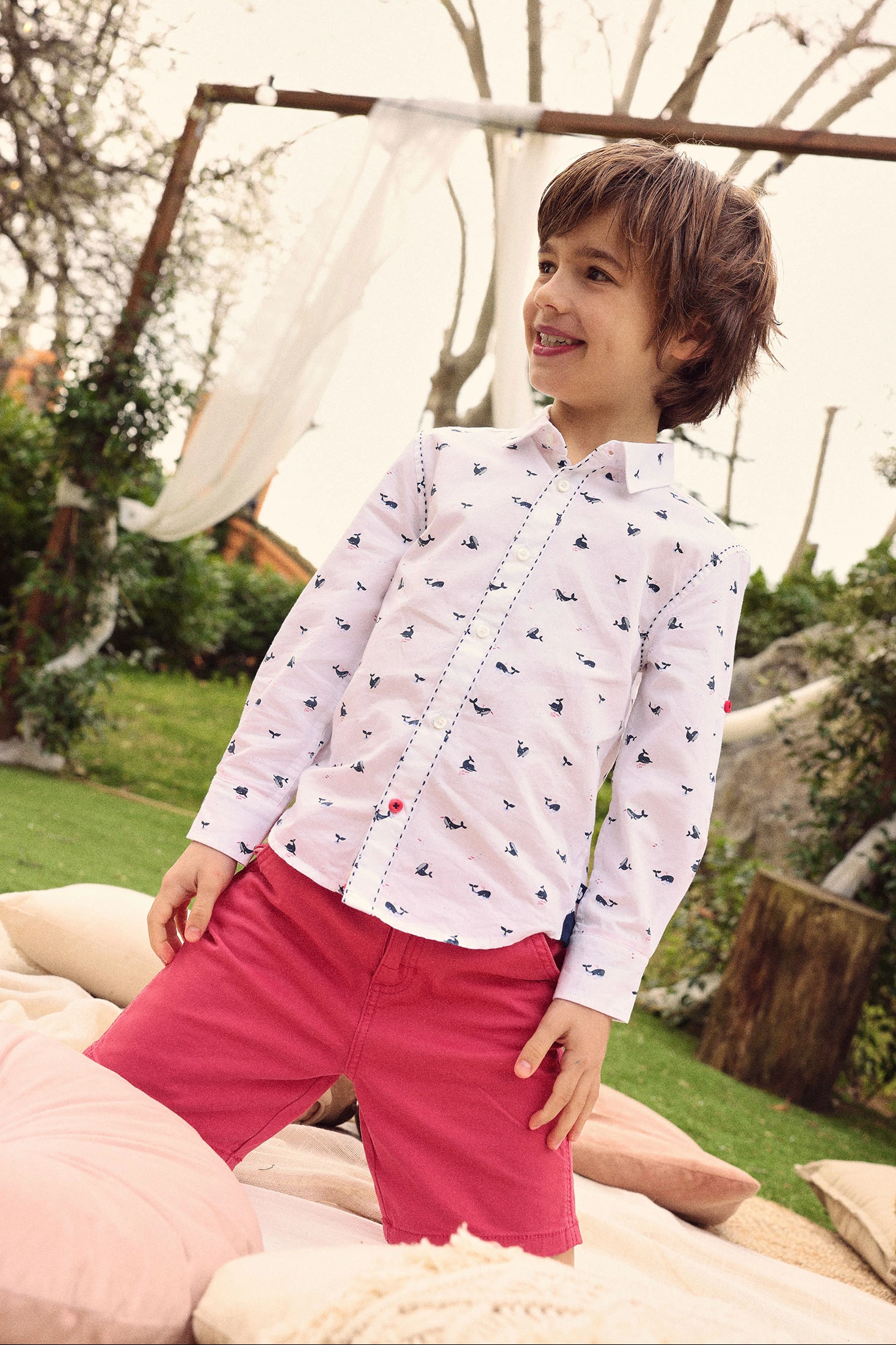 Bermuda in cotone color fragola, ideale per bambini, combina stile e comodità. Il suo design semplice permette versatilità in diverse occasioni. Realizzata in tessuto di cotone, è morbida al tatto e fresca per i giorni caldi. Disponibile in taglie da 12 mesi a 10 anni. La vita regolabile e le tasche anteriori aggiungono funzionalità. Perfetta da abbinare con magliette o bluse leggere, offre un look fresco e moderno.