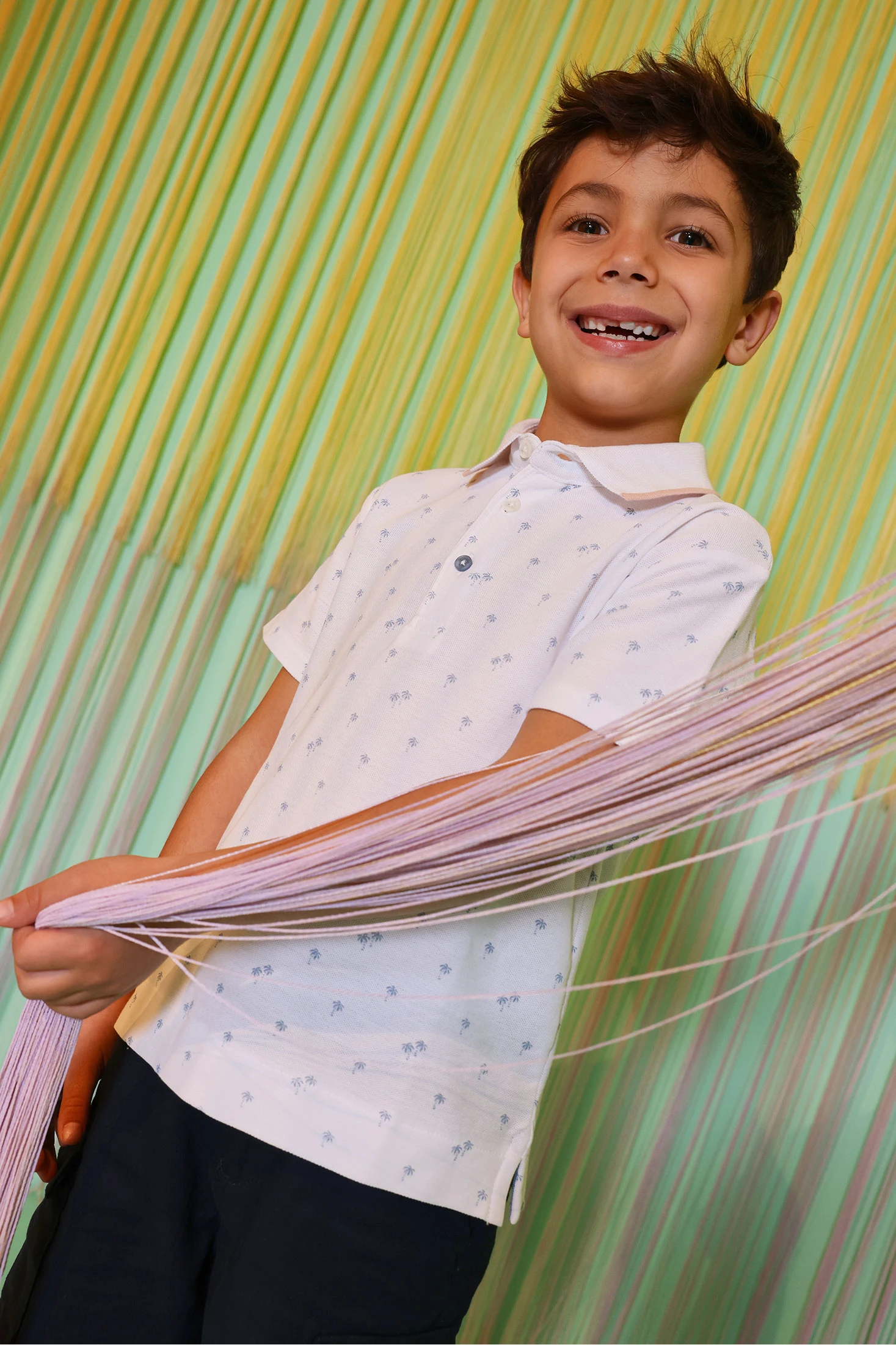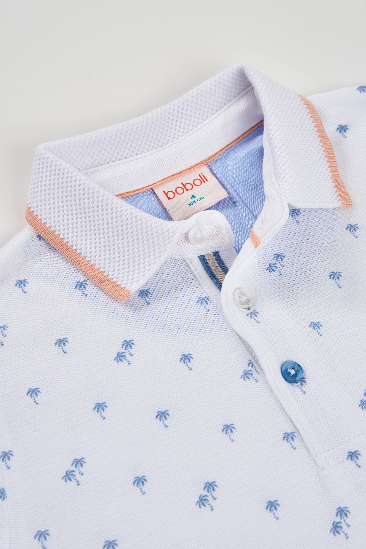 Polo per bambino realizzato in cotone di alta qualità, che garantisce comodità e traspirabilità. Presenta una stampa sottile di piccoli motivi blu, che gli conferisce un'aria fresca e moderna. Di colore bianco, il design include un collo classico con un tocco di colore a contrasto sul bordo, apportando un tocco distintivo. Disponibile in taglie da 12 mesi a 10 anni, è perfetto per occasioni casual o semi-formali. Abbinalo con pantaloncini o jeans per un look estivo e stiloso.