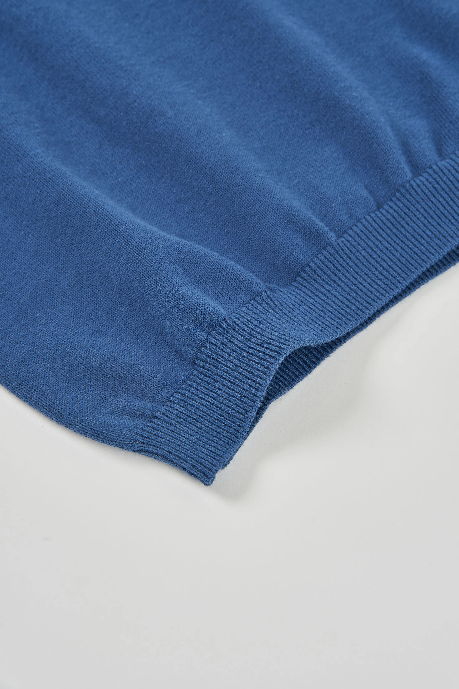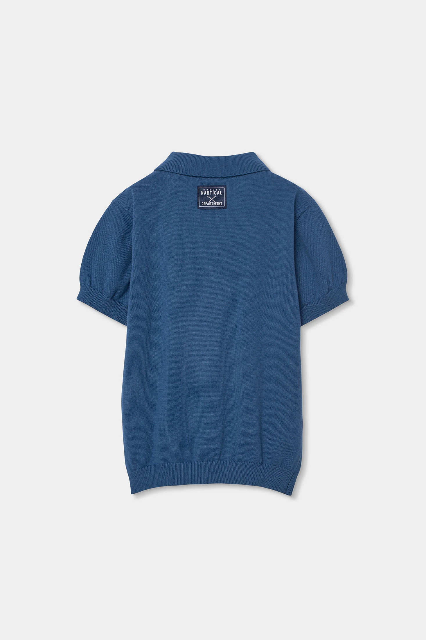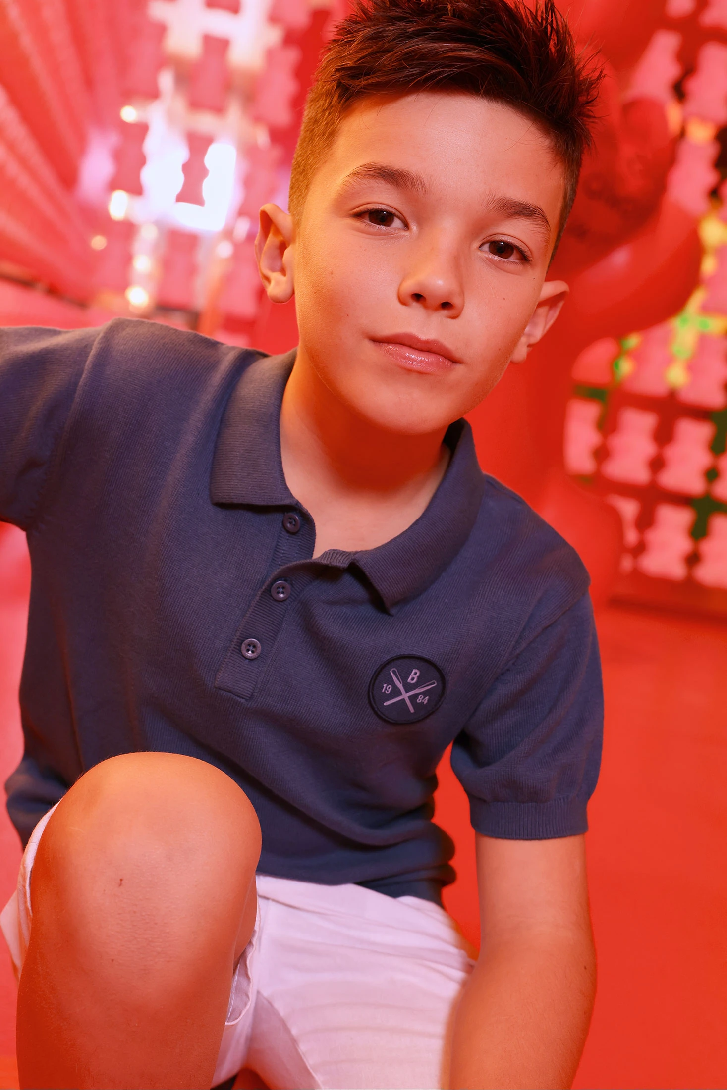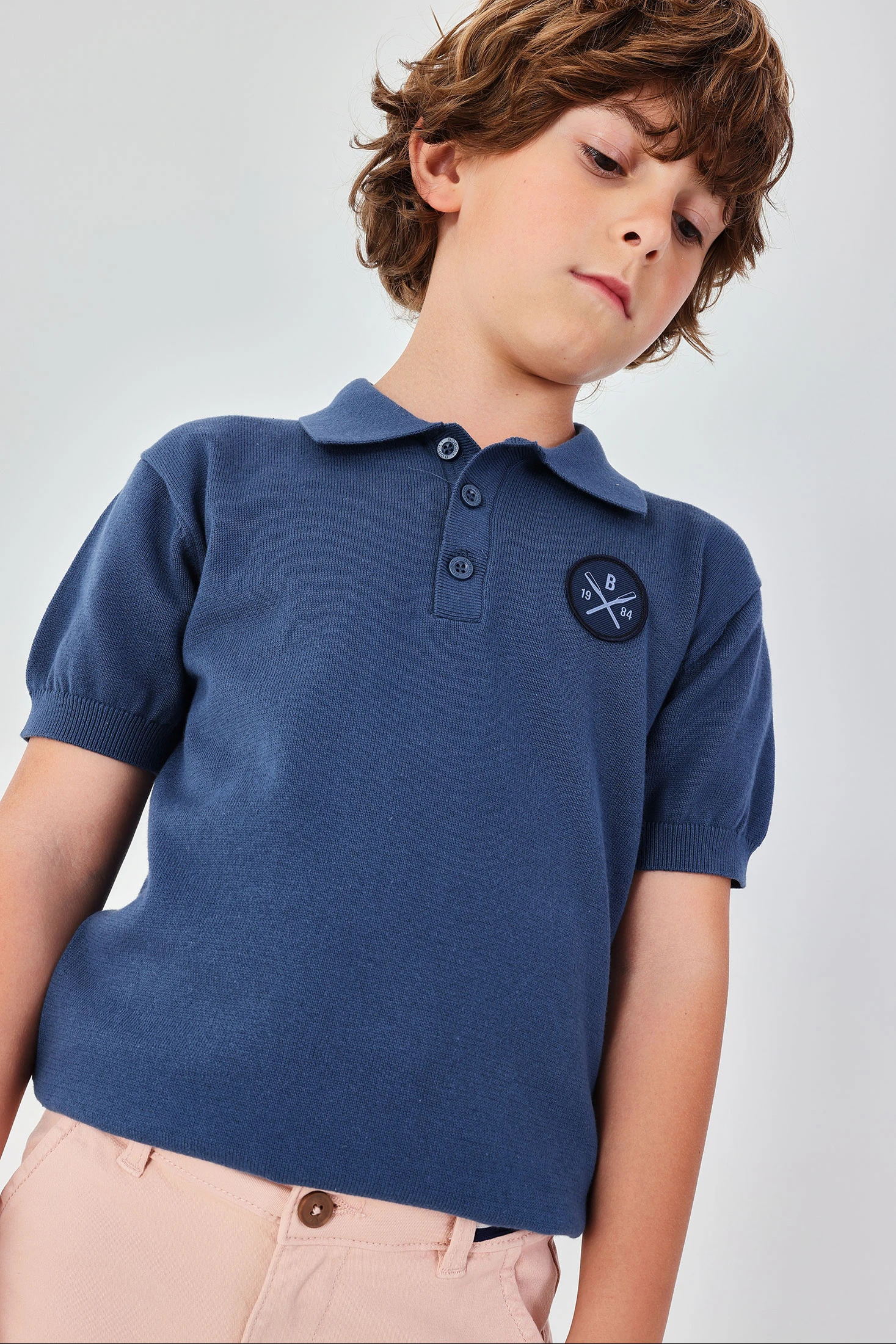 Polo in maglia blu per bambino realizzato in cotone, che offre morbidezza e comodità. Il suo design include un colletto classico con due bottoni e un dettaglio di stemma ricamato sul petto. Ideale per età dai 2 ai 14 anni, è una scelta versatile per qualsiasi occasione casual. Il suo stile senza tempo si adatta a diverse combinazioni di abbigliamento, essendo perfetto per la stagione primaverile ed estiva. Le maniche corte e la vestibilità ampia facilitano la mobilità, garantendo freschezza e comfort nei giorni caldi.