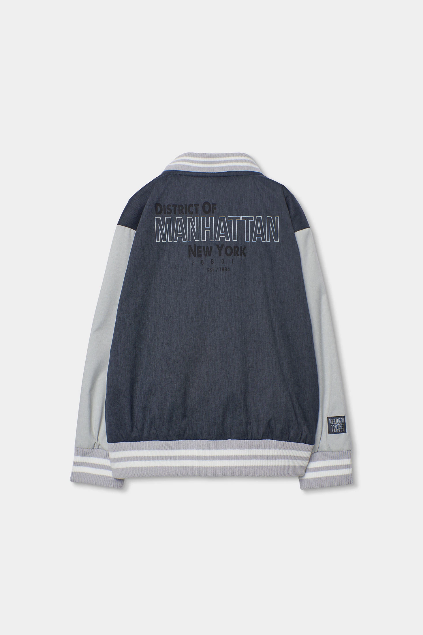 Bomber in tessuto tecnico per bambino, ideale per la mezza stagione. Di colore grigio scuro, presenta un design classico con chiusura a bottoni. Le maniche lunghe e il collo rotondo con polsini a coste offrono calore e comfort. È disponibile dalla taglia 2 fino alla 14 anni. Il suo stile versatile la rende perfetta da abbinare a jeans o pantaloni casual, offrendo un aspetto moderno e caldo per le giornate tiepide.