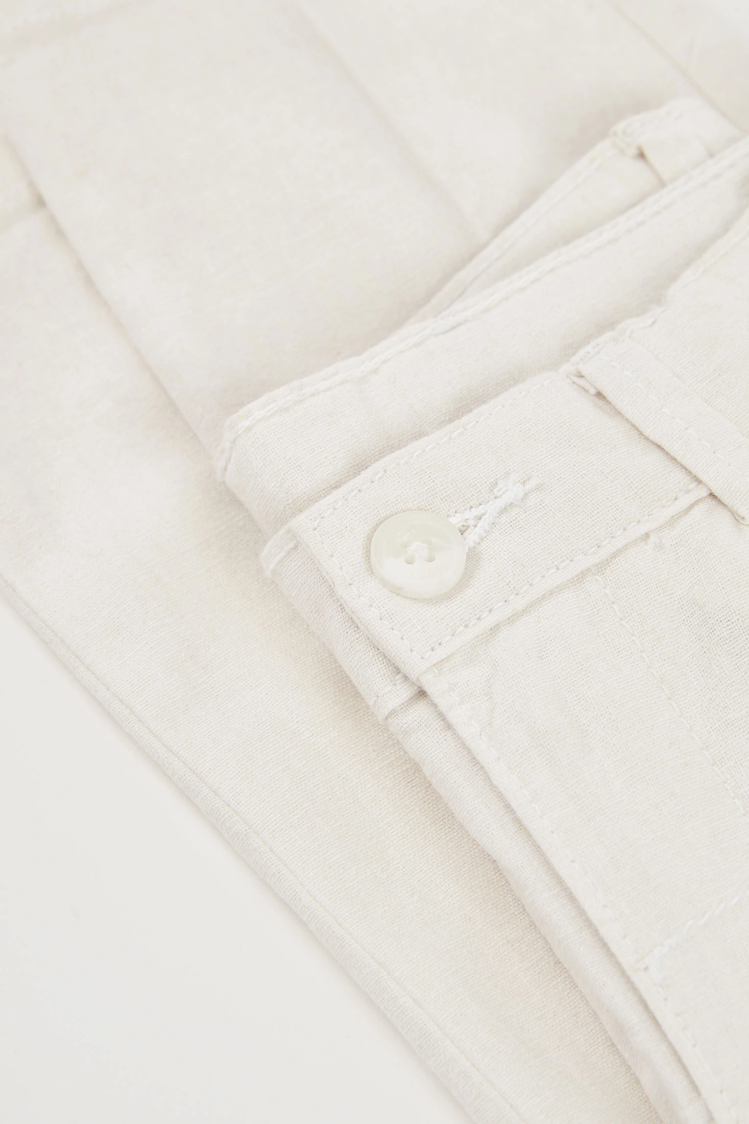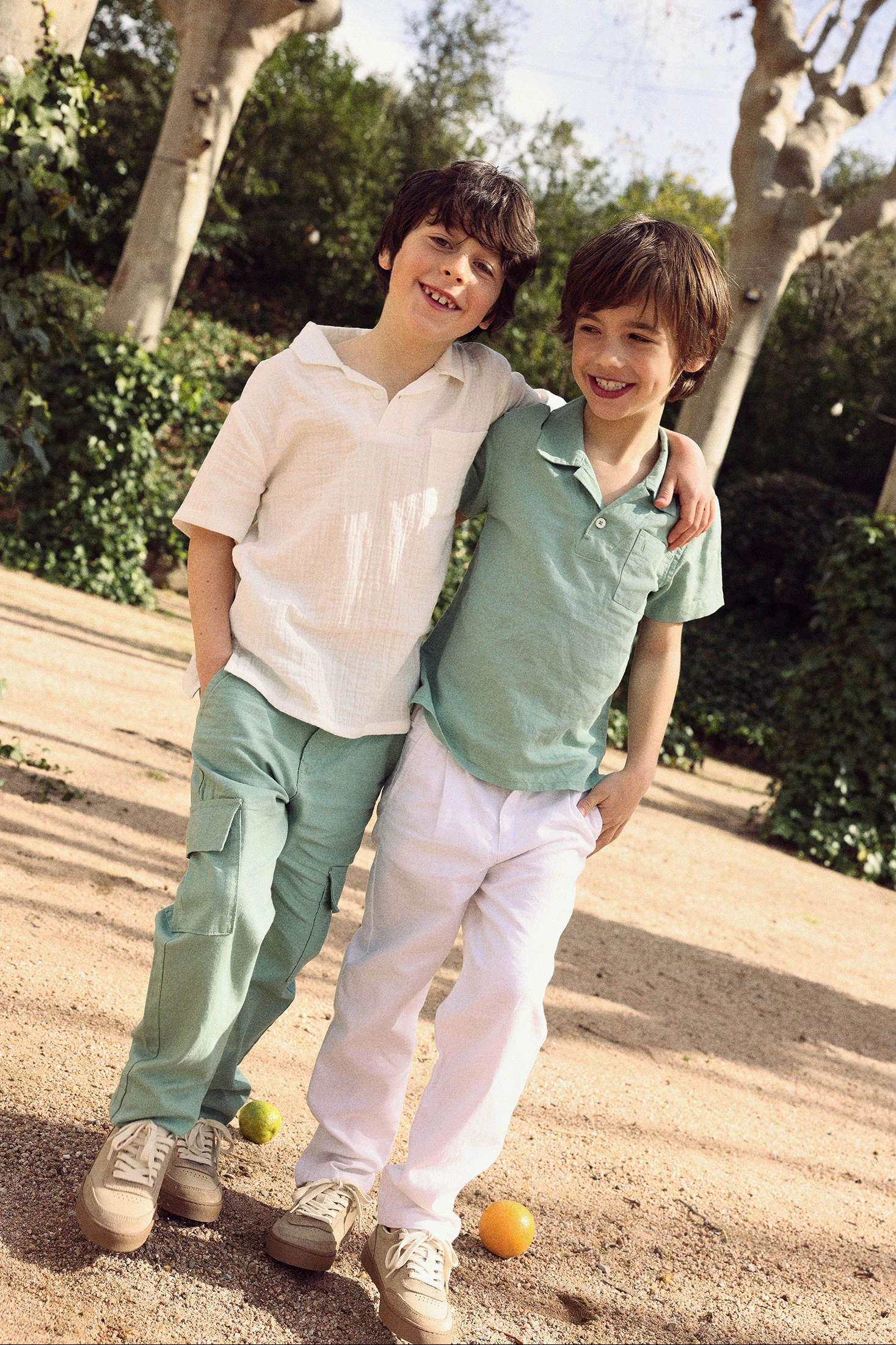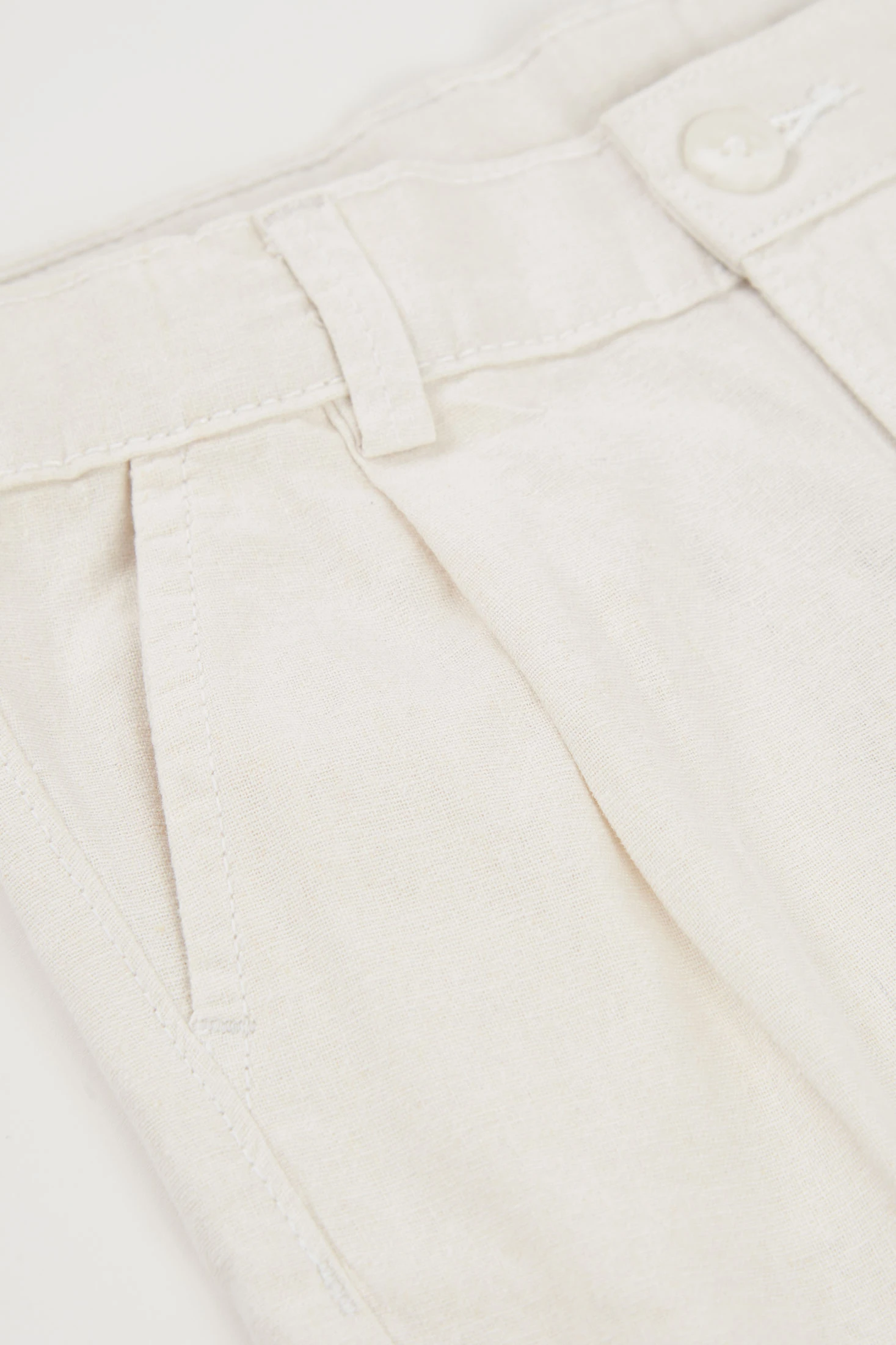 Pantalone di lino bianco per bambino, ideale per un look elegante e fresco. Realizzato in tessuto di lino, che lo rende molto leggero e perfetto per il clima caldo. Il suo design classico include tasche laterali e chiusura con bottone, offrendo funzionalità e stile. Disponibile in taglie da 12 mesi a 14 anni, è una scelta versatile per occasioni speciali. Il suo colore bianco lo rende facile da abbinare con camicie di diversi colori, aggiungendo un tocco sofisticato a qualsiasi completo.