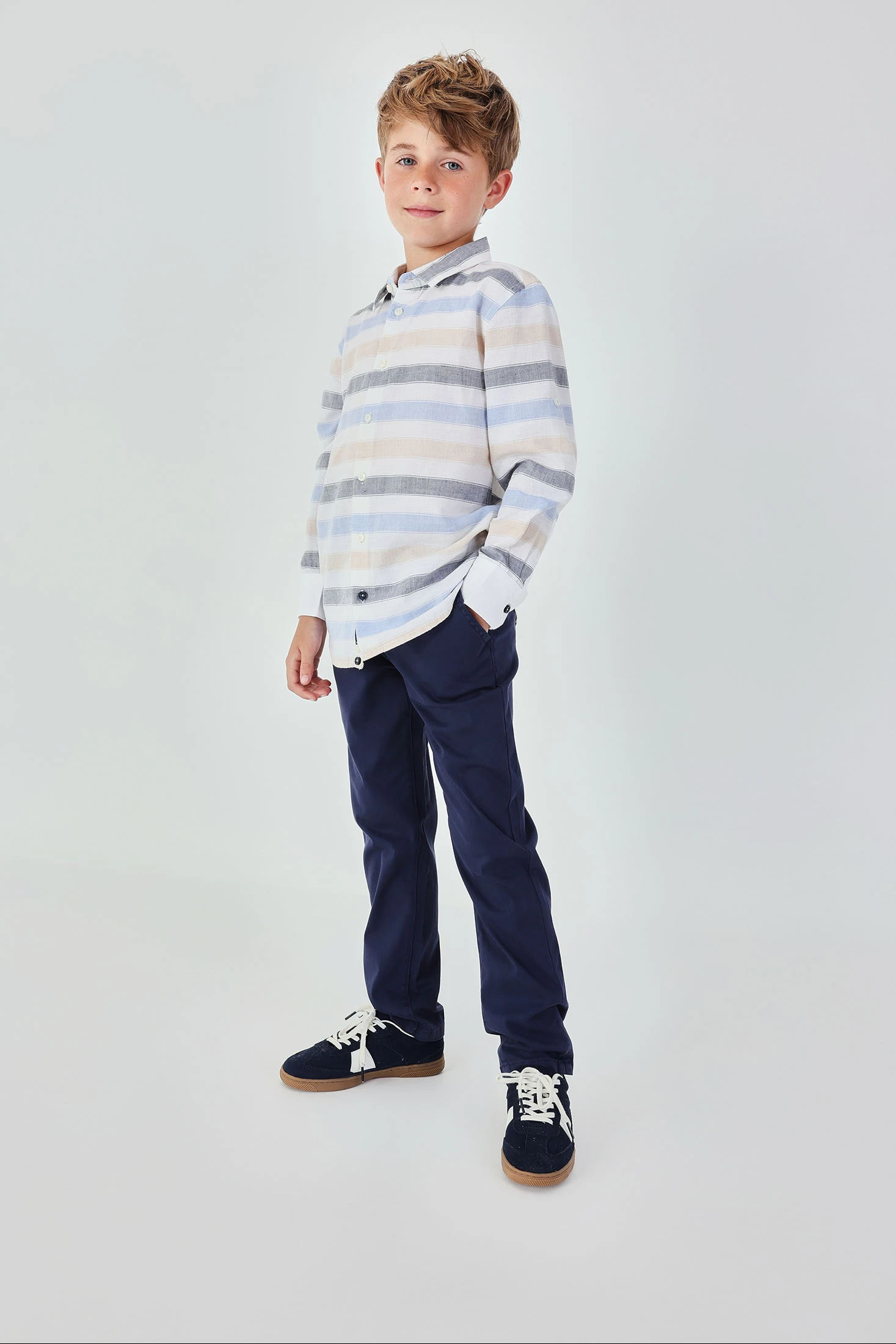 Pantaloni in raso blu navy per bambino, ideali per occasioni eleganti durante tutto l'anno. Il loro design semplice e taglio classico li rendono versatili e facili da abbinare a camicie o maglioni. Il materiale in raso dona un tocco di lusso e morbidezza, garantendo comodità nell'uso quotidiano. Disponibili in taglie da 12 mesi a 14 anni, si adattano a diverse fasi di crescita. Una cintura coordinata o delle bretelle possono aggiungere un tocco distintivo all'outfit, rendendo questi pantaloni un elemento essenziale nel guardaroba infantile.